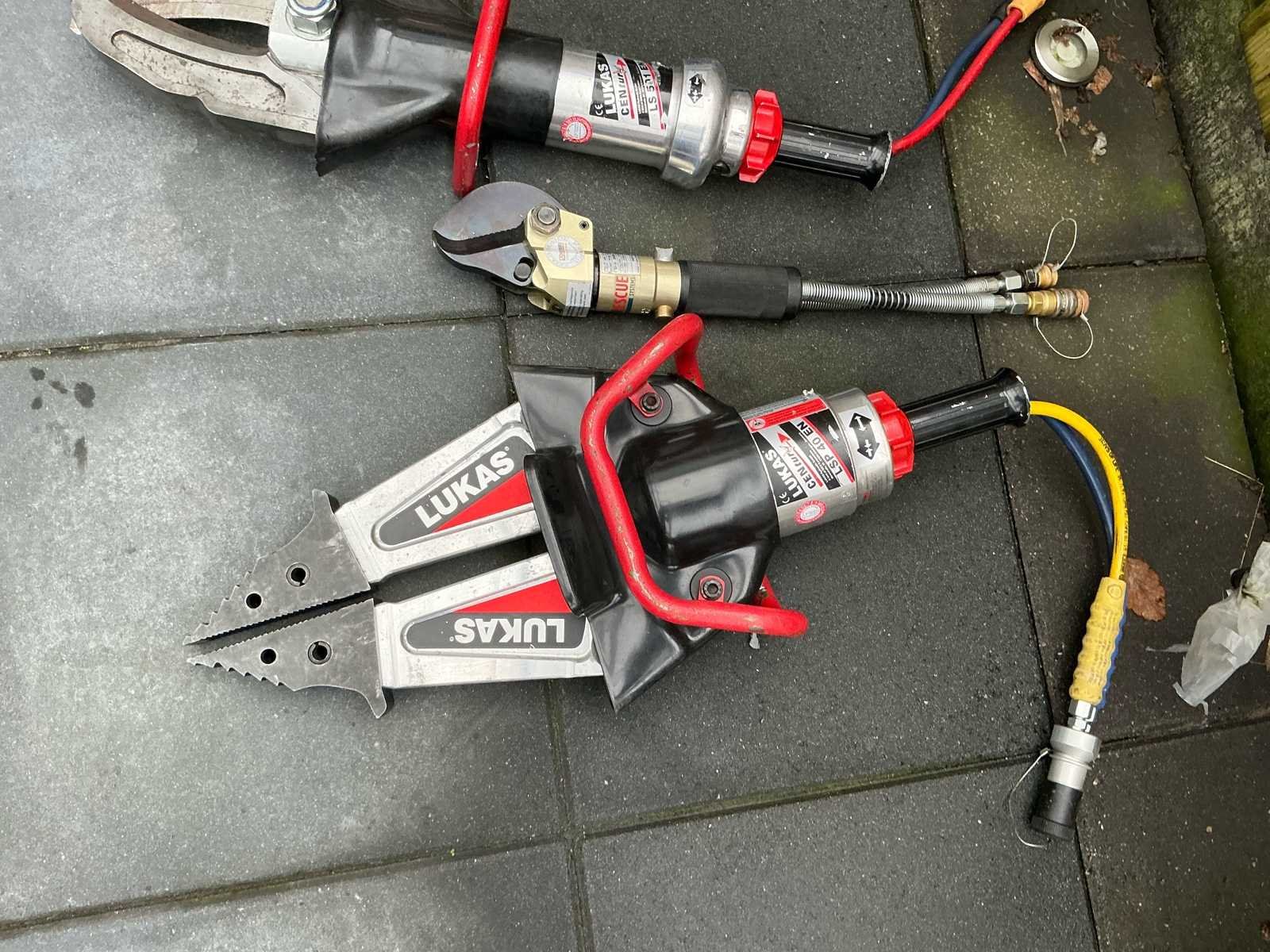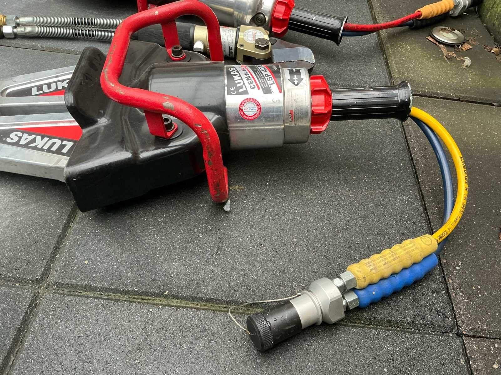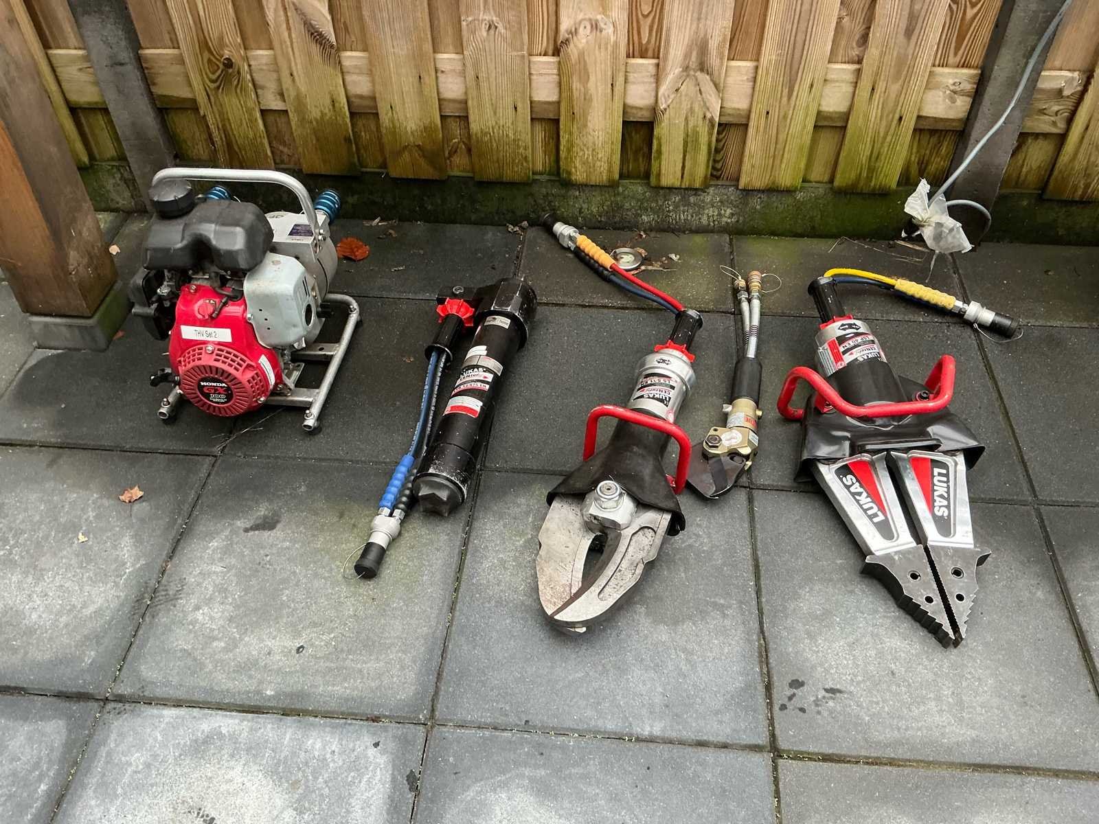 Bestaat uit: - hydraulische benzine pomp, merk: Honda, Jaws of life, Lukas. Type: P620SG. Gewicht: 28,3 kg. Reservoir: 3,5L. Bouwjaar: 2009. - hydraulische drukpers, merk: Lukas. Type: LTR12/875 EN. Bouwjaar: 2004. Gewicht: 21,1 kg. Ingeschoven: 63cm, uitgeschoven: 150cm. - hydraulische knipschaar, merk: Lukas. Type: LS 501 EN. - hydraulische knipschaar, merk: Weberrescue. Type: NFPA 1936. Bouwjaar: 2013. - hydraulische spreider, merk Lukas. Type: LSP 40 EN. Motor voor het laatst gekeurd: 2023. De rest voor het laatst gekeurd: 2021. Nee Merk: Lukas