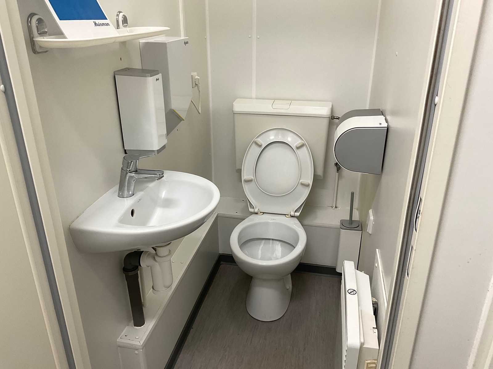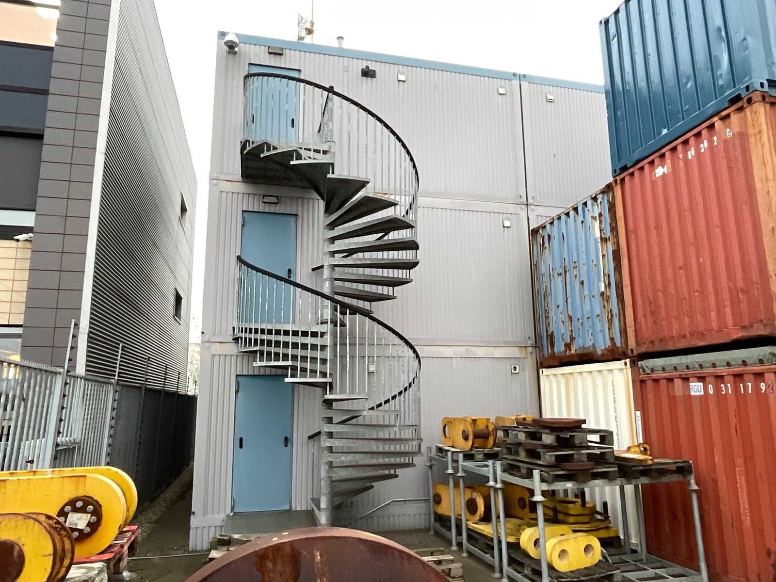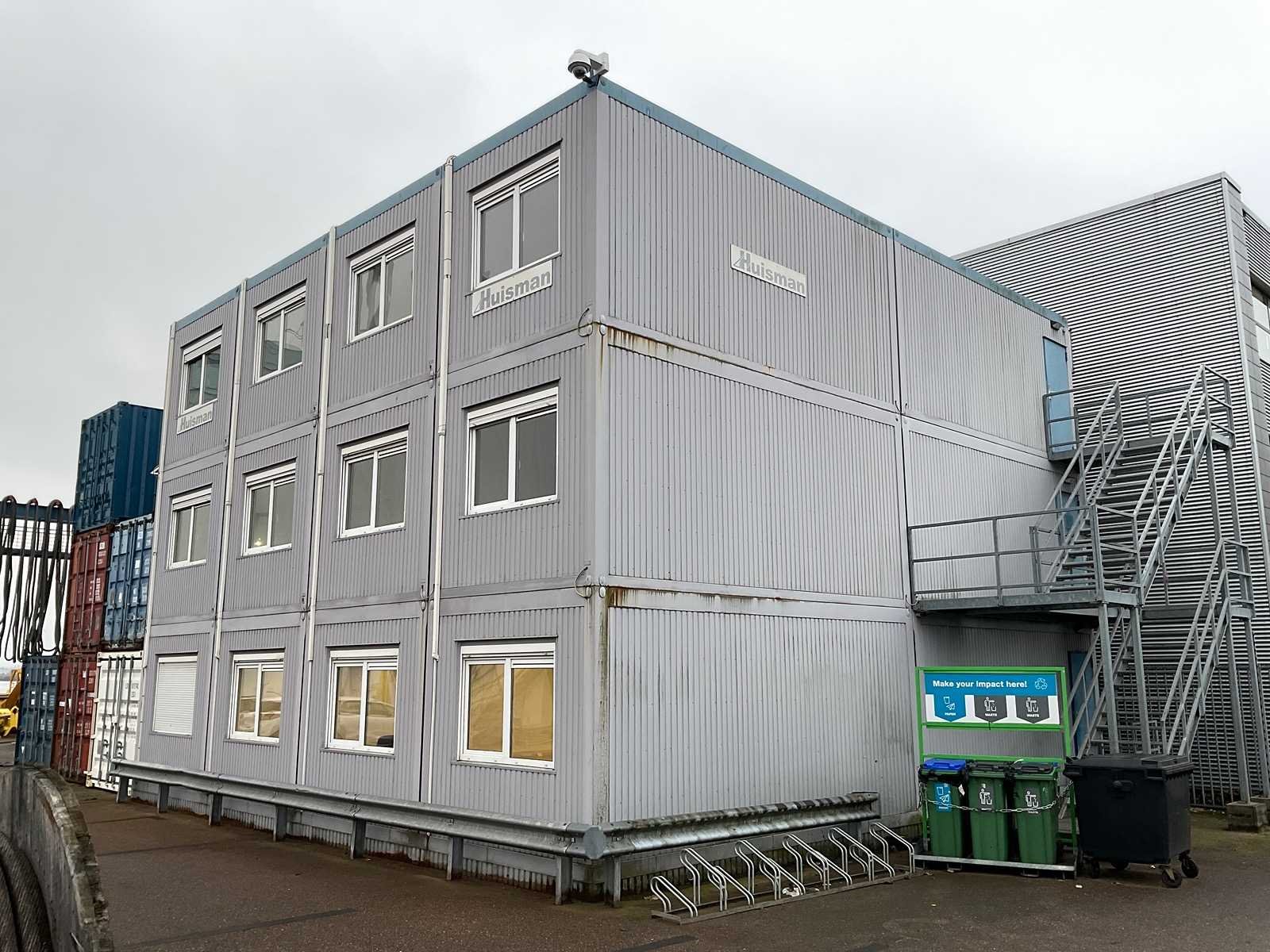 1 unit: 6000x3000x2800mm totaal 12000x12000x8400mm, bestaande uit: 18 gekoppelde units, stalen gegalvaniseerde trap, stalen gegalvaniseerde wenteltrap indeling begane grond: 1x gang, 3x kantoorruimte, 2x toilet, 1x keukenruimte, 1x serverruimte indeling 1e verdieping: 1x gang, 3x kantoorruimte, 2x toilet, 1x kantine met keuken, indeling 2e verdieping: 1x gang, 3x kantoor, 1x cv-ruimte met Remeha Quinta Pro 45 CV, 2x toilet, 1x kantine met keuken CV, radiatoren, stroomvoorziening, internet aansluitingen. Led verlichting, ZONDER inhoud, laadmogelijkheid aanwezig dmv hijskraan, koper is verantwoordelijk voor het demonteren, afkoppelen, laden en transport! bouwjaar 2011 3000kg per unit. Nee