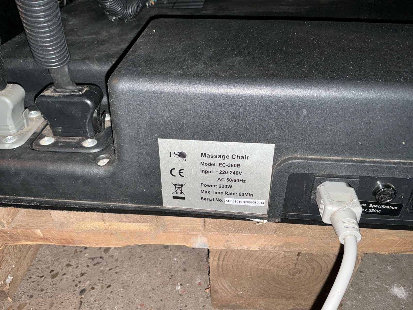 Nee Merk: Massage Chair Model: EC-380B Kleur: Zwart Gewicht: 105kg Lengte: 1300cm Breedte: 1000cm Hoogte: 1120cm Materiaal: Leder