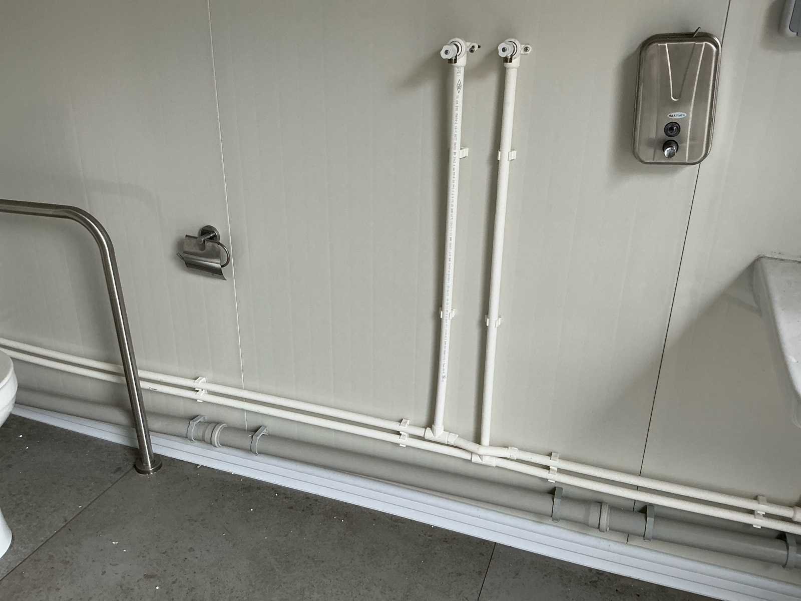 Deur is 1040cm breed Nee Afmeting l: 3000mm Afmeting b: 2450mm Afmeting h: 2350mm Aantal ramen: 0 Aantal toiletten: 1 Aantal wastafels: 1 Aantal douches: 1