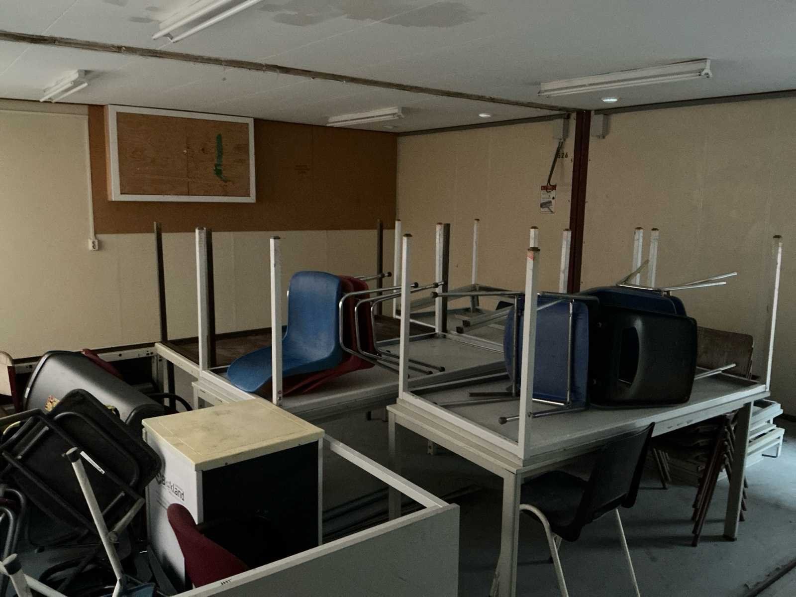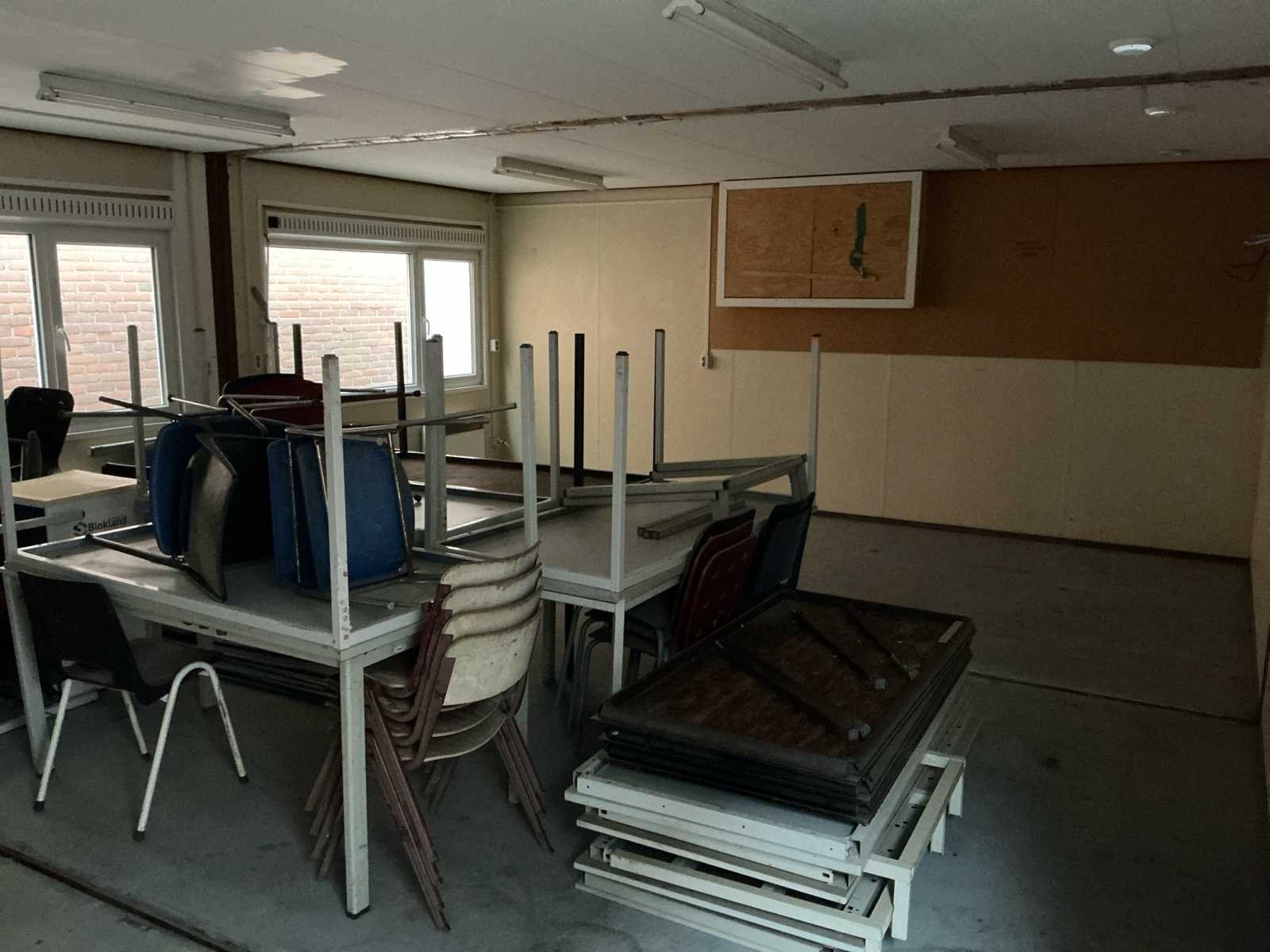 Voorzien van: tafels en stoelen, verlichting, elektrische verwarming, stopcontacten, stoppenkast, krachtstroom, ventilatieroosters, rolluiken. De drie units zijn losgekoppeld. Laadmogelijkheden in overleg met de verkoper Nee Afmeting l: 6000mm Afmeting b: 3000mm Afmeting h: 2900mm Aantal ramen: 3 Totale afmeting L: 6000mm Totale afmeting Breedte: 9000mm Totale afmeting Hoogte: 2900mm