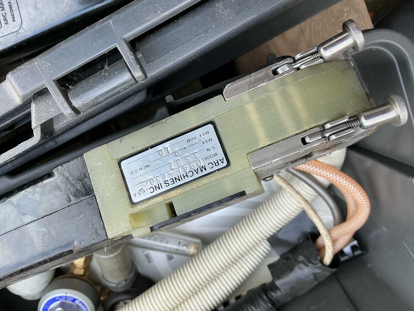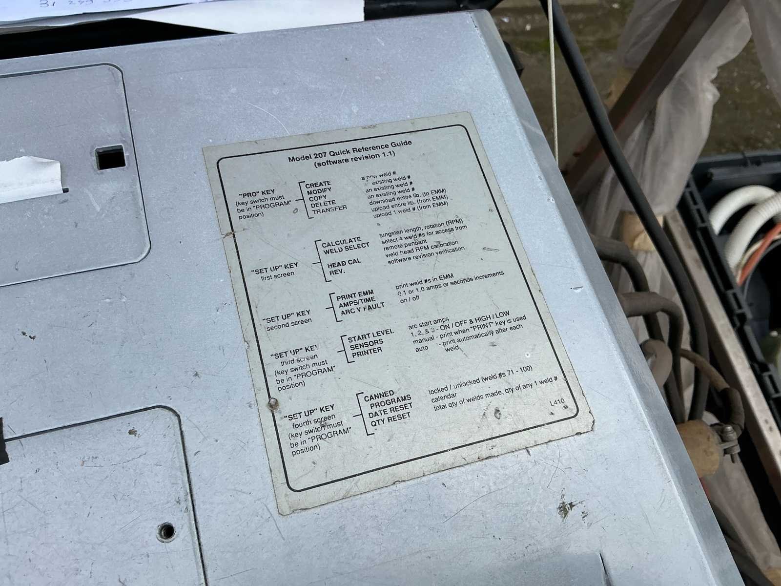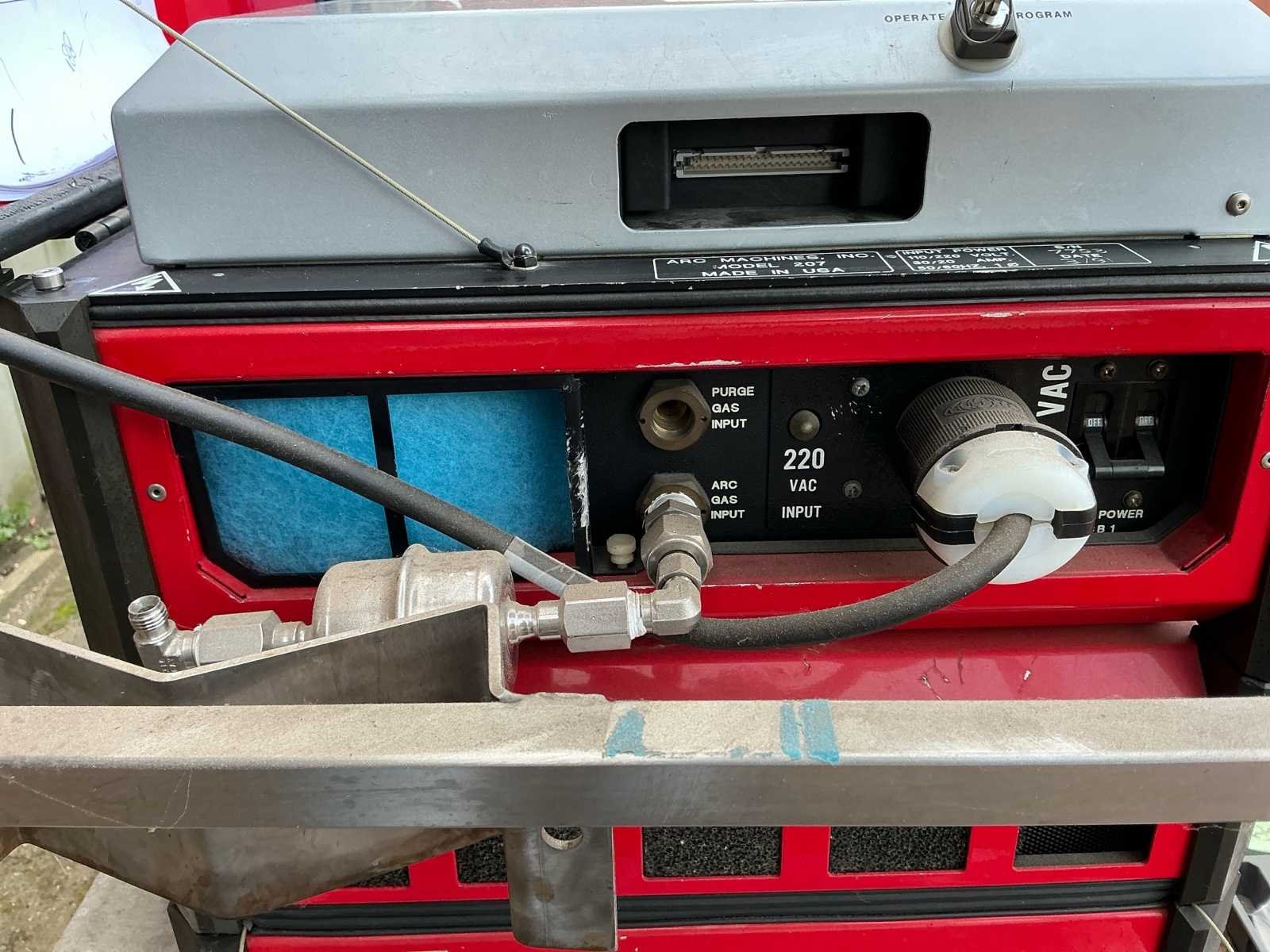 Voorzien van: Welding power supply, RVS trolley, diverse orbitale laskoppen van arc machines (1 inch/.9 inch/1,5 inch/2,5 inch), elektrische verwarmplaat. Nee Merk: Arc Machines Type: 207-CW Bouwjaar: 1999 Serienummer: 27508 Tig type: true