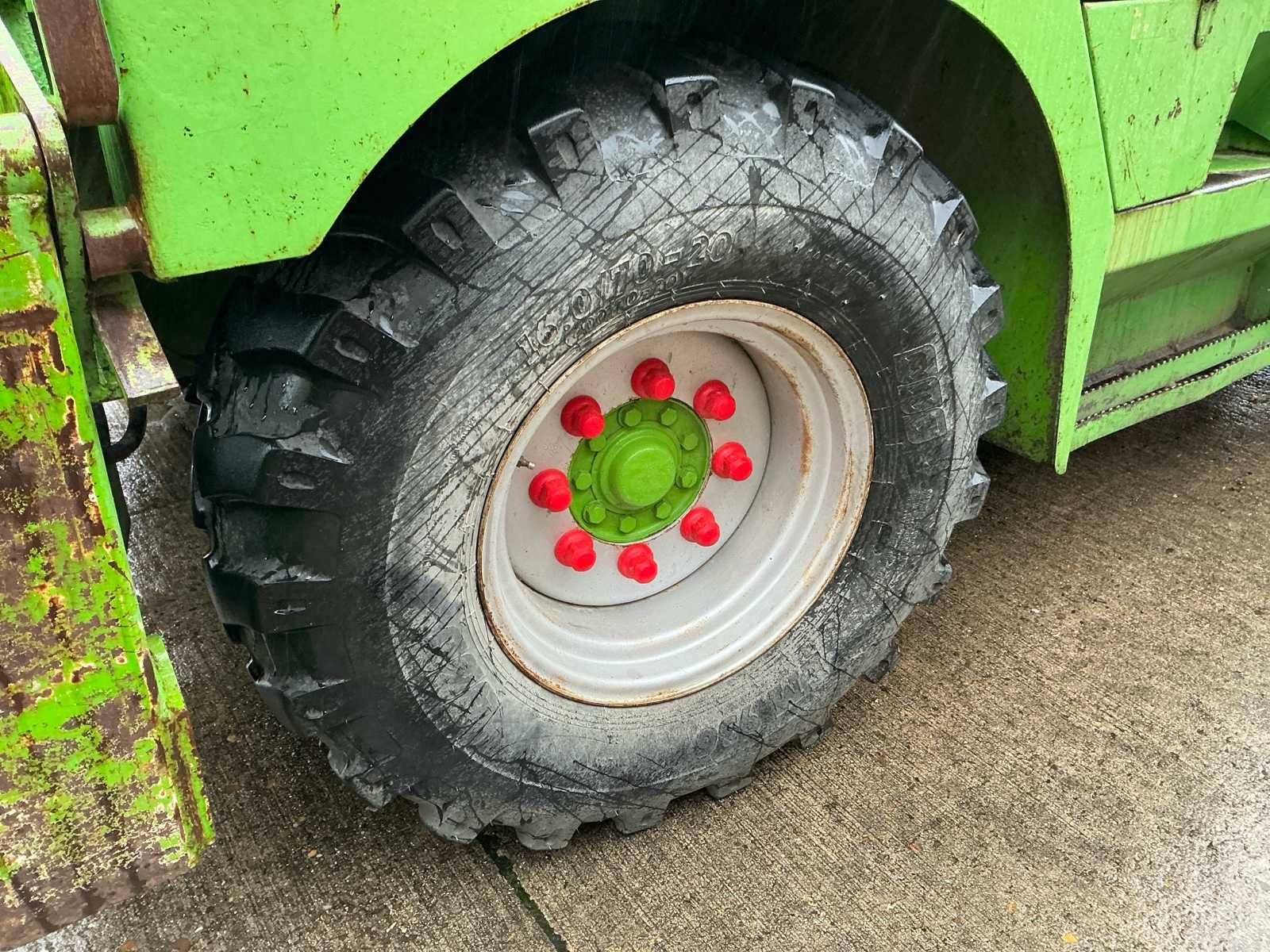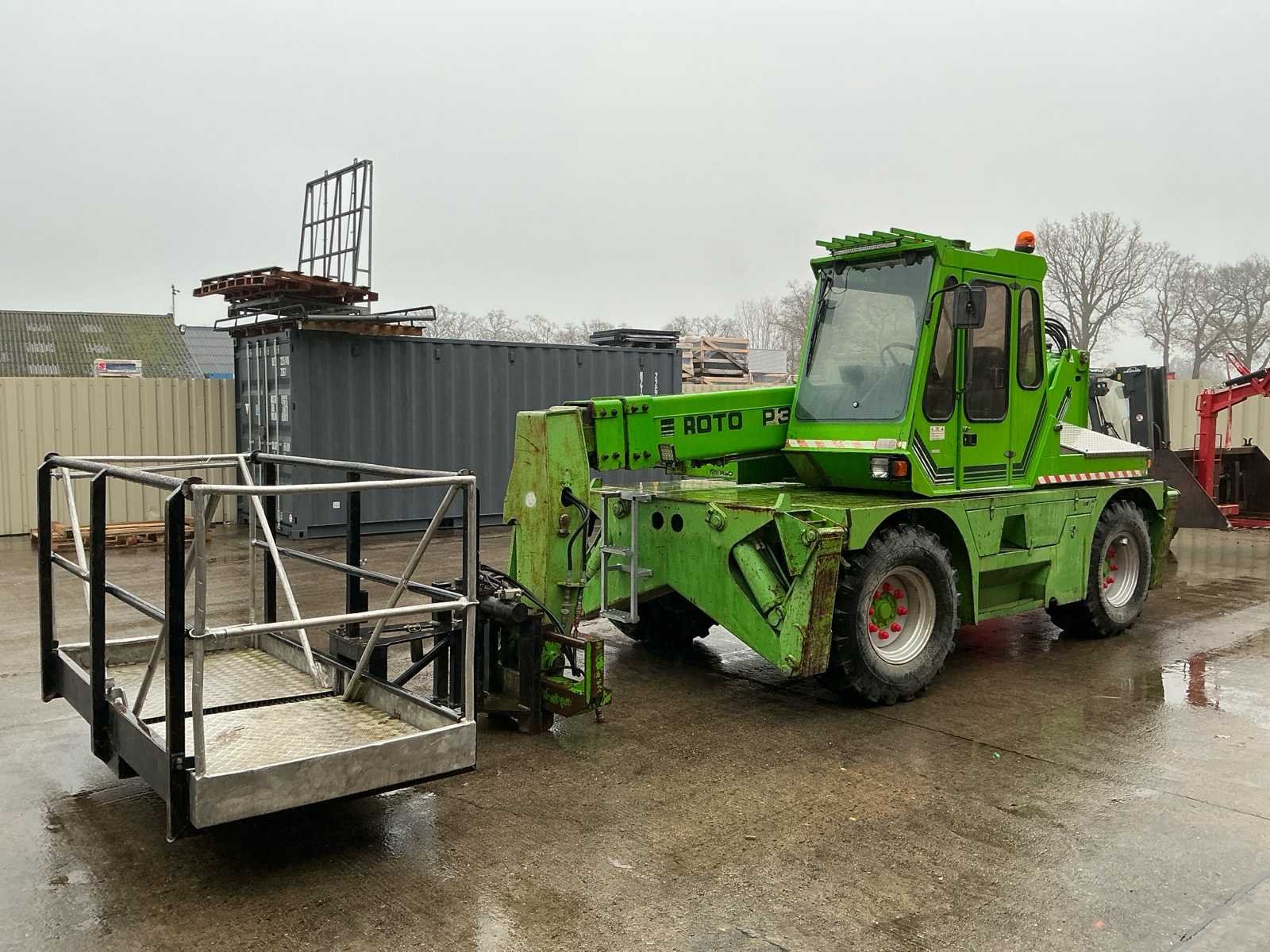 Voorzien van: hydrostaat aandrijving, 4ws, 4wd, 4 afstempelpoten, stabiliteits indicator, motor 4 cilinder Perkins 1004.4T, aanhangwagen koppeling K50, vangmuil, opbergkist met twee, tweespongen en veiligheidsharnas, led werkverlichting, achteruitrij camera, hefhoogte 13meter, hefvermogen 3 ton, inclusief evenaar 2300mm, uitschuifbaar tot 3300mm, jip uitschuifbaar tot max. 3300mm, inschoven 2200mm, pallethaak vorken 960mm, pallet vorken 1200mm, hydraulische snelwissel, manbak, Nederlands kenteken, 7 polige stekker, manbak 2200x1000, uitschuifbaar naar 4000, grondbak 2250mm. Nee Merk: Merlo Type: Roto 30-13 Bouwjaar: 1994 Serienummer: 4103437 Kenteken: TBR30V Motorvermogen (kW): 84kW Hefvermogen: 3000kg Hefhoogte: 13400mm Cabine: true Vierwielaandrijving 4x4: true Luchtbanden: true Afgelezen urenstand: 7162 Eigen gewicht: 10629kg Totale afmeting L: 5500mm Totale afmeting Breedte: 2240mm Totale afmeting Hoogte: 2770mm