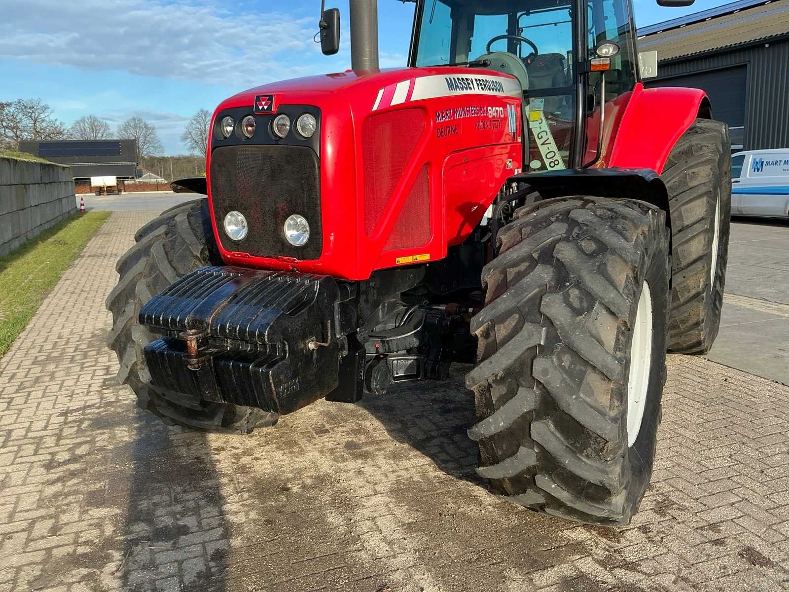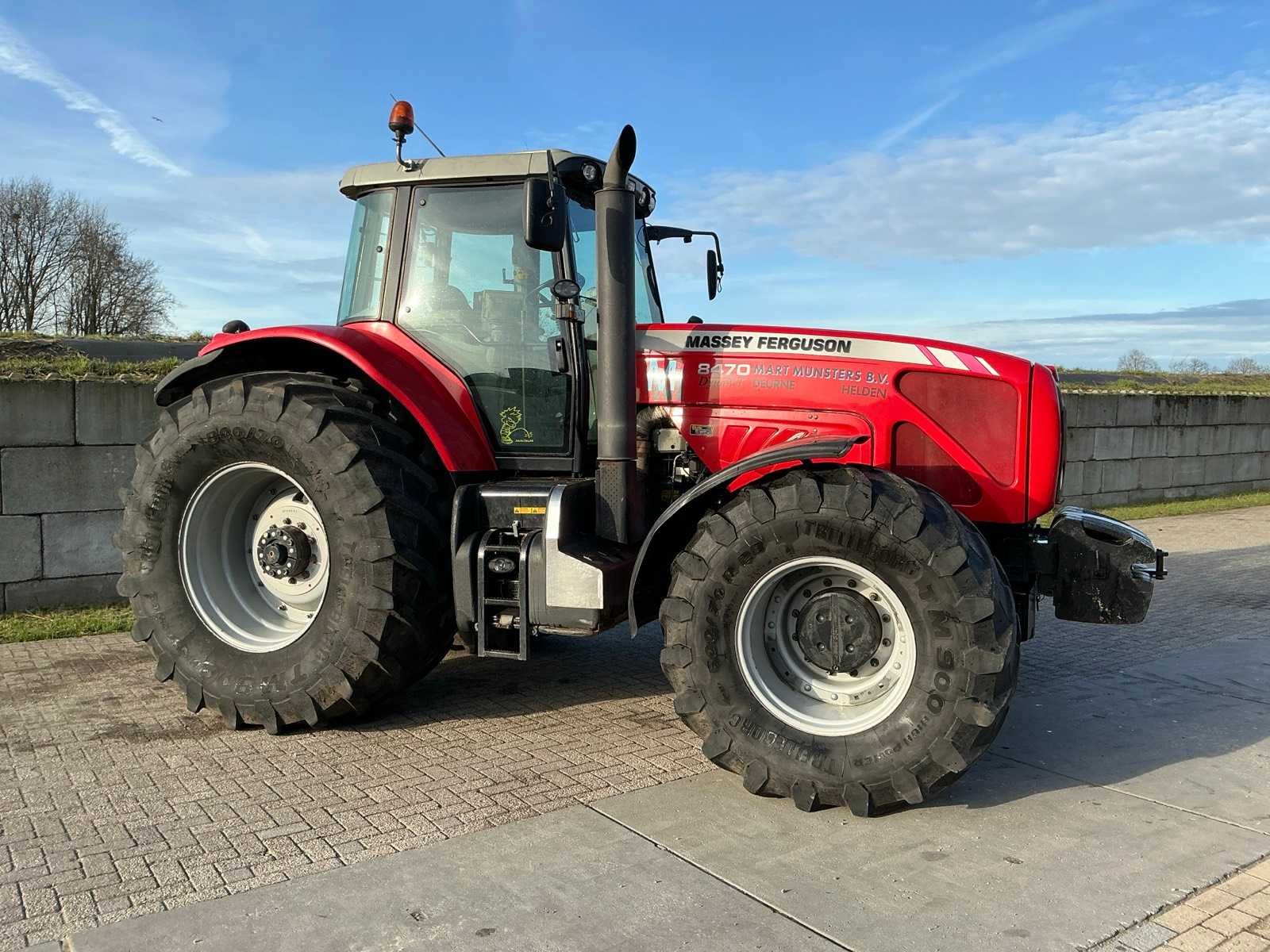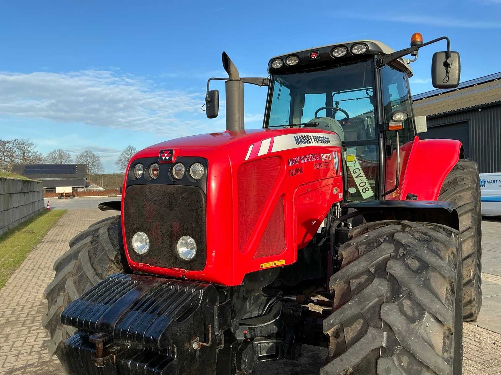 Voorzien van: Massey Ferguson 8470 Dyna-VT, 4-wielaangedreven landbouwtractor, 8.4L Sisu-motor, traploze variabele transmissie (CVT), Dyna-VT'.geveerde cabine, lucht remmen, heflatten, trekhaak, iso-bus aansluiting, 7 polige stekker, verwarmde spiegels, 4 dubbel werkende elektro-hydraulische ventielen, load sensing, Left hand Power Control, werklampen, frontgewichten, QuadLink-geveerde vooras, Dyna vt transmissie, Closed Centre Load-Sensing (CCLS) hydraulic systeem, zwaailicht, dakluik, airco, 540/1000, geïntegreerd tractorbesturingssysteem (ITCS), Nee Merk: Massey ferguson Type: 8470 Dyna VT Bouwjaar: 2008 Serienummer: T095052 Kenteken: 93-GV-08 Motorvermogen (kW): 193kW Afgelezen urenstand: 11431 Versnellingsbaktype: Dyna VT Aftakastoerental: 540rpm Aantal hydraulische ventielen achter: 4 Bandenmaat voor: 600/70R28 Bandenmaat achter: 800/70R38 Frontgewichtenset: true Cabine: true Luchtgeveerde stoel: true Eigen gewicht: 9400kg Totale afmeting L: 5200mm Totale afmeting Breedte: 3000mm Totale afmeting Hoogte: 3150mm Kentekenpapieren compleet?: true Chassisnummer: T095052 Datum eerste toelating: 2008-06-30