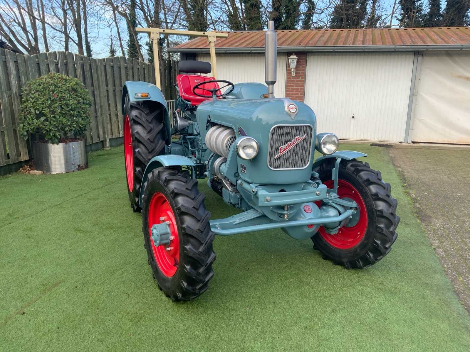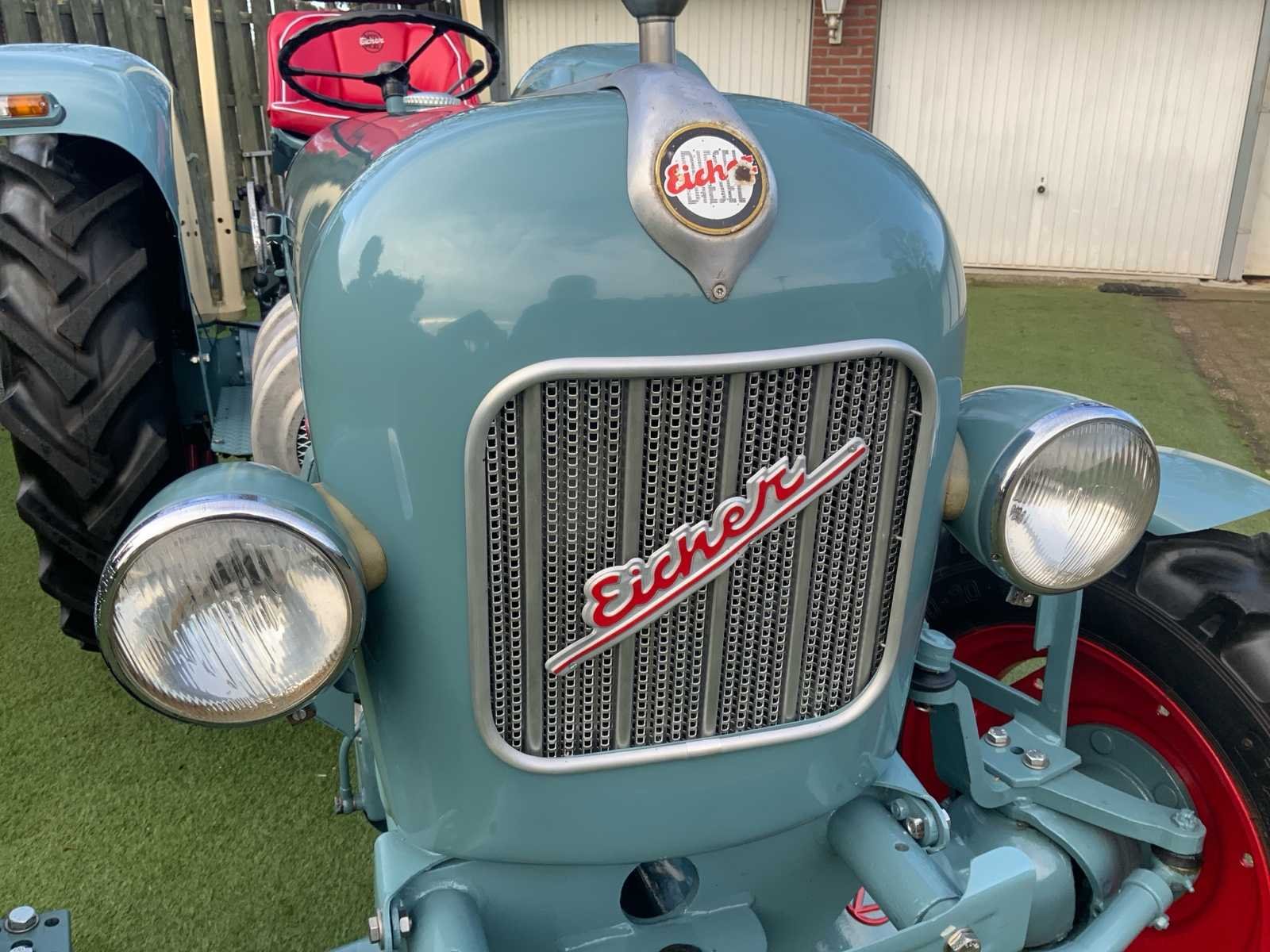 Voorzien van originele 3 cilinder diesel motor met 40Pk * voorzien van originele Duitse papieren * geheel gereviseerd en in top conditie waaronder gereviseerde koppeling, gereviseerde versnellingsbak * compleet professioneel gespoten in originele kleur * alles werkend * overal documentatie van aanwezig inclusief rekeningen * voorzien van originele Eicher gezondheidszitzadel * werkende verlichting * voorzien van originele valbeugel * voorzien van originele zitting los meegeleverd * snelheid 22km/h * aftakas toerental 540/1000 rpm Nee Merk: Eicher Type: EA400 Bouwjaar: 1965 Serienummer: 90952 Afgelezen urenstand: 12050 Versnellingsbaktype: Handmatig Bandenmaat voor: 7.50-20 Bandenmaat achter: 12.4-32 Eigen gewicht: 2300kg Totale afmeting L: 3150mm Totale afmeting Breedte: 1600mm Totale afmeting Hoogte: 2060mm Leveringsvoorwaarden: Niet gefundeerd - onverpakt
