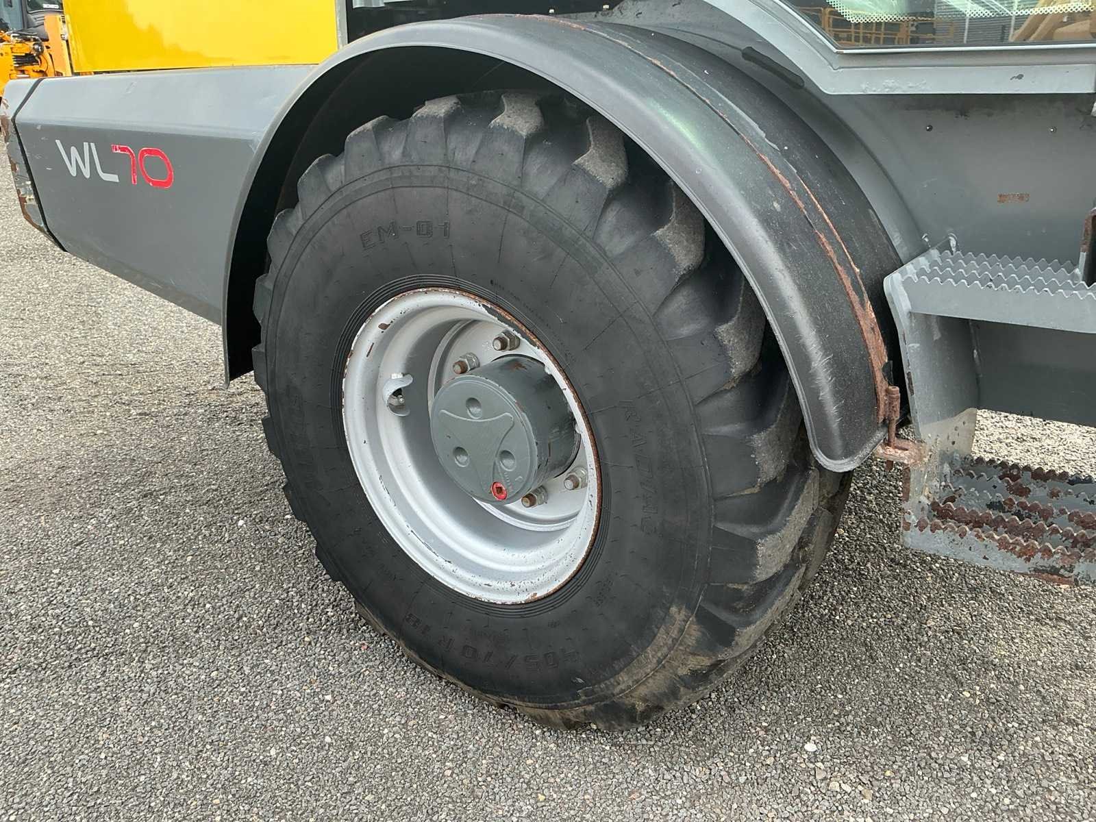 Voorzien van: 3-in een bak 2100mm breed, pallet vorken, lepels 1050mm, hydraulische snelwissel, led-werklampen, ruitenwissers, verwarmde achterruit, spiegels, panoramische voorruit, elektrisch massa slot, Perkins-motor 55,4 kW, 3,5 inch kleurendisplay, oliestroom regeling, continue functie voor het 3e en 4e regelcircuit, verschillende functies en instellingen worden bediend via de jog-dial, Grammer mechanisch geveerde stoel, inch-rempedaal. Nee Merk: Wacker-Neuson Type: WL70 Bouwjaar: 2018 Serienummer: 3047389 Merk motor: Perkins Motorvermogen (kW): 75kW Aantal cilinders: 4 Brandstof: Diesel Bedrijfsgewicht: 7000kg Graafbak afm. b: 2060mm Bandenmaat: 405/70R18 Cabine: true Afgelezen urenstand: 1212 Eigen gewicht: 7500kg Totale afmeting L: 6000mm Totale afmeting Breedte: 2100mm Totale afmeting Hoogte: 2700mm