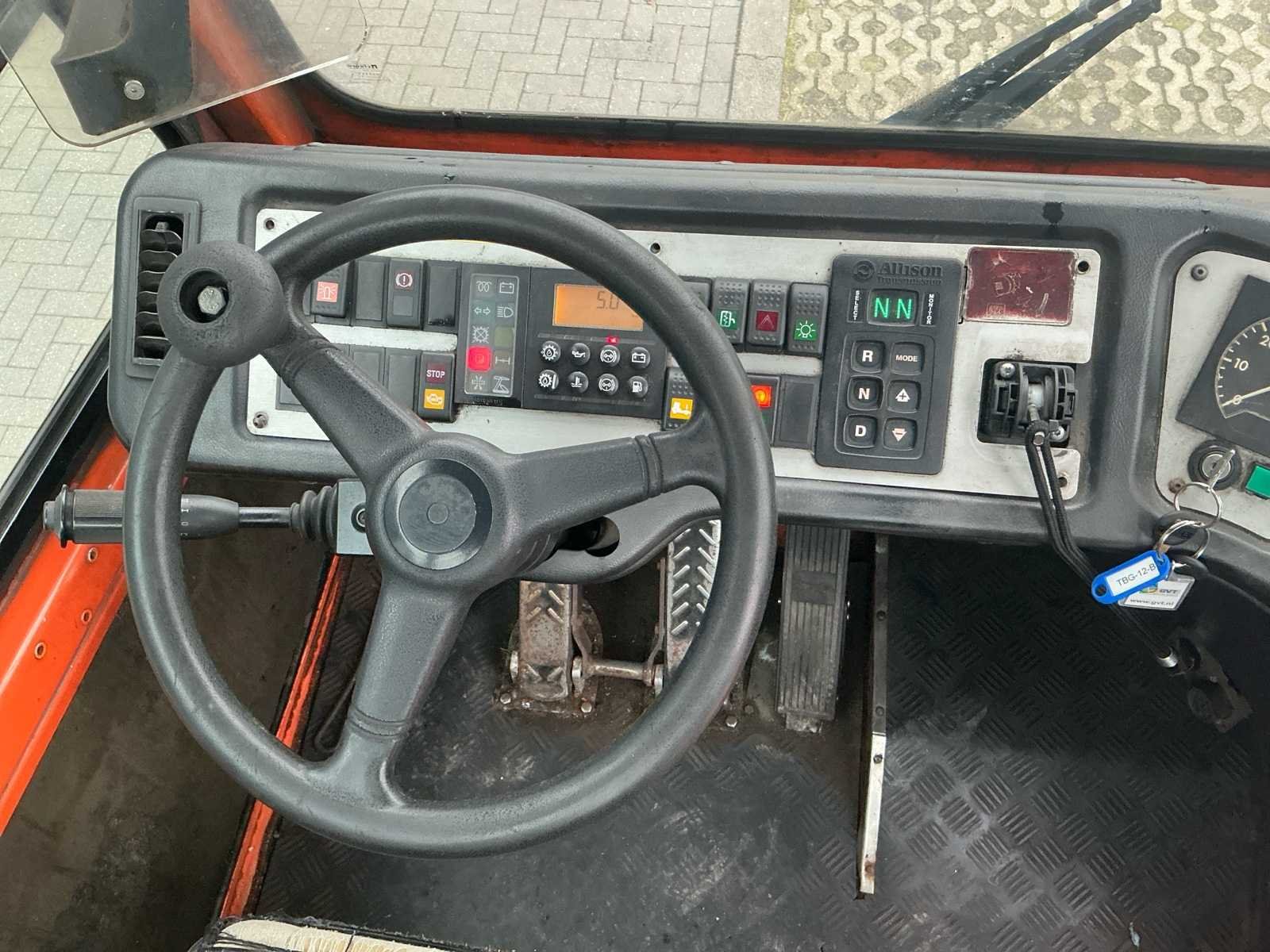 Voorzien van: Urenstand 34326 uur. Terberg YT182 terminal trekker (bouwjaar 2008) met Cummins 5,9 liter (bij Cummins 6BT, 6-cilinder) dieselmotor, automatische transmissie, vast 5e wiel, luchtremmen met load-sensing ventiel, gesloten cabine, toegestaan totaalgewicht 35.000 kg, toegestaan treingewicht 55.000 kg en aslasten 10.000 kg (voor) en 25.000 kg (achter), bedoeld voor intern trailertransport op terminals en logistieke terreinen. No Kenteken: TBG12B Merk: Terberg Type: YT182 Bouwjaar: 2008 Chassisnummer VIN: XLWYT182181437750 Datum eerste toelating: 2007-06-30 Datum eerste toelating (NL): 2021-01-14 Type transmissie: Automatisch Aantal assen: 2 Asconfiguratie: 2x4 Fuel Type: Diesel Laadvermogen: 55000kg Aantal sleutels: 2 Eigen gewicht: 9000kg Totale afmeting L: 5500mm Totale afmeting Breedte: 2500mm Totale afmeting Hoogte: 3300mm Nationaliteit documenten: Nederlands Kentekenpapieren compleet?: true Aantal zitplaatsen: 1 Zelf rijdend exporteren: Mogelijk Automaat: true Diesel: true