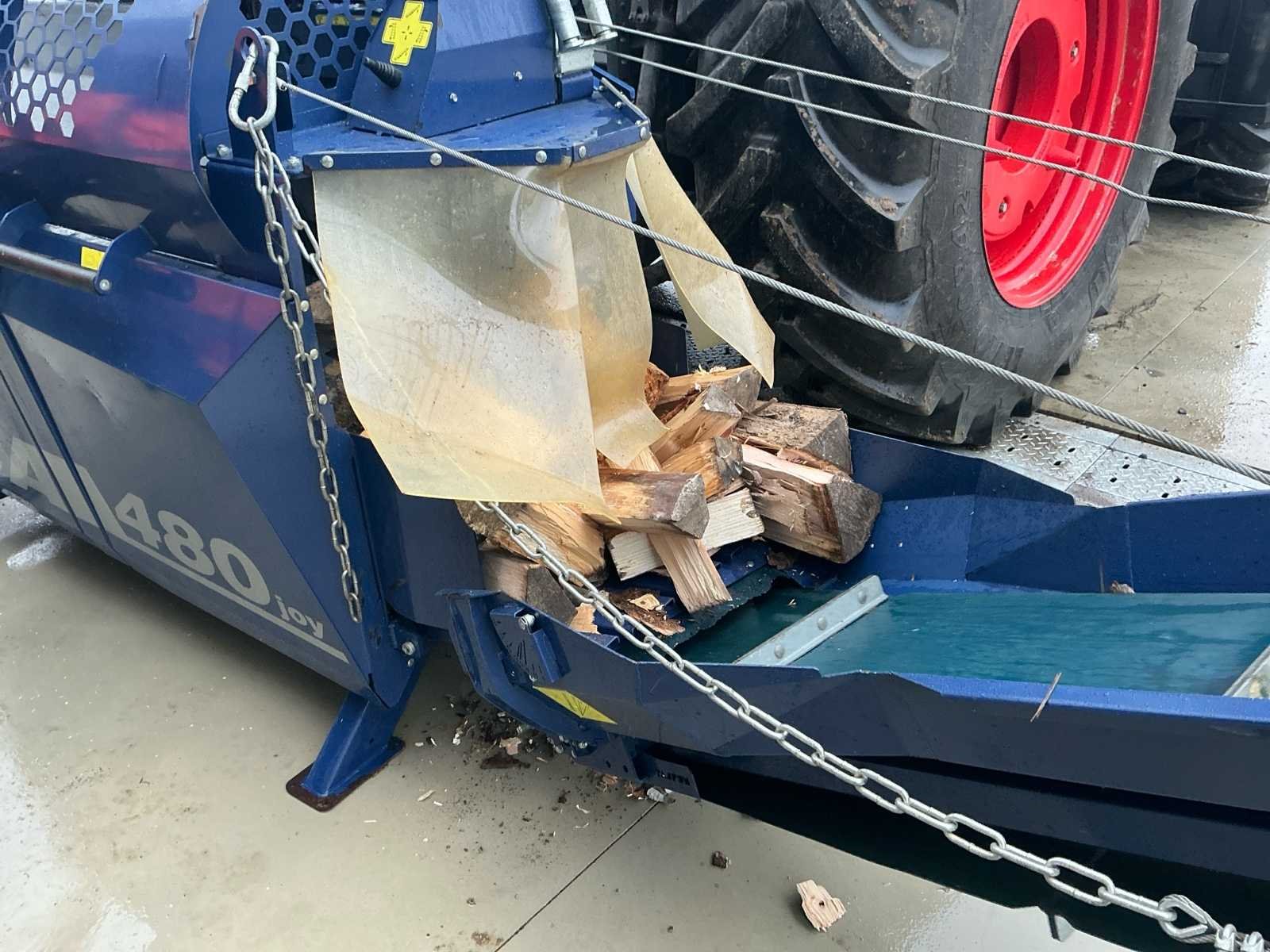 Bestaat uit: complete opstelling, eigenbouw hydraulisch aangedreven aanvoerframe, maximale diameter van de boomstam 5–48 cm, lengte van de gezaagde boomstam 25–50 cm, splijtkracht 250 kN, twee splijtsnelheden, zaagblad Oregon 24 inch, b = 1,5 mm, ketting Oregon DuraCutTM 3/8”, 42 tanden, b = 0,058” (1,5 mm), vereist tractorvermogen 30 kW (transport - 70–80 kW), toerental aftakas min.: 400 min-1, max.: 430 min-1 Nee Merk: Tajfun Type: RCA 480 joy Bouwjaar: 2016 Serienummer: 240431-20137 Hydraulisch: true
