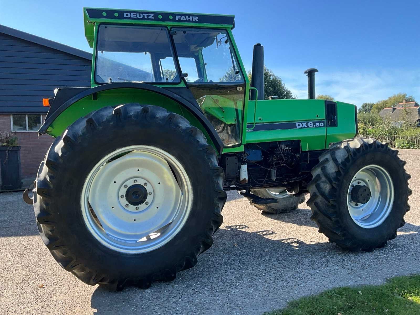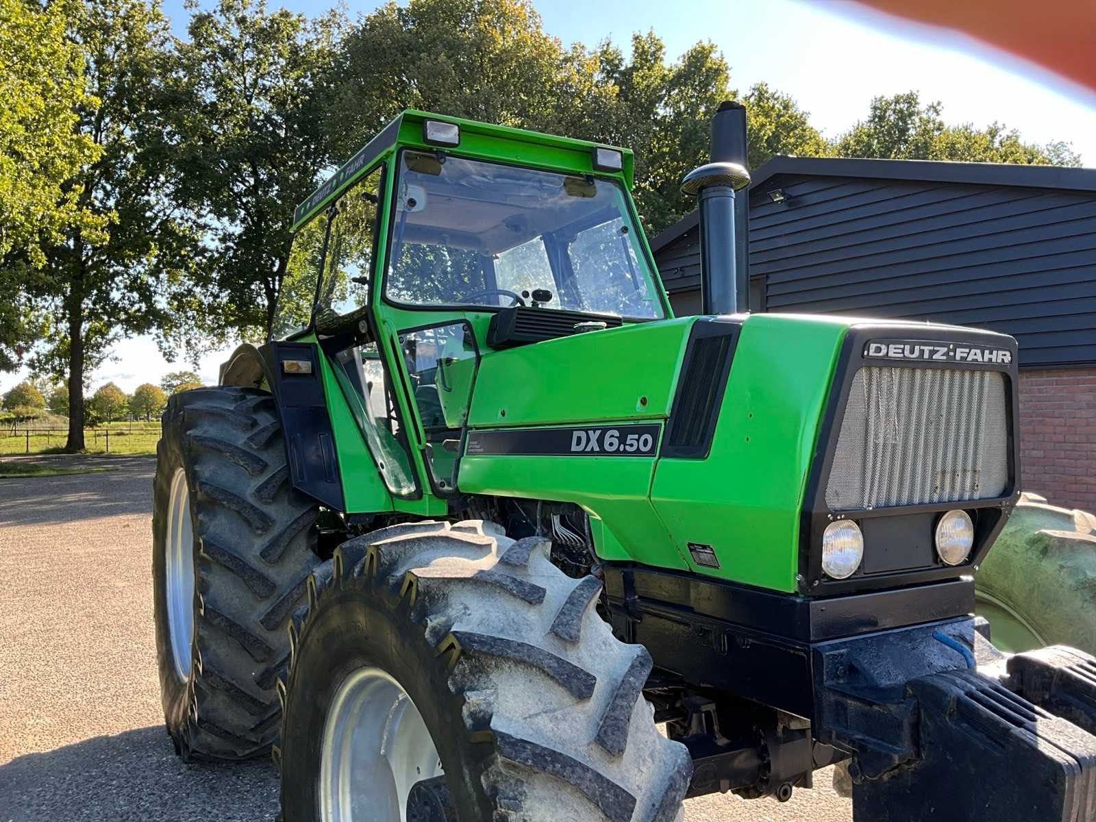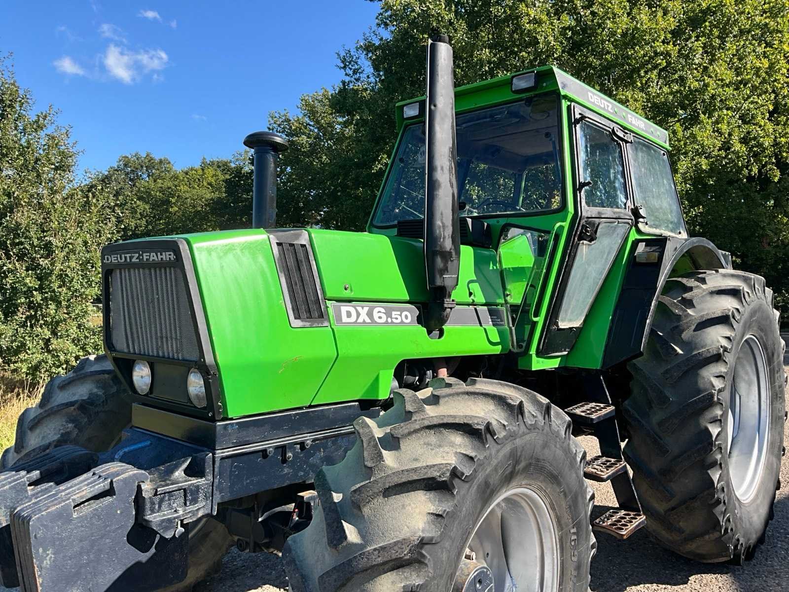 Voorzien van 6-Cil. “Deutz” Dieselengine;aircooled (BF6L913); 1 dubbelwerkend hydraulische ventiel; 1 enkelwerkend hydraulisch ventiel; ondertrekhaak; 8 frontgewichten; aftakas 540/1000 rpm; Let op, rijd enkel in versnelling 1 en achteruit! Nee Merk: Deutz-Fahr Type: DX 6.50 Serienummer: 74410162 Motorvermogen (kW): 103kW Afgelezen urenstand: 10917 Bandenmaat voor: 16.9R28 Bandenmaat achter: 20.8R38 Frontgewichtenset: true Cabine: true