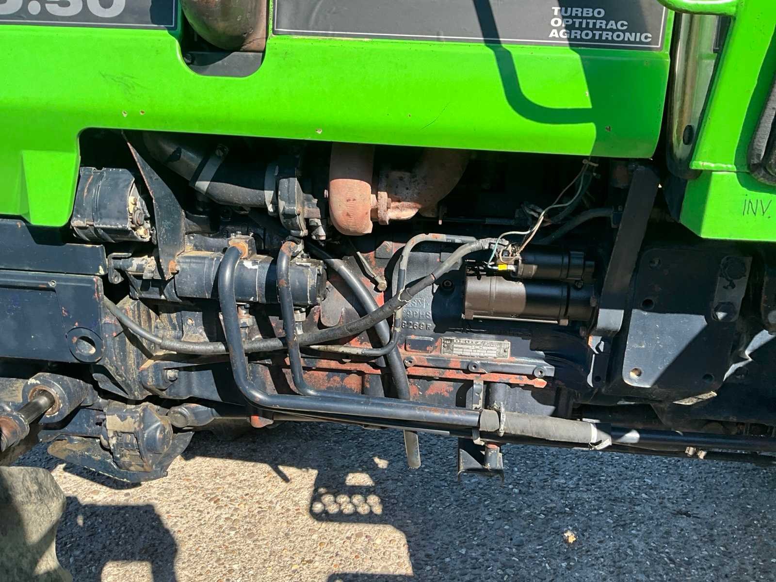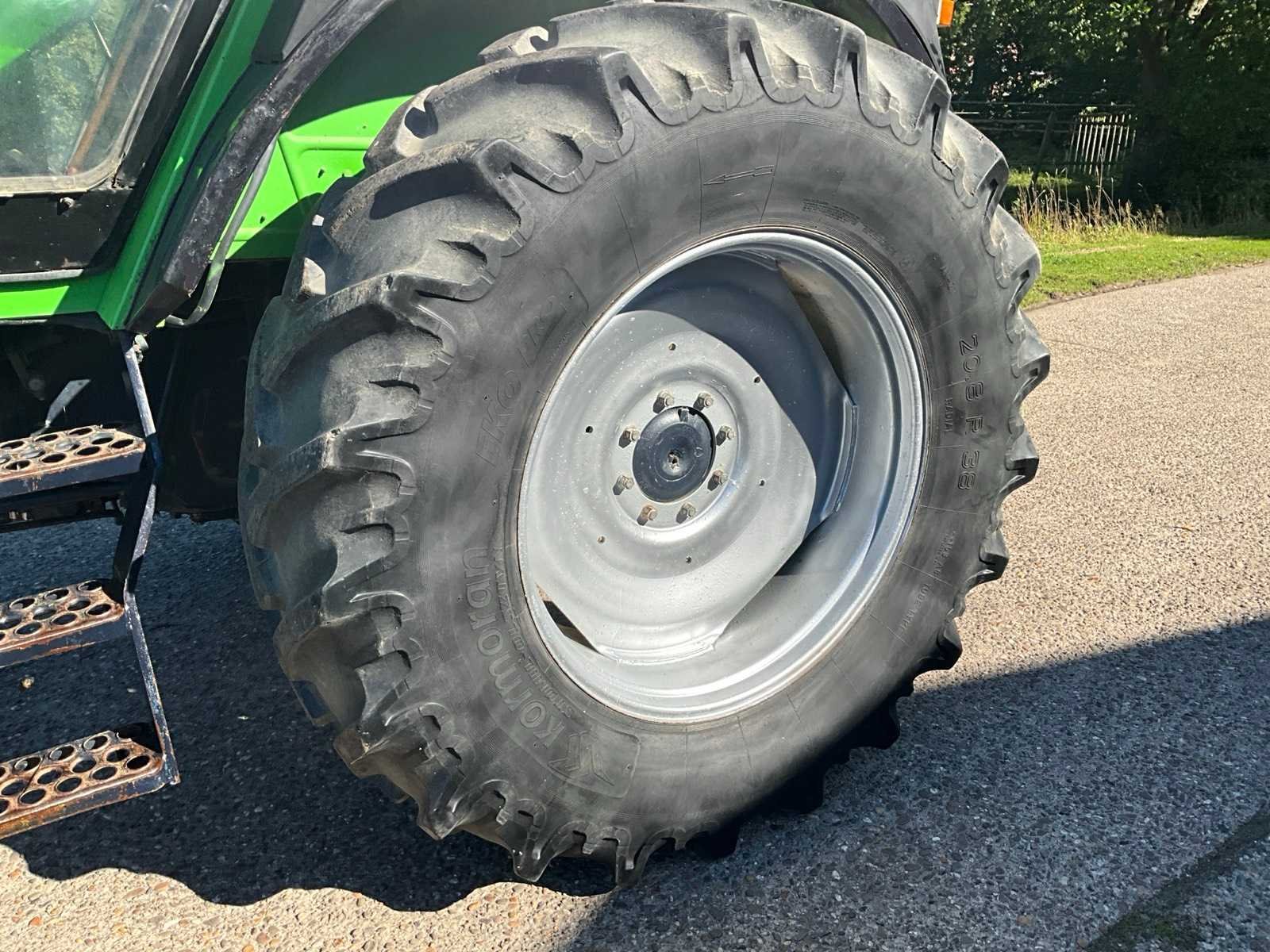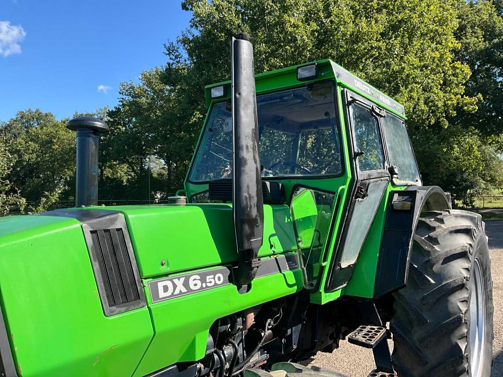 Voorzien van 6-Cil. “Deutz” Dieselengine;aircooled (BF6L913); 1 dubbelwerkend hydraulische ventiel; 1 enkelwerkend hydraulisch ventiel; ondertrekhaak; 8 frontgewichten; aftakas 540/1000 rpm; Let op, rijd enkel in versnelling 1 en achteruit! Nee Merk: Deutz-Fahr Type: DX 6.50 Serienummer: 74410162 Motorvermogen (kW): 103kW Afgelezen urenstand: 10917 Bandenmaat voor: 16.9R28 Bandenmaat achter: 20.8R38 Frontgewichtenset: true Cabine: true
