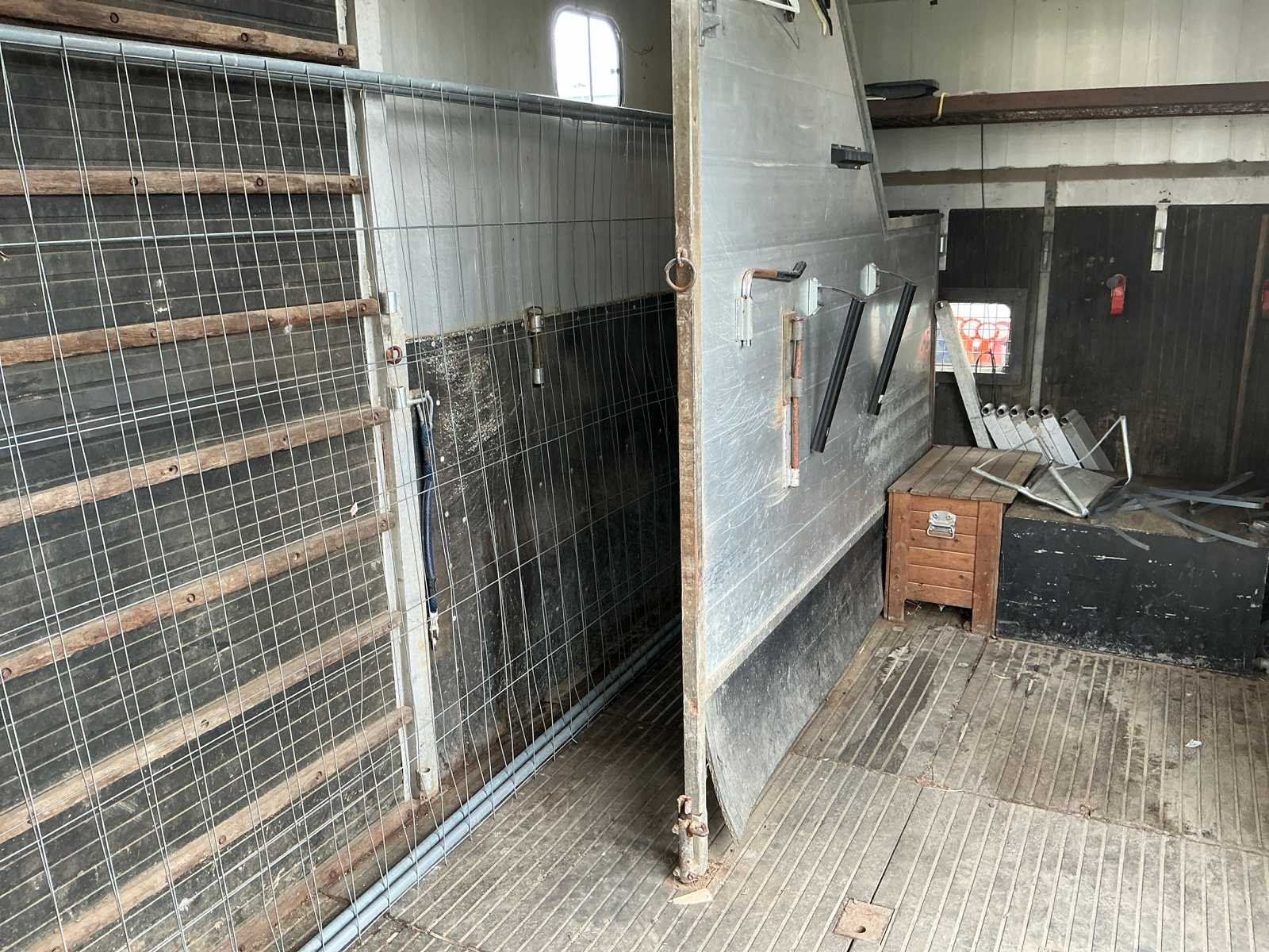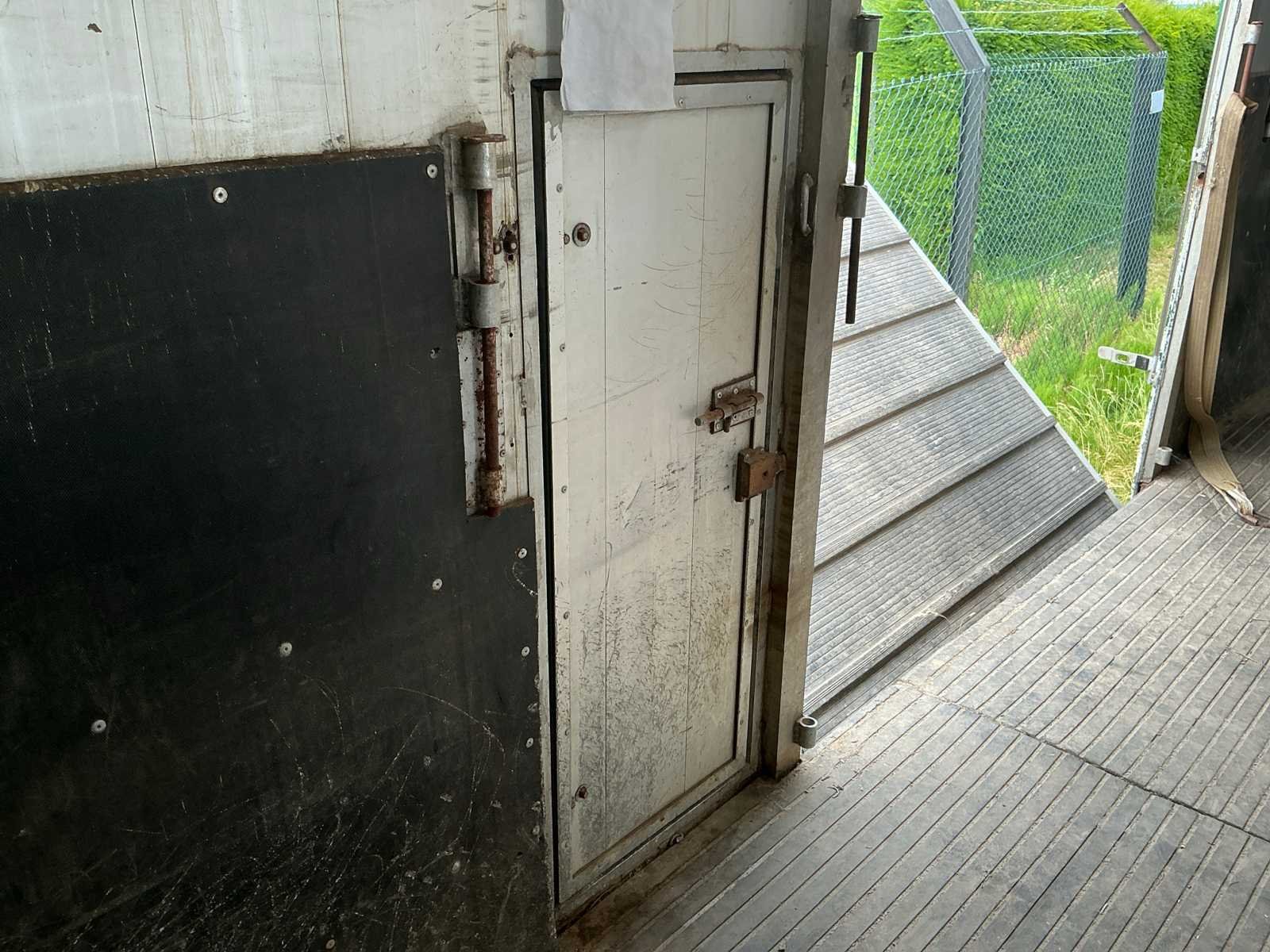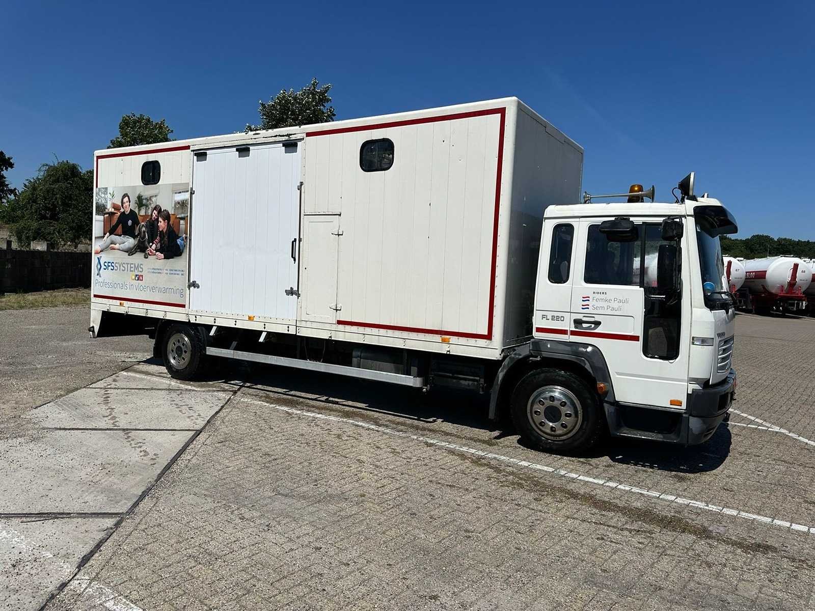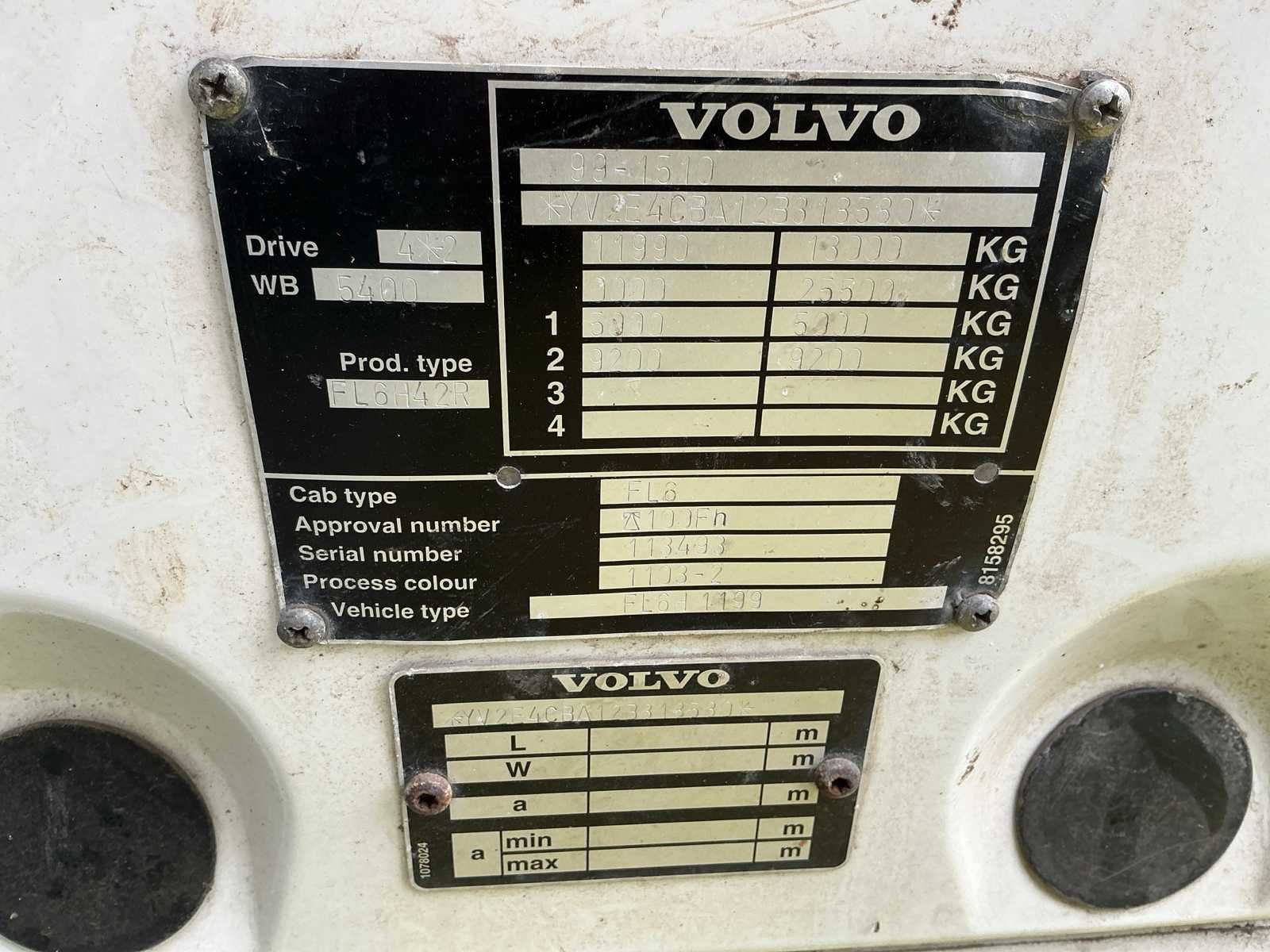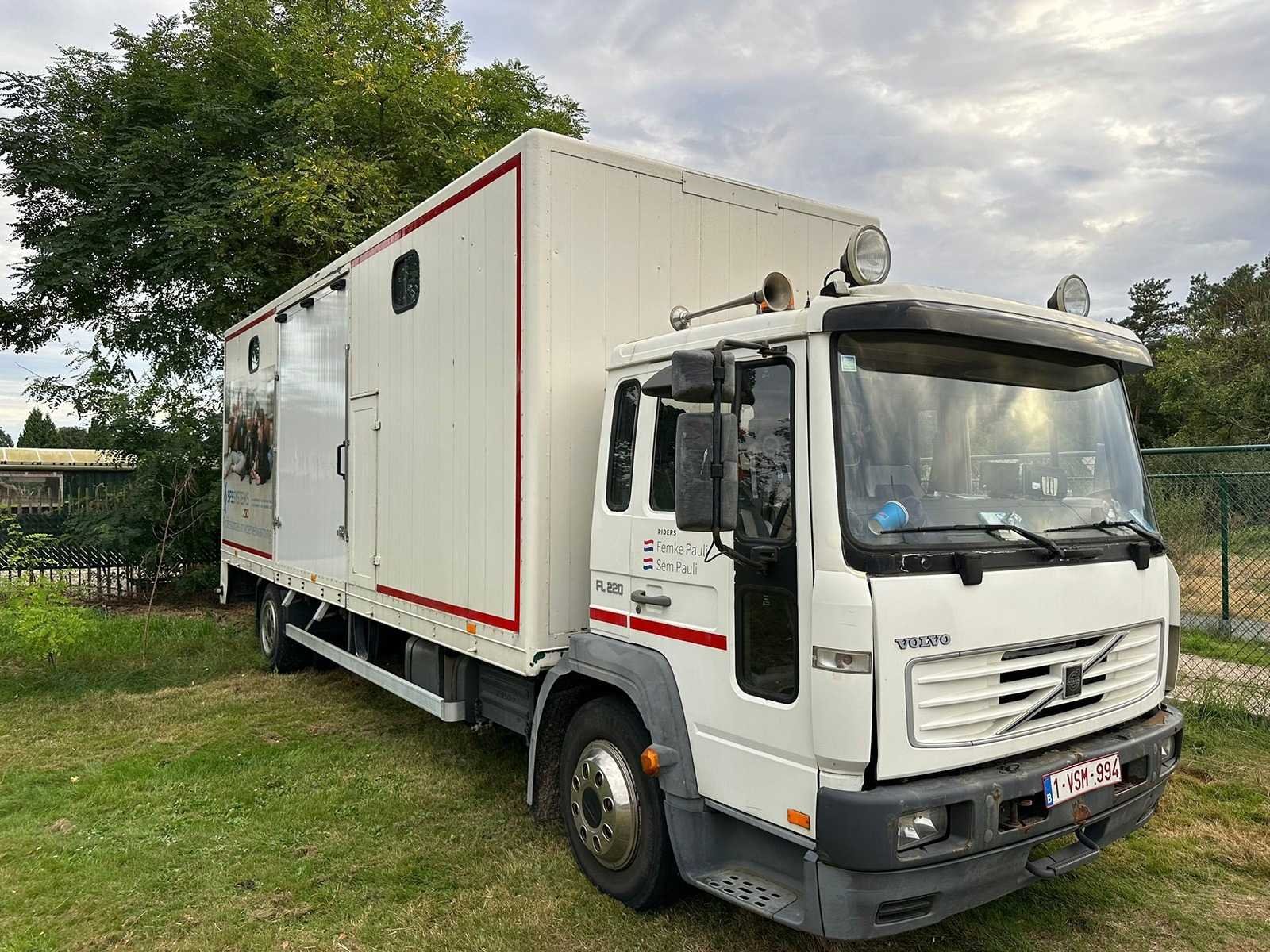 Voorzien van: achteruit rij camera, binnen camera, 4 stallings plaatsen, opbergruimte voor toebehoren, 2 zijden zijlader, verlichting, aluminium tussenschotten, rubber beklede vloer, rubber beklede zijladers, dakluiken, luchtvering, cruise-controle, a/c, radio, tachograaf, handschakel 6 bak, 694320 km, stalruimte(2350x2300x7000mm) No Merk: Volvo Model: FL220 Product type: FL6H42R Chassisnummer: YV2E4CBA12B318580 Kleur: Wit Gewicht: 5400kg Lengte: 90000cm Breedte: 2450cm Hoogte: 3350cm Nationaliteit documenten: België Bouwjaar: 2002