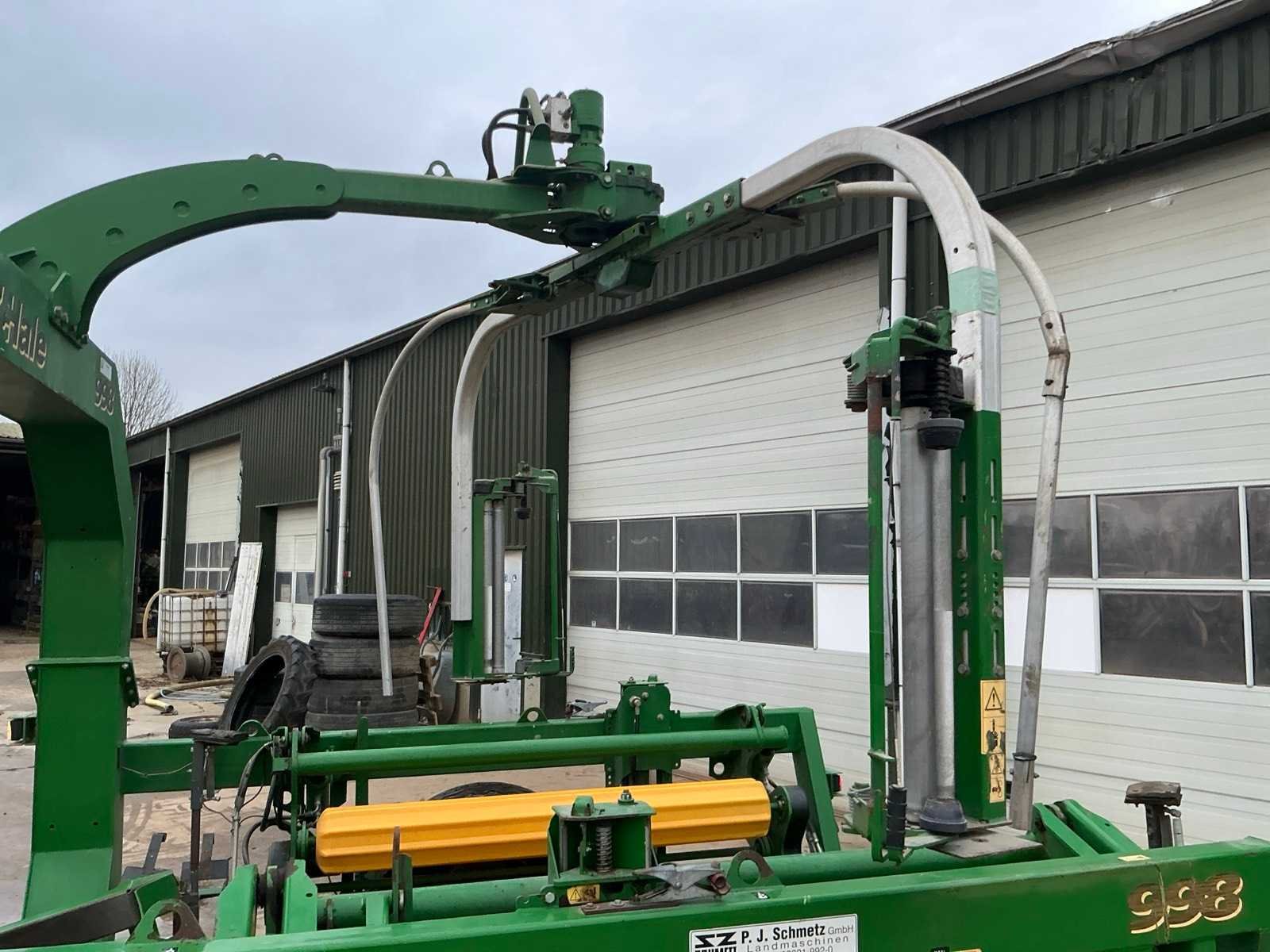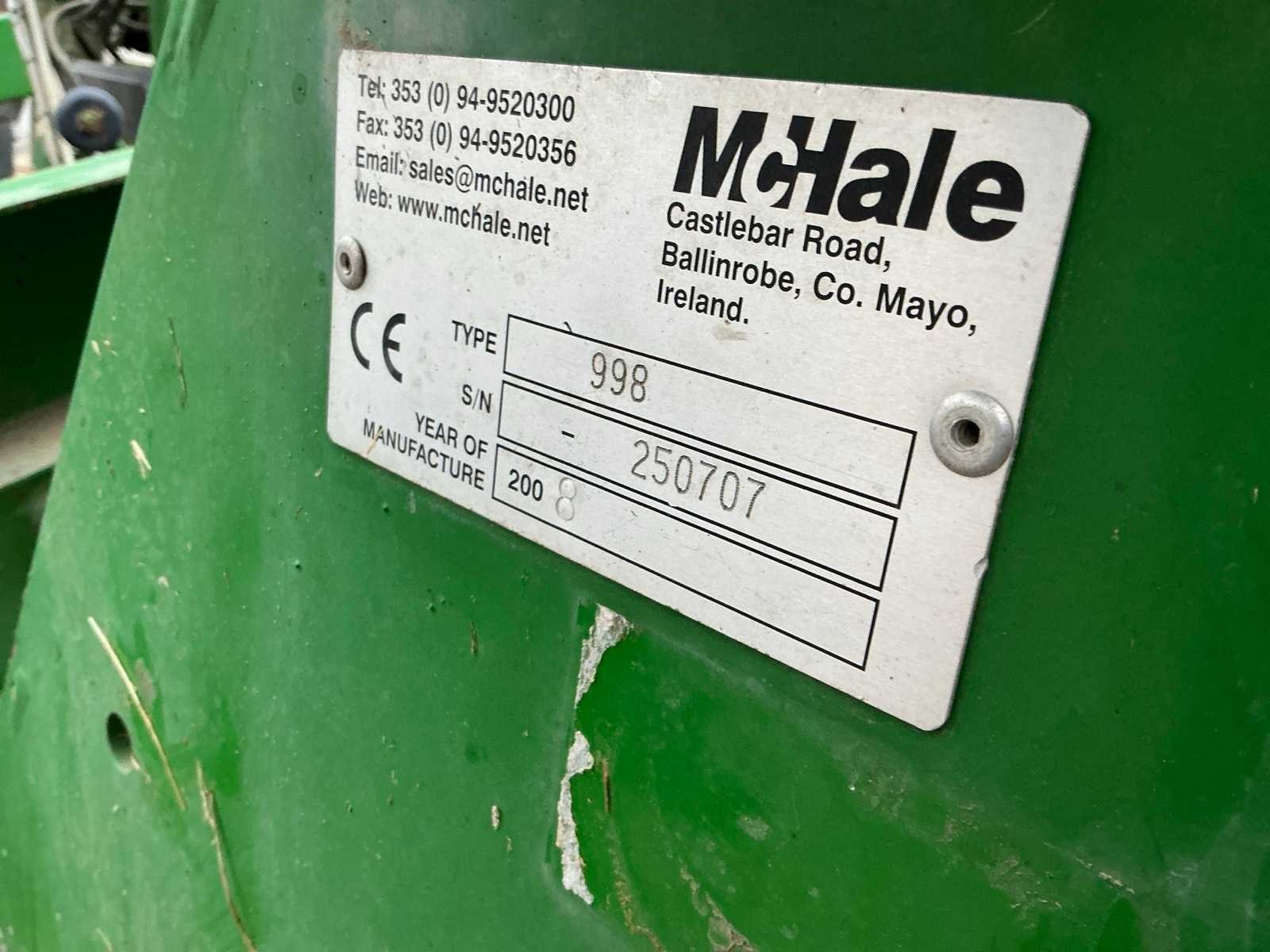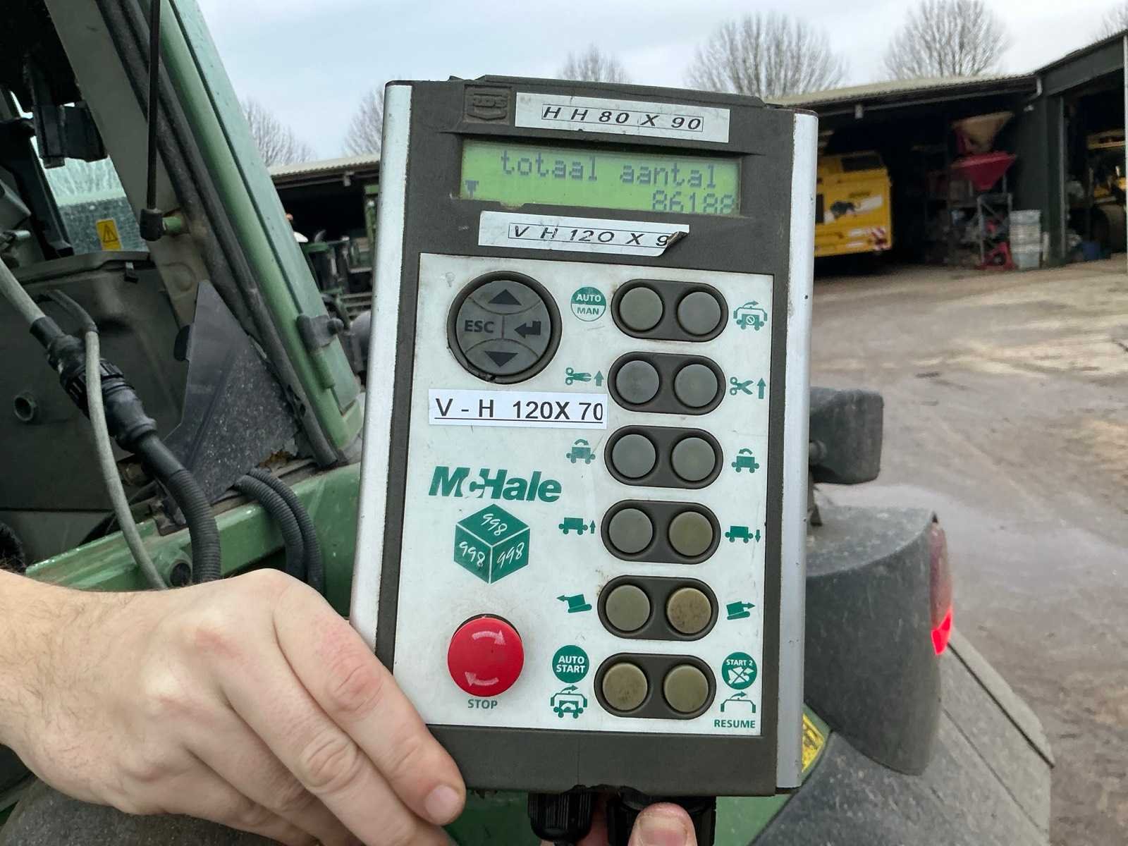 Kan diverse baalafmetingen, Maximaal 2000 mm lang, stempels, wikkelarmen, hydraulisch geremd, hydrauliek systeem, tot 12 rollen folie, balenstand: 86188. Nee Merk: Mchale Type: 998 Bouwjaar: 2008 Serienummer: 250707 Kenteken: LDX-15-L Balenteller: true Rondebalenwikkelaar: true Vierkantebalenwikkelaar: true Totale afmeting L: 7000mm Totale afmeting Breedte: 2900mm Totale afmeting Hoogte: 4000mm