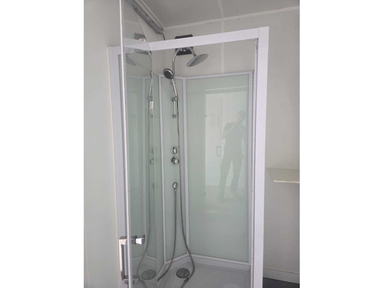 - 20ft highcube container met extra breedte. Inhoud: 4x aparte ruime douche units, Voorzien van: - Aan te sluiten op 400 volt, - rioolafvoer, - wateraanvoer, - luchtafzuigingen, Container rust op 2 H balken, Meterkast met aardlekschakelaar en 5x 230 volt en 1x 400 volt automaten inbegrepen. 2x stopcontacten aanwezig in de container, Afmetingen: Lengte: 606 cm Breedte: 300 cm Hoogte: 305 cm Nee Totale afmeting L: 6060mm Totale afmeting Breedte: 3000mm Totale afmeting Hoogte: 3050mm