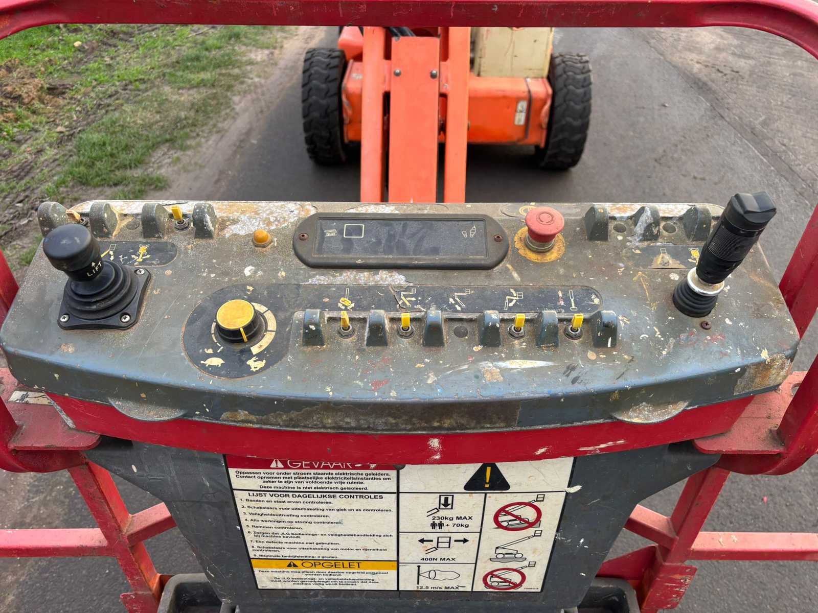 Platformhoogte 13,72 meter * voorzien van documentatie Nee Merk: JLG Type: E450AJ Bouwjaar: 2005 Serienummer: 0300084601 Elektrisch: true Werkhoogte: 15720mm Horizontale rijkwijdte: 7240mm Plateau afm. l: 1530mm Plateau afm. b: 750mm Platform capaciteit: 227kg Eigen gewicht: 6727kg Totale afmeting L: 6450mm Totale afmeting Breedte: 1750mm Totale afmeting Hoogte: 2010mm Leveringsvoorwaarden: Gratis op vrachtwagen