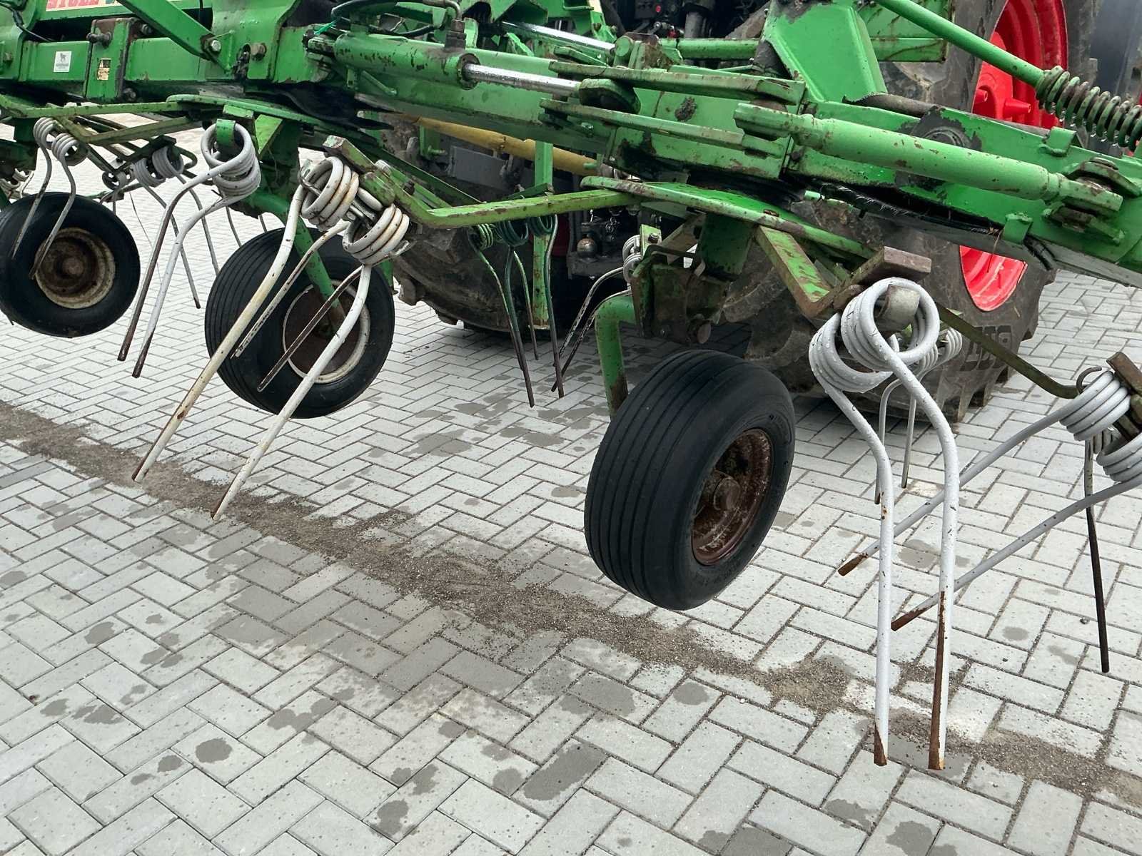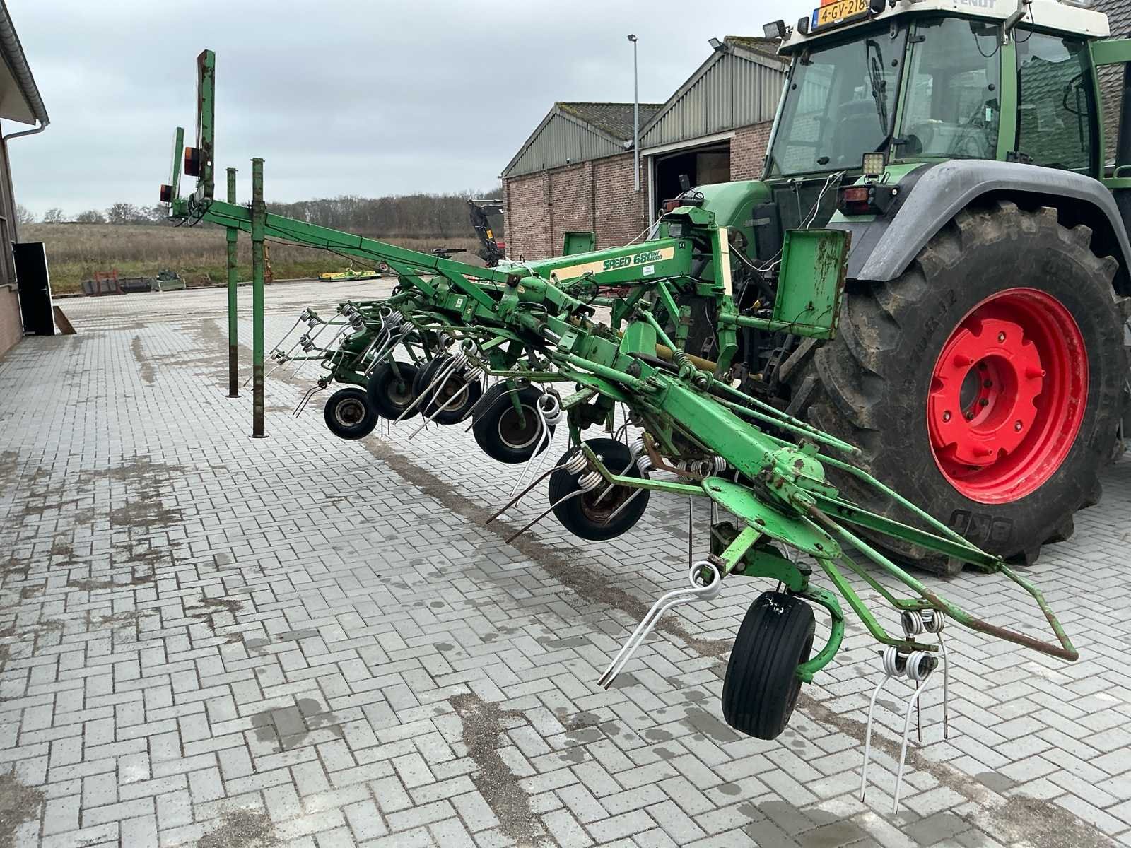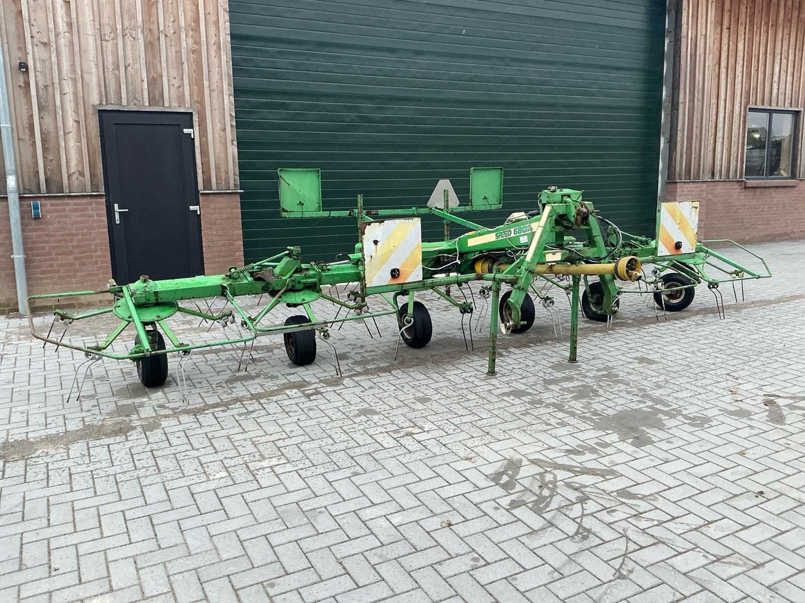 Voorzien van: Stoll Speed 680 Hydro, tweerotorige, hydraulisch inklapbare rotorhark met een werkbreedte van circa 6,8 meter, zes rotoren, bediening 1dubbelwerkend hydraulisch circuit, verlichting en waarschuwingsborden voor transport. Wat dit betekent: 6,8 m breedte: Bestrijkt een groot oppervlak voor efficiënt harken. 6 rotoren: Zorgt voor een goede materiaalstroom en nauwkeurige zwadenvorming. Hydraulisch inklapmechanisme: Maakt het mogelijk om de cabine eenvoudig in te klappen voor transport, zonder de tractor te verlaten. Nee Merk: Stoll Type: Speed 680 hydro Hydraulisch opklapbaar: true Eigen gewicht: 880kg Totale afmeting L: 3000mm Totale afmeting Breedte: 2600mm Totale afmeting Hoogte: 2900mm