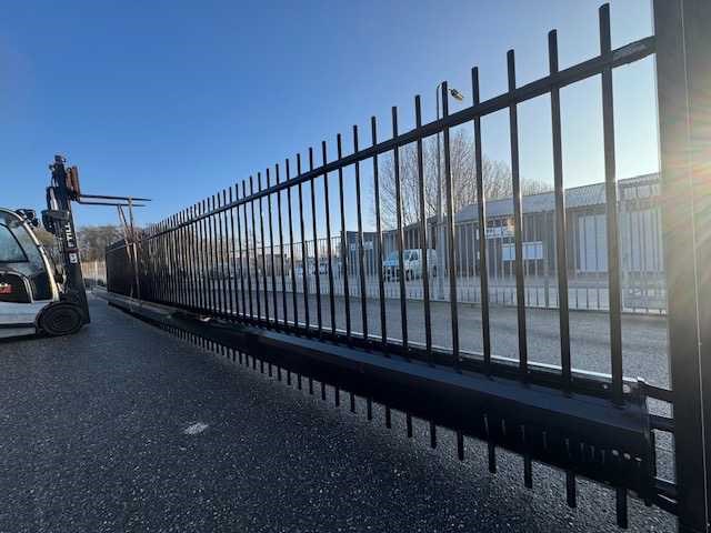Automatisch Totale lengte: 16,5m. Doorgang: 12m. Hoogte: 2m. Opent vanaf voorzijde gezien naar links. Kleur: zwart. Wordt geleverd met portieken, sluitpaal en 380V motor. Nee Merk: Heras Kleur: Zwart Lengte: 1650cm Breedte: 60cm Hoogte: 200cm Materiaal: Staal