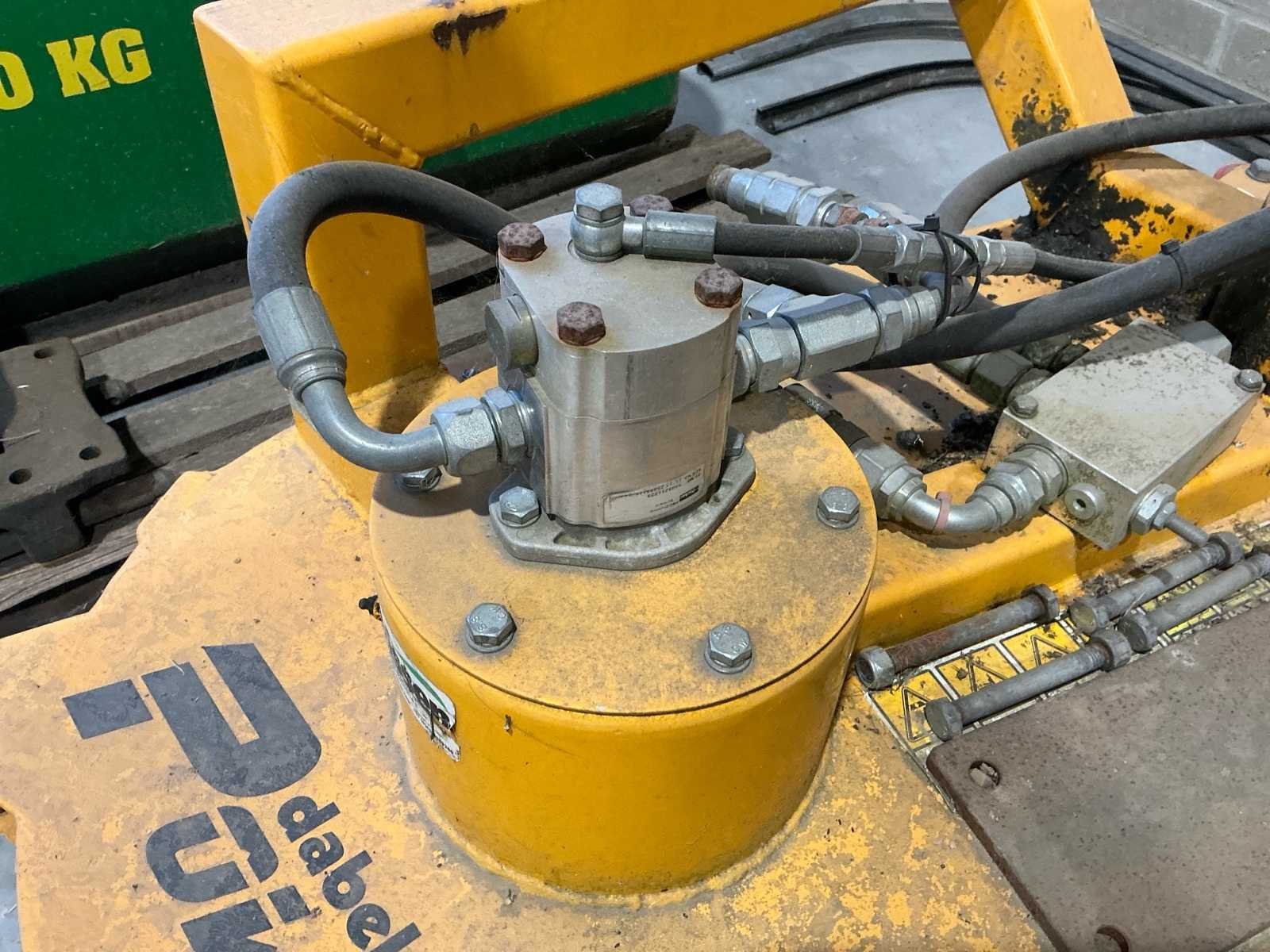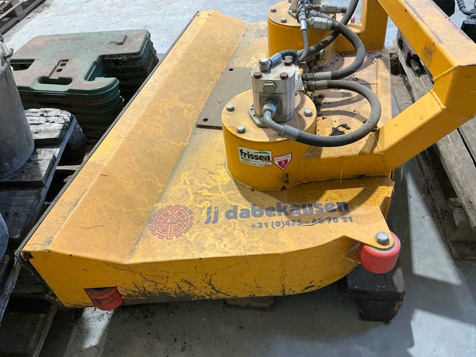 Bestaat uit: Dabekausen POW.RM 1250 Pro, maaicapaciteit tot ca. 25 mm Ø, hoge werksnelheden mogelijk, mulchwerking, werkbreedte (m) 1,25, benodigd hydraulisch vermogen (l/min) 45, werkdruk (bar) 180, aantal rotoren 2, aantal messen per rotor 2, aandrijving rotor Direct, gewicht (kg) 130, aanbouwkoker (standaard, in mm) 80. Nee Merk: Dabekausen Type: Pow.RM1250 Pro Serienummer: 56854EFA Eigen gewicht: 130kg