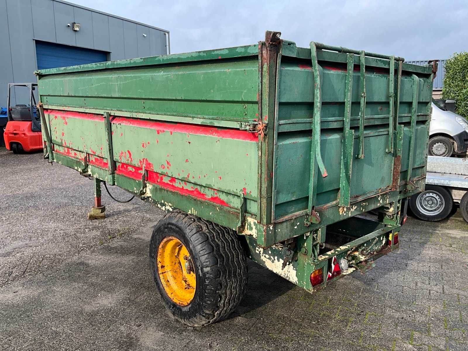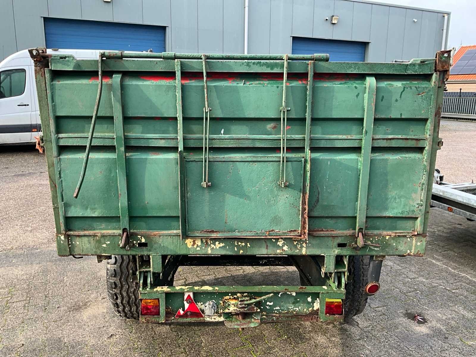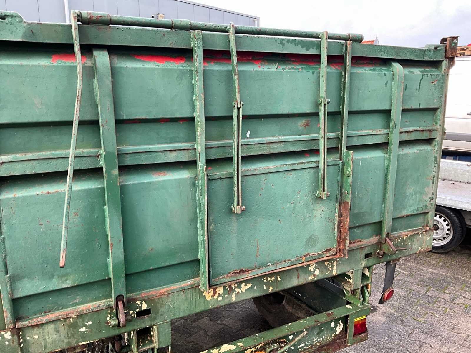 Bakafmeting: ca. 340x190x85 cm (lxbxh); voetschuif; ringtrekhaak; hydraulisch kiepbaar, Nee Merk: Kemper Type: E60 Aantal assen: 1 Bandenmaat: 15.0/55-17 Totale afmeting L: 4800mm Totale afmeting Breedte: 2000mm Totale afmeting Hoogte: 1850mm