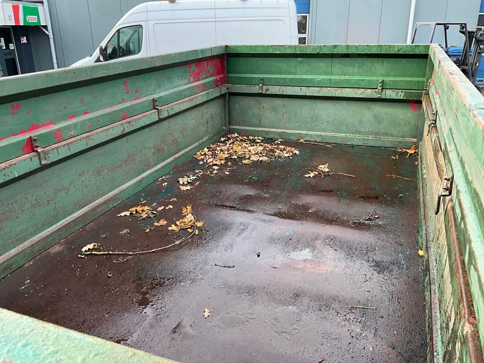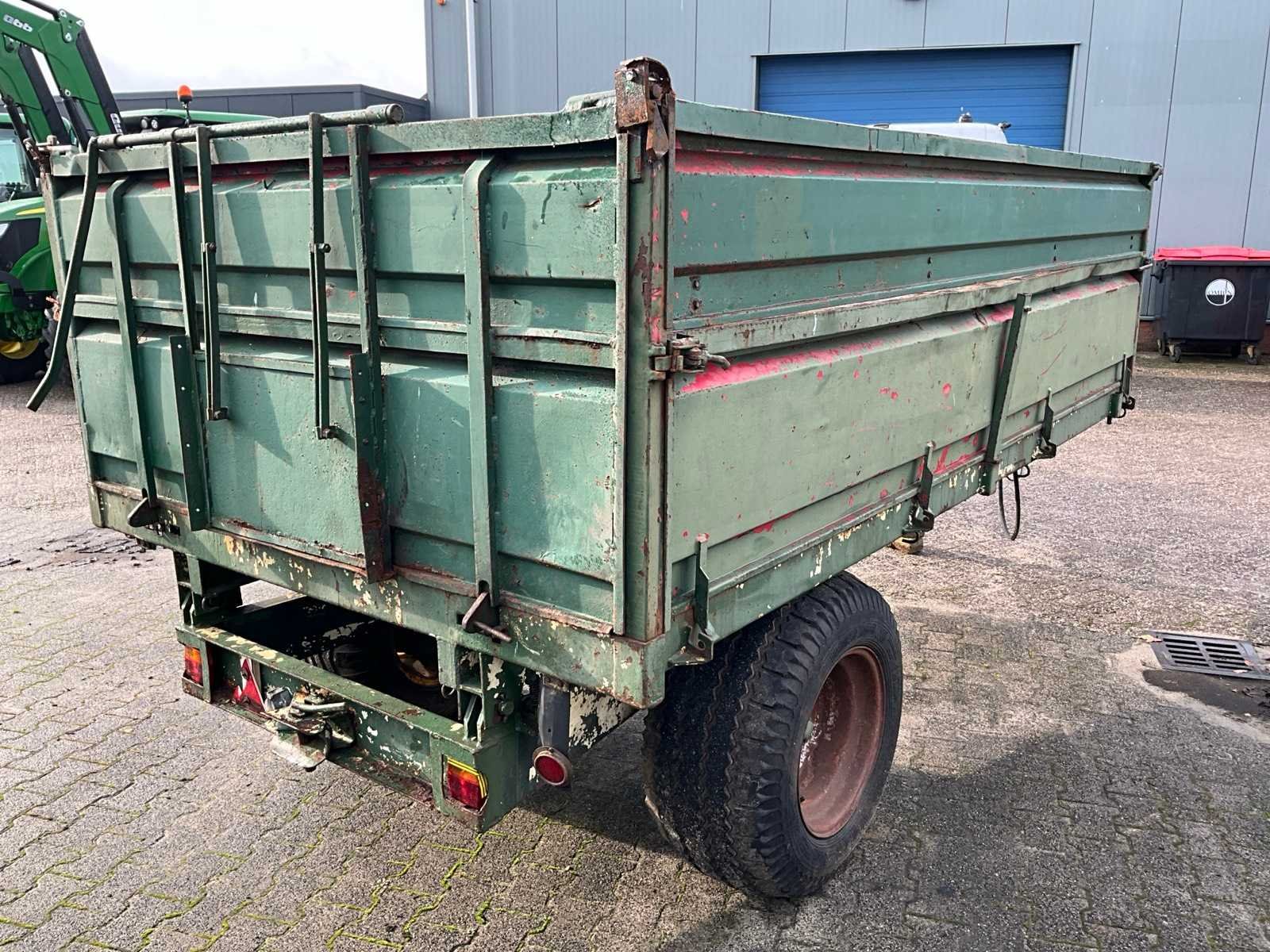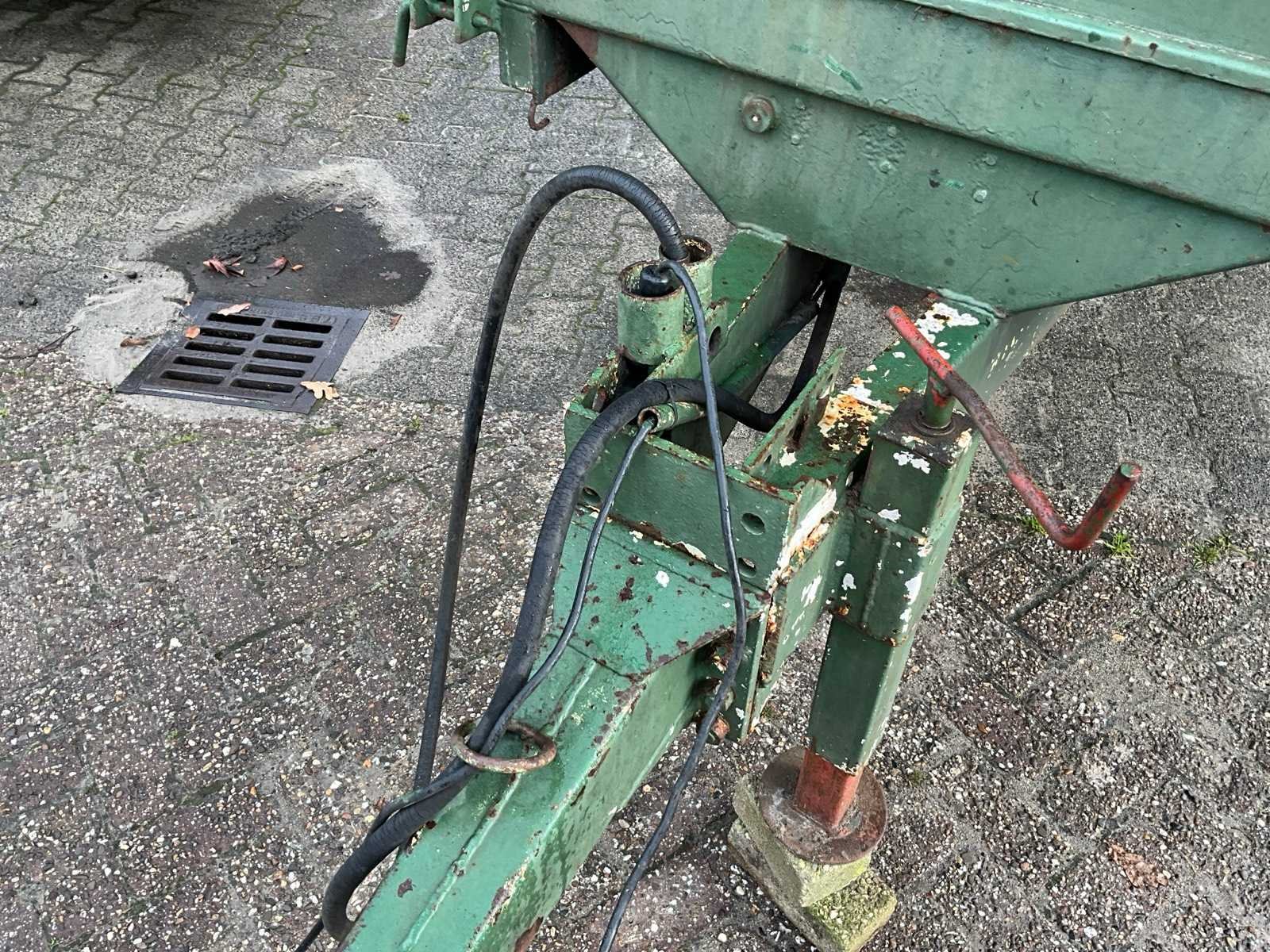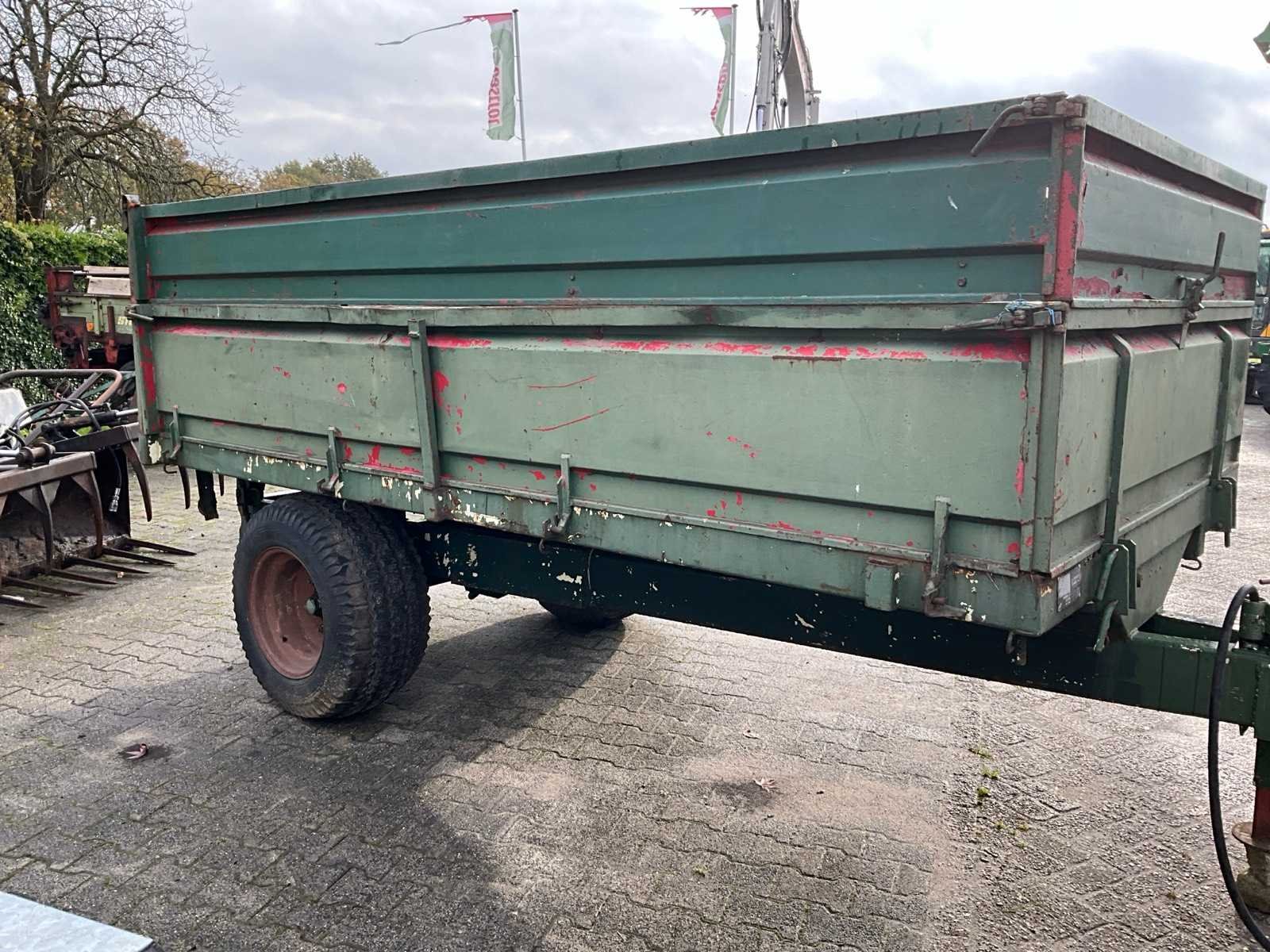 Bakafmeting: ca. 340x190x85 cm (lxbxh); voetschuif; ringtrekhaak; hydraulisch kiepbaar, Nee Merk: Kemper Type: E60 Aantal assen: 1 Bandenmaat: 15.0/55-17 Totale afmeting L: 4800mm Totale afmeting Breedte: 2000mm Totale afmeting Hoogte: 1850mm