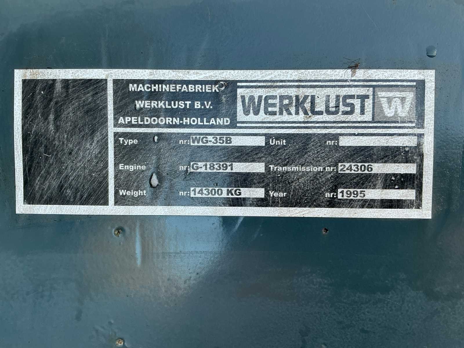 Voorzien van; 6-Cilinder; DAF motor; Extra functie; Werkverkichting. Nee Merk: Werklust Type: WG35B Bouwjaar: 1995 Serienummer: 24306 Merk motor: DAF Aantal cilinders: 6 Brandstof: Diesel Cabine: true Afgelezen urenstand: 8403 Eigen gewicht: 14300kg