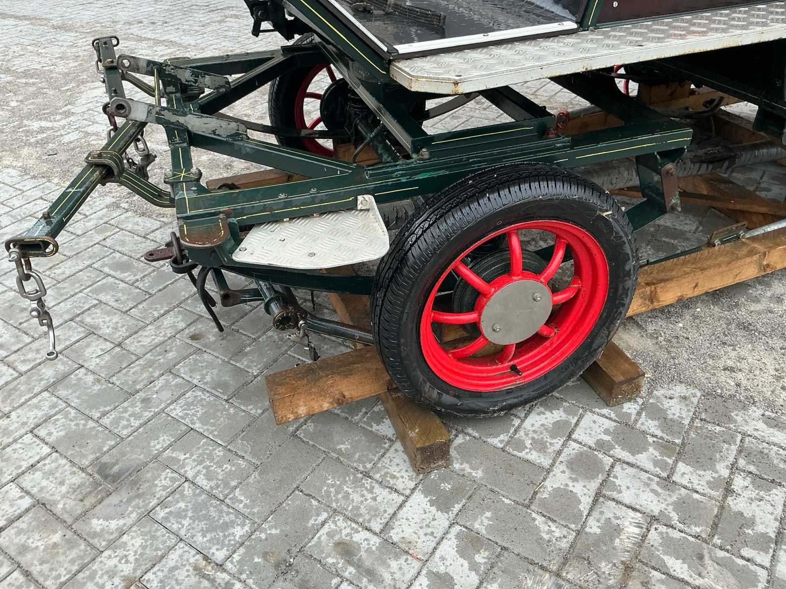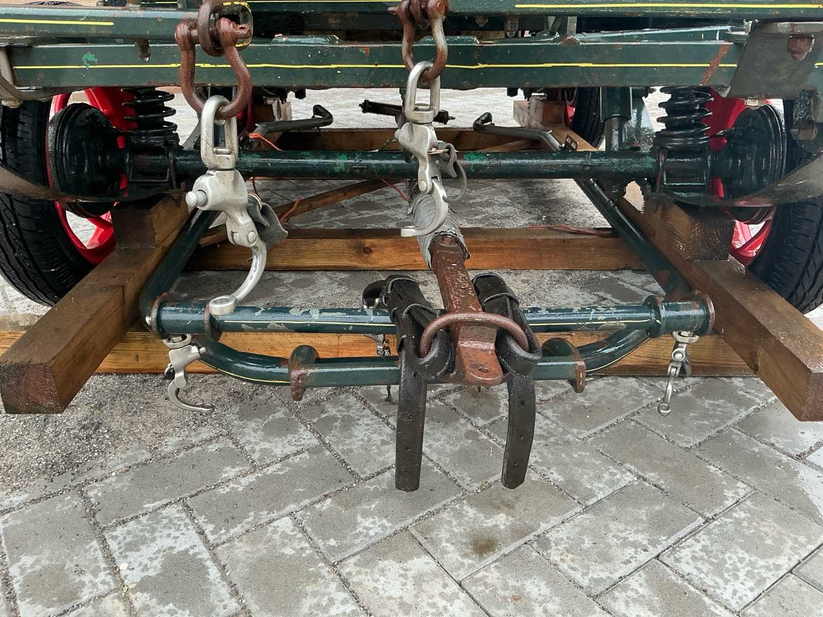 Voorzien van: Merk : enkel en Tweespan, wielmaat 135/70R15, voor en achter geremd, voor en achter geveerd, opbergbakken onder voorbank, achterbanken 120cm , bokzithoogte circa 1300mm, spoorbreedte 1300, kleur : donker groen, handrem, banken met rugleuning, verstelbare dissel, aluminium antislip opstappen, reflectoren, voetrem, verhoogd zitkussen. Nee Merk: Onbekend Kleur: Groen Lengte: 3000cm Breedte: 1450cm Hoogte: 1650cm