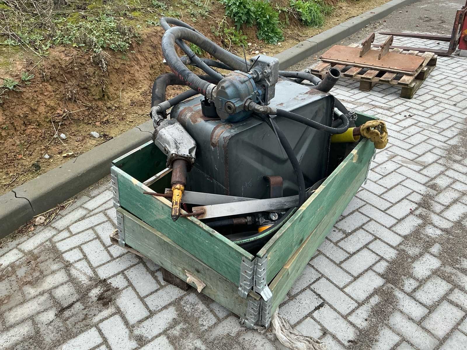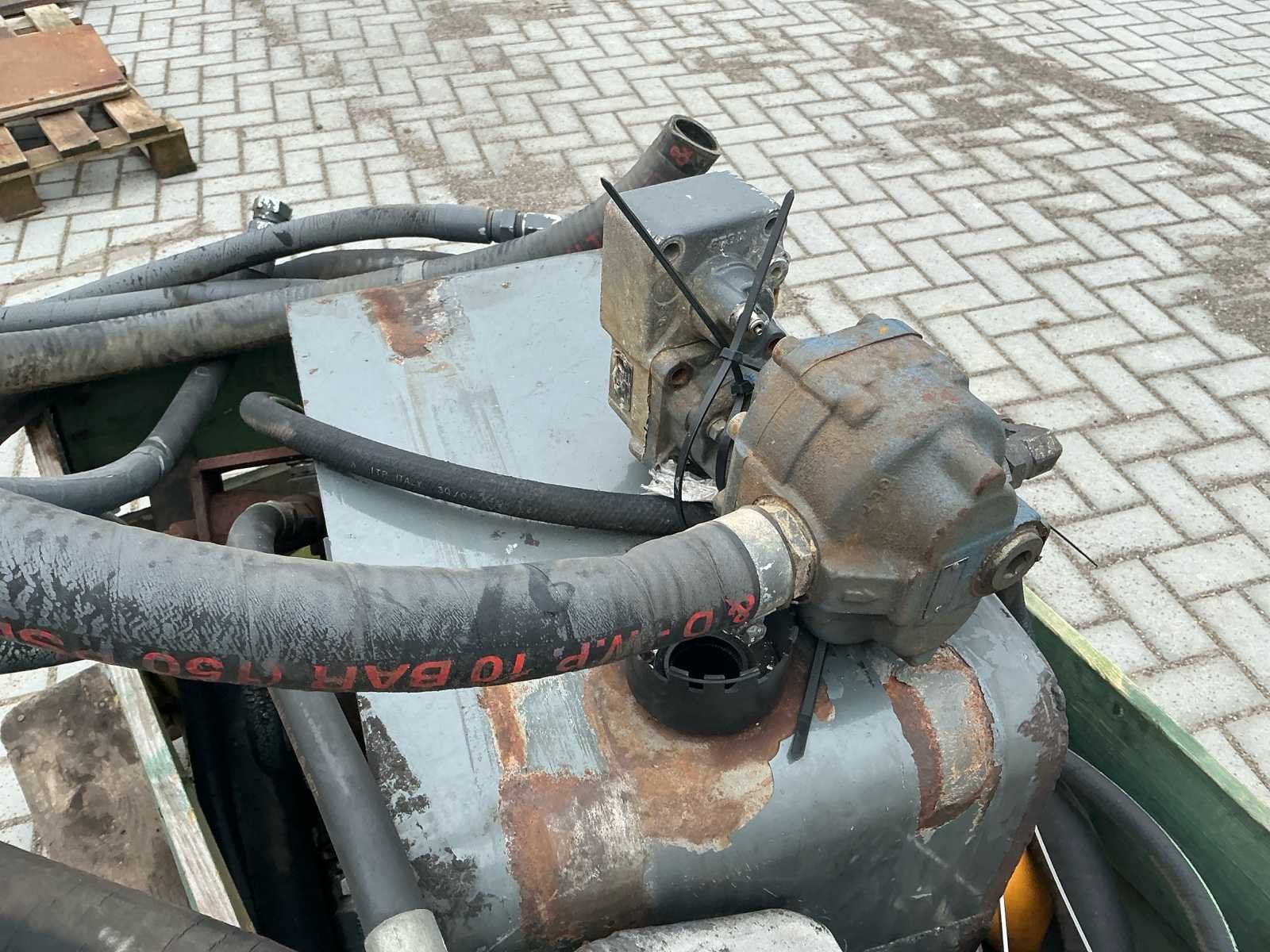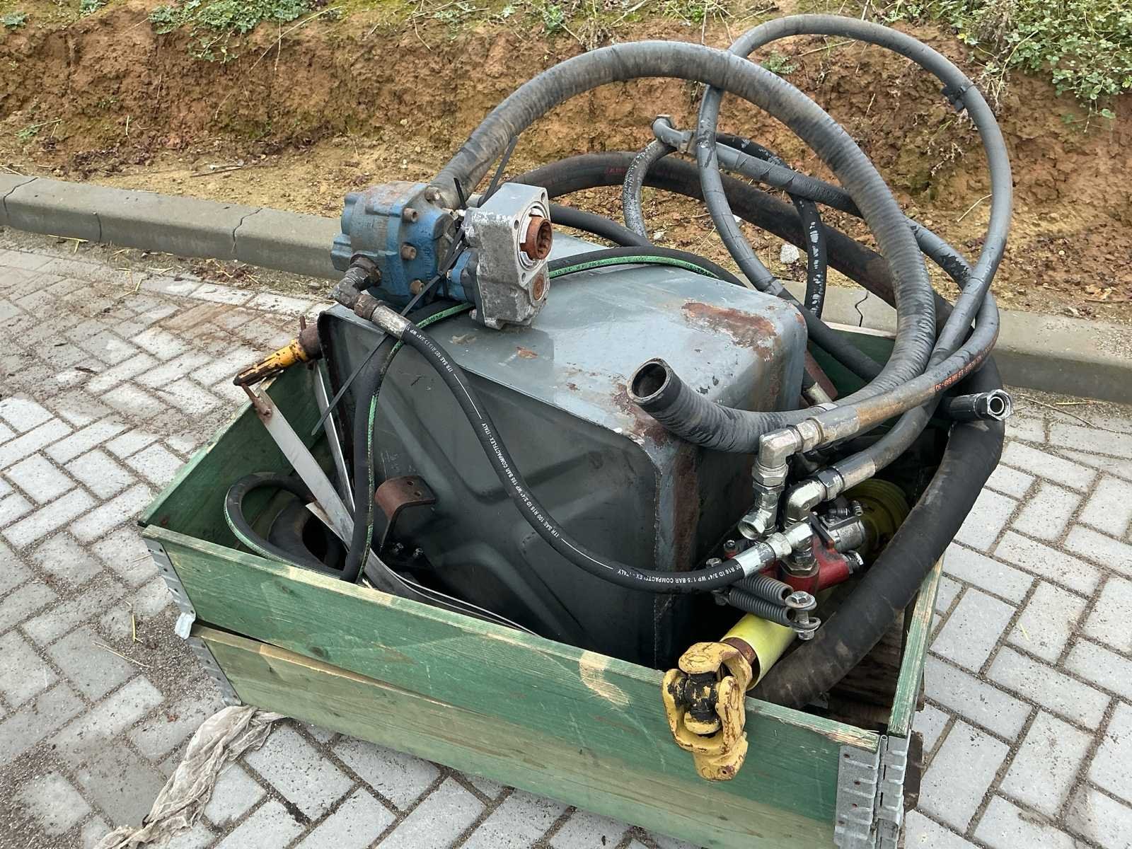 Bestaat uit: hydrauliek tank, 2 stuks hydrauliek pomp, aftakas aansluiting 6 splines, filter unit, aftakas, regelventiel, slangen, unit t.b.v. via aftakas aandrijving hydraulisch cilinders te bedienen, Nee Merk: Eigenbouw