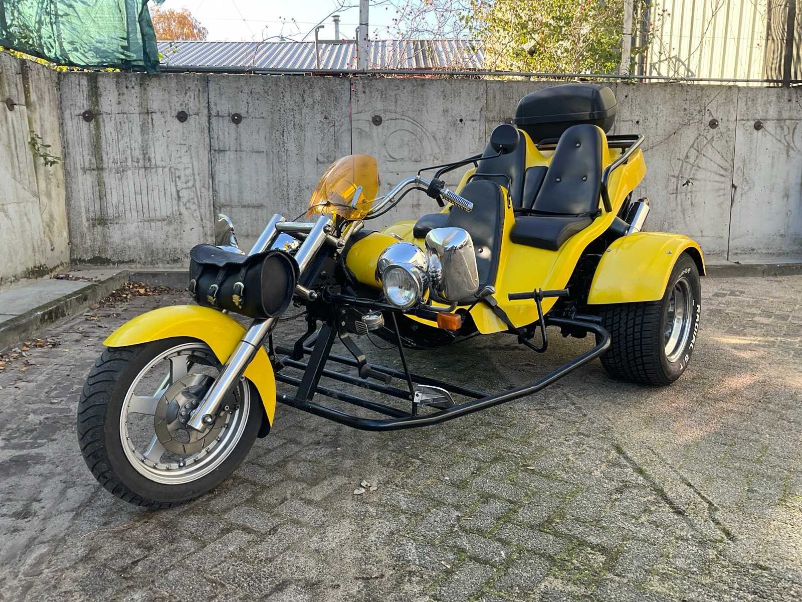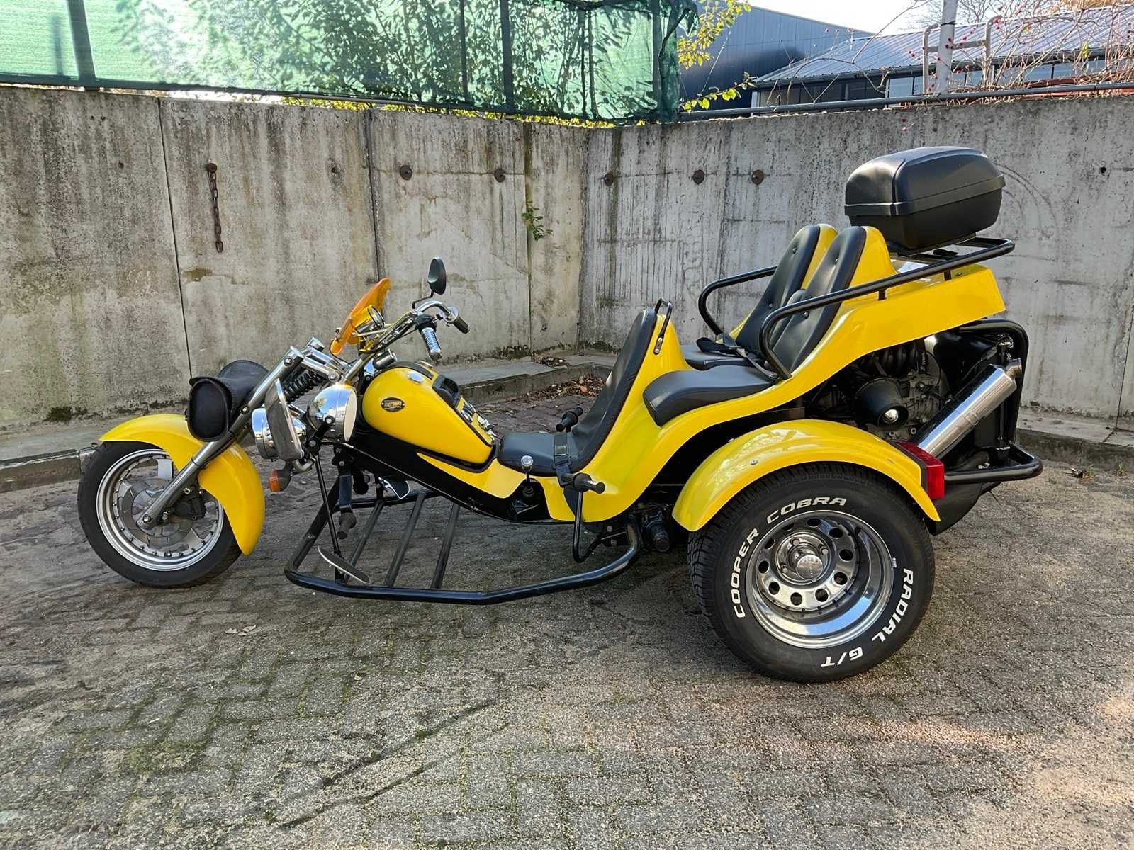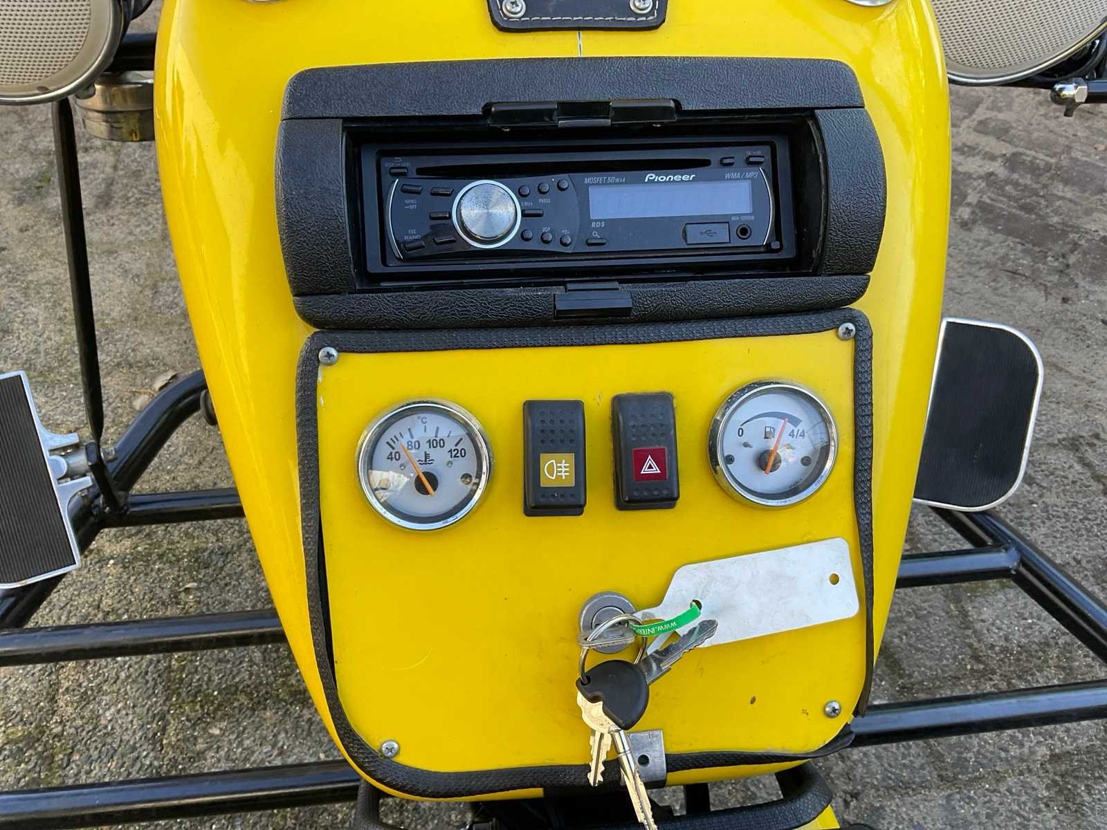 3-persoons voorzien van: Peugeot 4-cilnder 1.4L benzinemotor, 4 versnellingen, achteruitversnelling, radio met speakers, trekhaak, schijfremmen, topkoffer, Cooper Cobra 295/50R15 achterbanden, 150/70R17 voorband, bagagewagen, ingevoerd vanuit Belgie, Nederlandse import papieren aanwezig, BPM (+-500 euro) nog niet afbetaald, Nee Merk: Easy Trike Product type: E1 Chassisnummer: W09E1F2755RE12393 Aantal zitplaatsen: 3 Bouwjaar: 2006 Afgelezen kilometerstand: 74420km Lengte: 340cm Breedte: 182cm