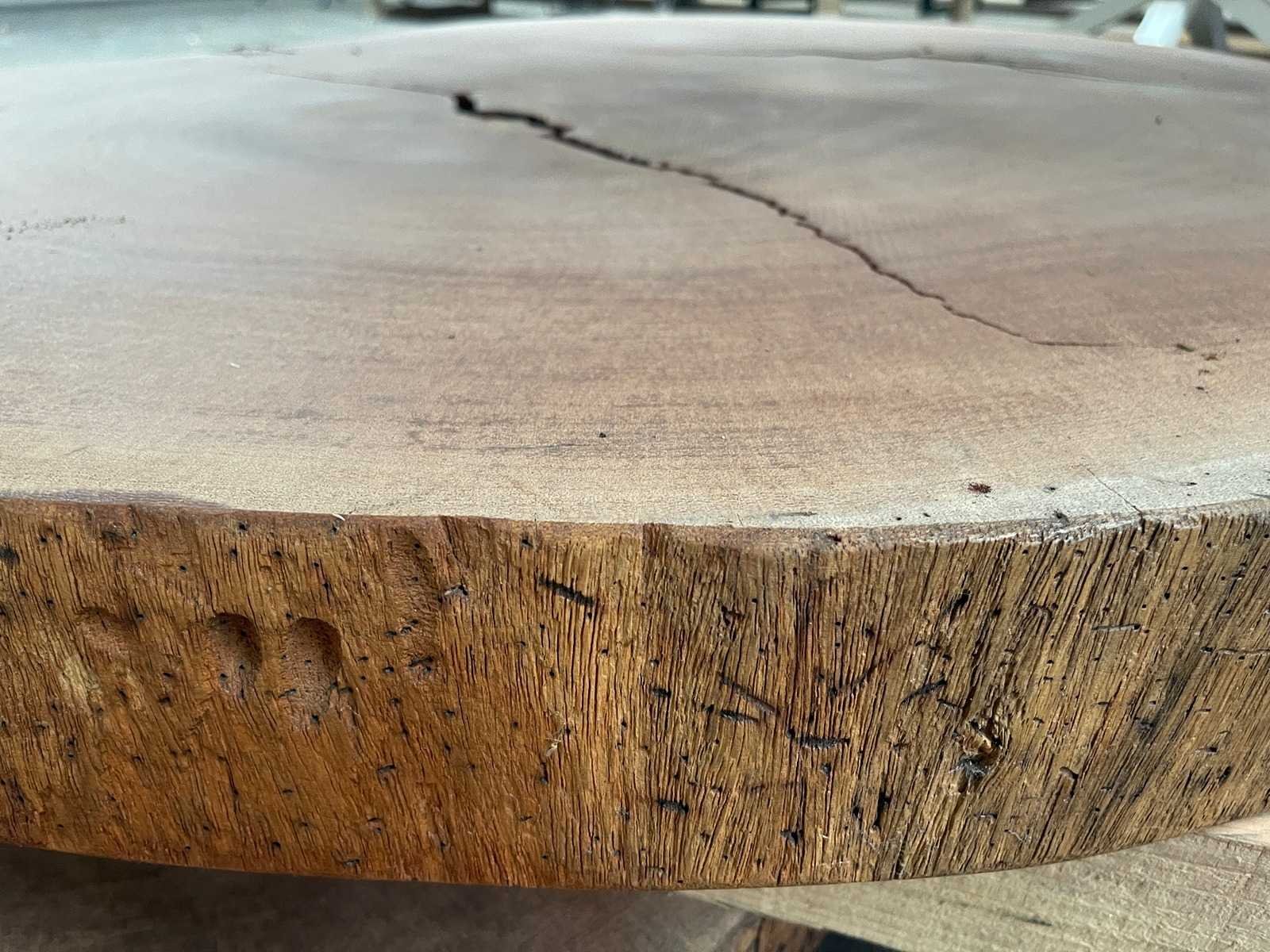 Geschuurd en geolied. Let op, breedte is de gemiddelde breedte. Nee Breedte: 110cm Materiaal: Guyana Teak / Basralocus