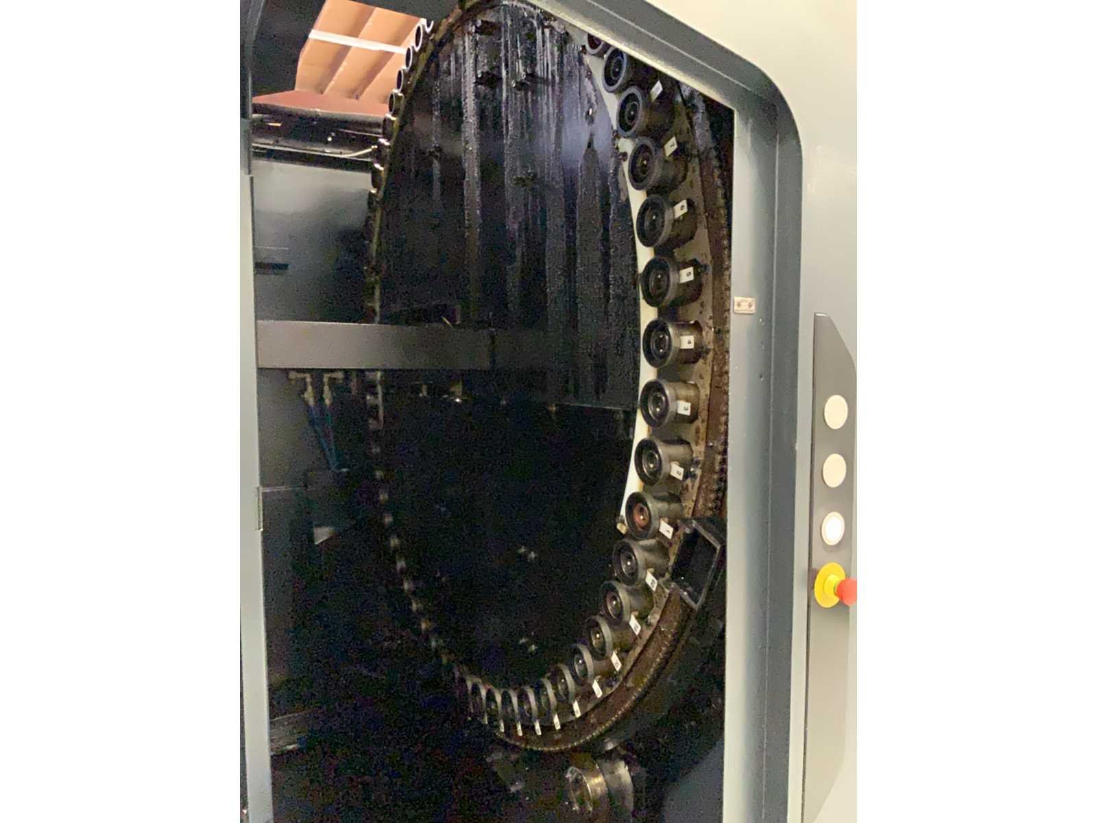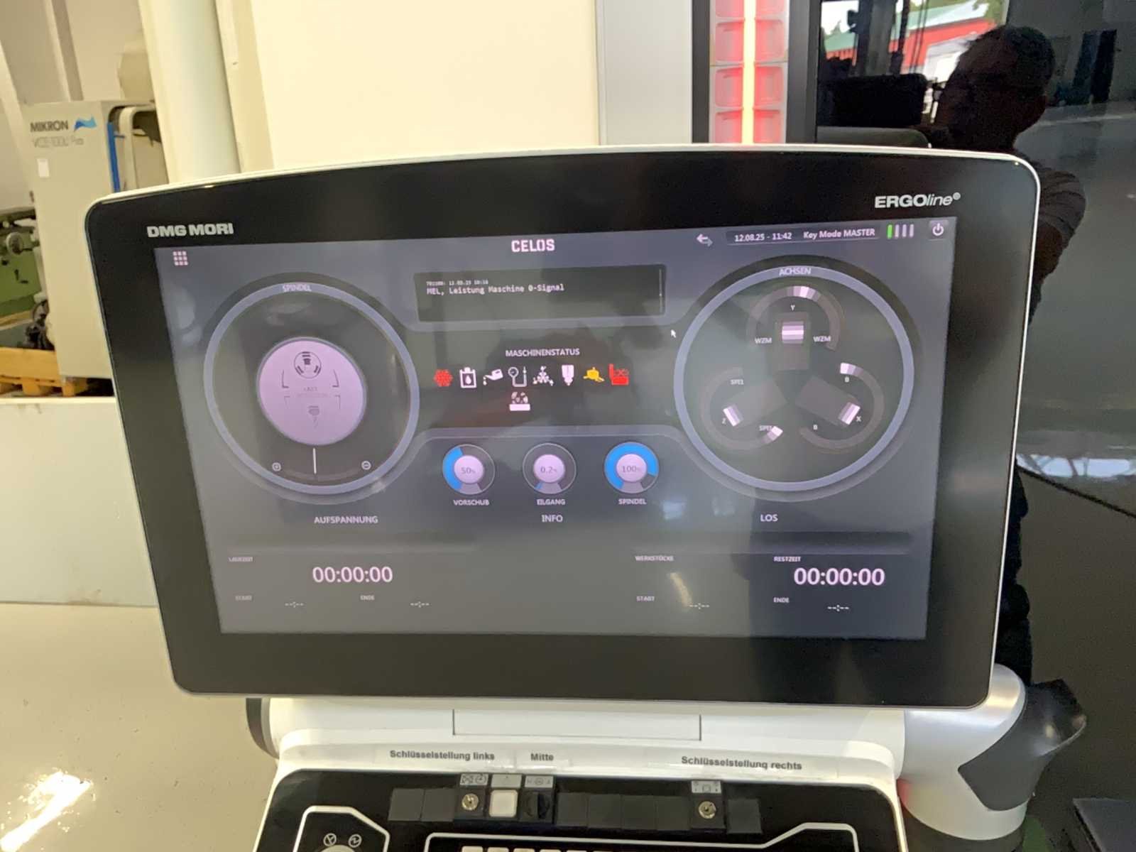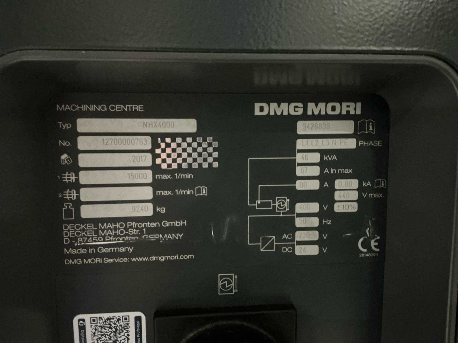 Voorzien van carrousel gereedschapswisselmagazijn 60 plaatsen, zonder gereedschappen; pallet wisselaar (A-B), afmeting: 400x400 mm, met elk 1 opspanzuil, afmeting: 200x200x600 mm, 1 Knoll filterinstallatie, type: KF 110/700, 1 spanenafvoertransportband. Nee Merk: DMG MORI Type: NHX 4000 Bouwjaar: 2017 Serienummer: 12700000763 Verplaatsing x-as: 560mm Verplaatsing y-as: 560mm Verplaatsing z-as: 660mm Opname: HKS 63 Snelheid tot n =: 15000rpm Werkstuk gewicht max.: 450kg CNC-besturing, merk, type: Siemens Sinumerik Celos Afgelezen urenstand: 19712 Aansluiting: 400V Machinegewicht: 9240kg Totale afmeting L: 5450mm Totale afmeting Breedte: 2900mm Totale afmeting Hoogte: 2950mm