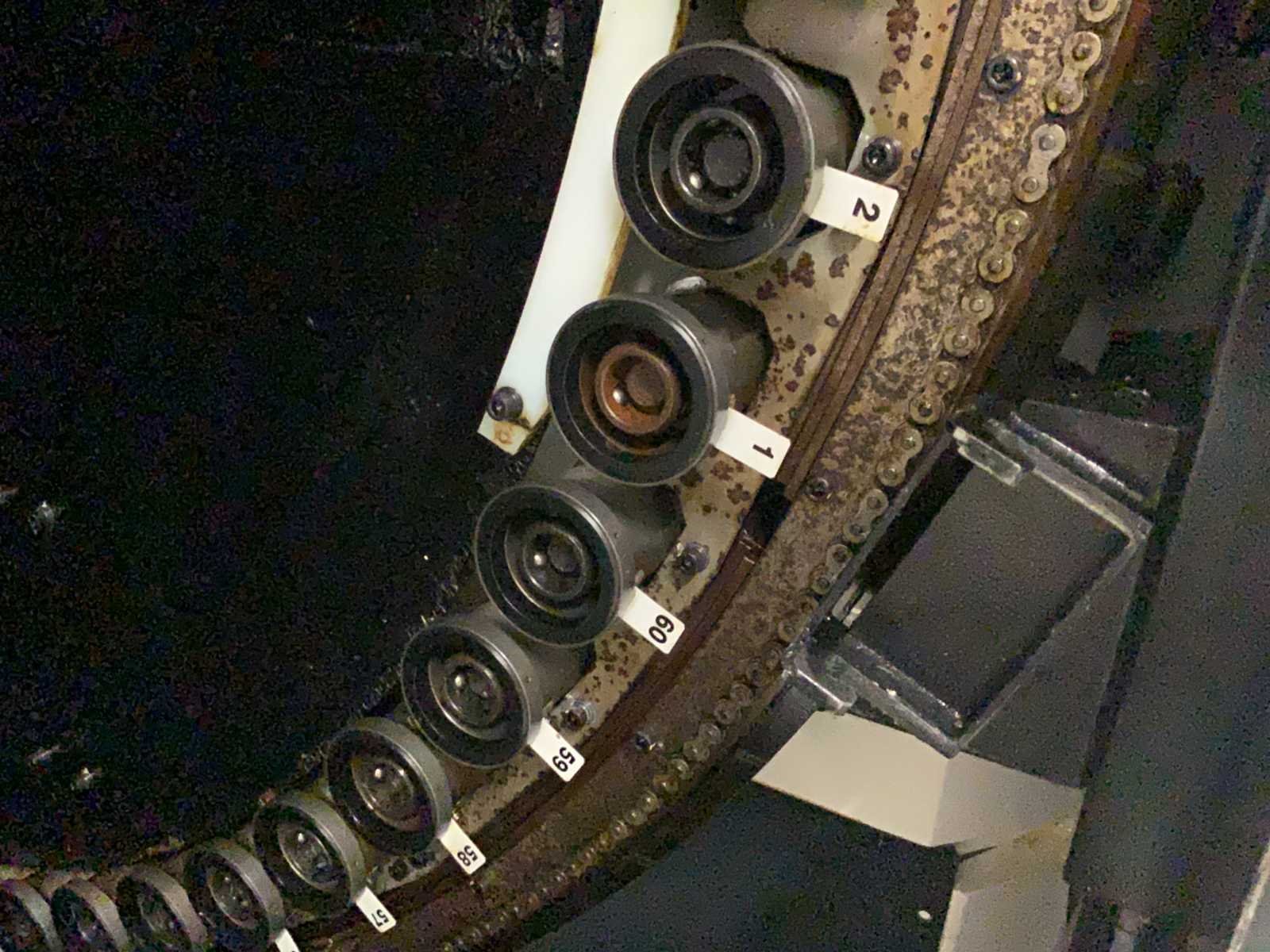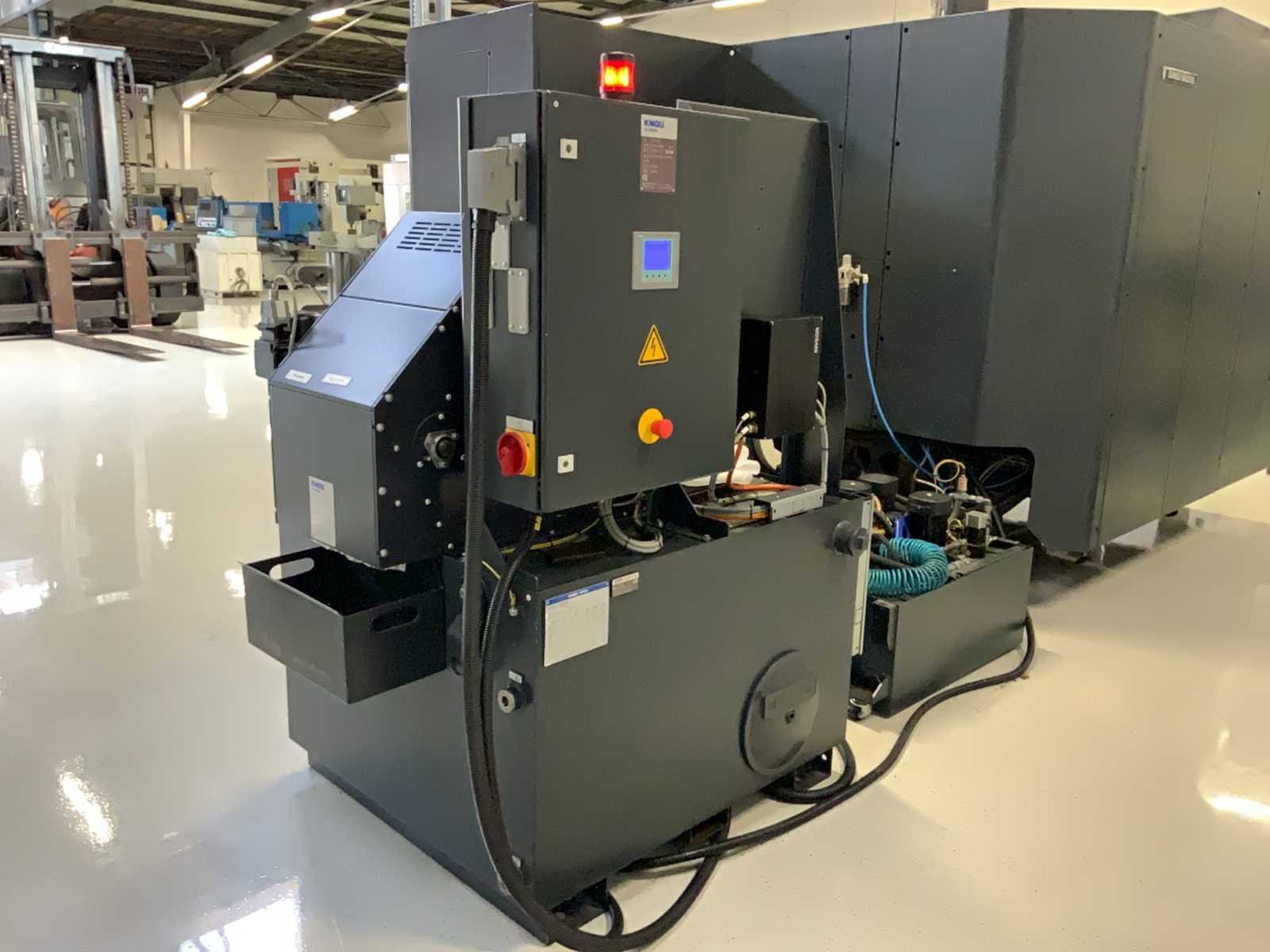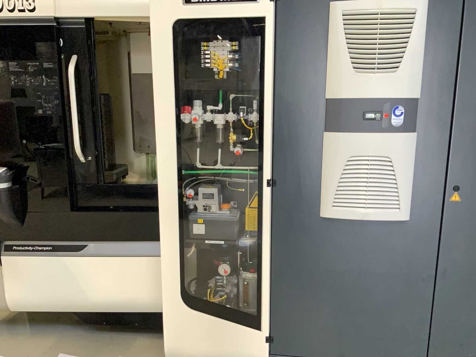 Voorzien van carrousel gereedschapswisselmagazijn 60 plaatsen, zonder gereedschappen; pallet wisselaar (A-B), afmeting: 400x400 mm, met elk 1 opspanzuil, afmeting: 200x200x600 mm, 1 Knoll filterinstallatie, type: KF 110/700, 1 spanenafvoertransportband. Nee Merk: DMG MORI Type: NHX 4000 Bouwjaar: 2017 Serienummer: 12700000763 Verplaatsing x-as: 560mm Verplaatsing y-as: 560mm Verplaatsing z-as: 660mm Opname: HKS 63 Snelheid tot n =: 15000rpm Werkstuk gewicht max.: 450kg CNC-besturing, merk, type: Siemens Sinumerik Celos Afgelezen urenstand: 19712 Aansluiting: 400V Machinegewicht: 9240kg Totale afmeting L: 5450mm Totale afmeting Breedte: 2900mm Totale afmeting Hoogte: 2950mm