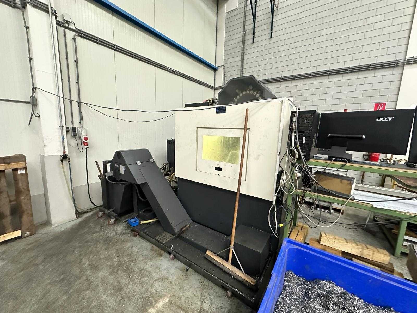Voorzien van: 4e as met tegencenter, Koeling door de spil. Nee Merk: Hwacheon Type: Vesta 1050B Bouwjaar: 2012 Opname iso: BT40 Verplaatsing x-as: 1050mm Verplaatsing y-as: 600mm Verplaatsing z-as: 600mm Afgelezen urenstand: 10700 CNC-besturing, merk, type: Fanuc Oi-MD Spanentransporteur: true Koelmiddelpomp: true Aansluiting: 400V Machinegewicht: 7200kg Afmeting l: 3300mm Afmeting b: 2200mm Afmeting h: 2400mm