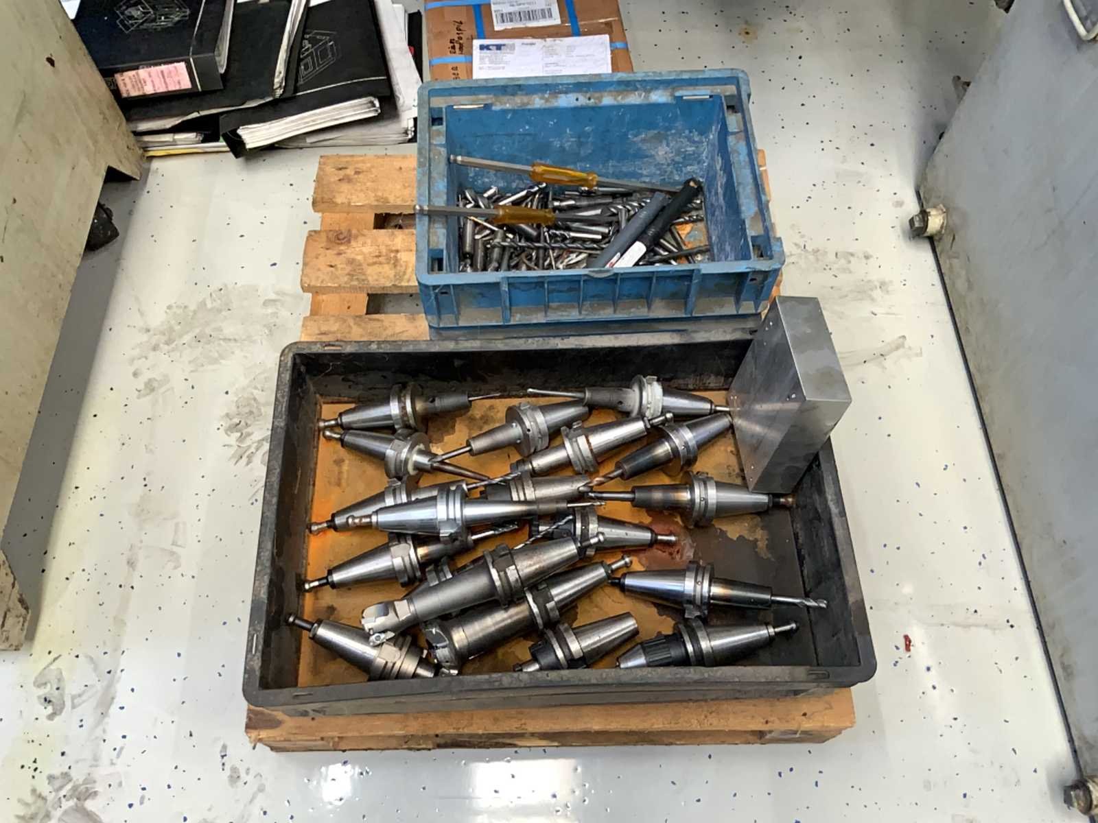 Voorzien van gereedschapwisselmagazijn, 60 plaatsen, zonder gereedschappen; pallet wisselaar. Uitlevering 1e ophaaldag. Nee Merk: Quaser Type: MK 60 II H Bouwjaar: 1999 Opname iso: SH-40 Verplaatsing x-as: 710mm Verplaatsing y-as: 610mm Verplaatsing z-as: 610mm CNC-besturing, merk, type: Fanuc Spanentransporteur: true -assig: 4 Aansluiting: 380V Machinegewicht: 11500kg Afmeting l: 5100mm Afmeting b: 2800mm Afmeting h: 3150mm
