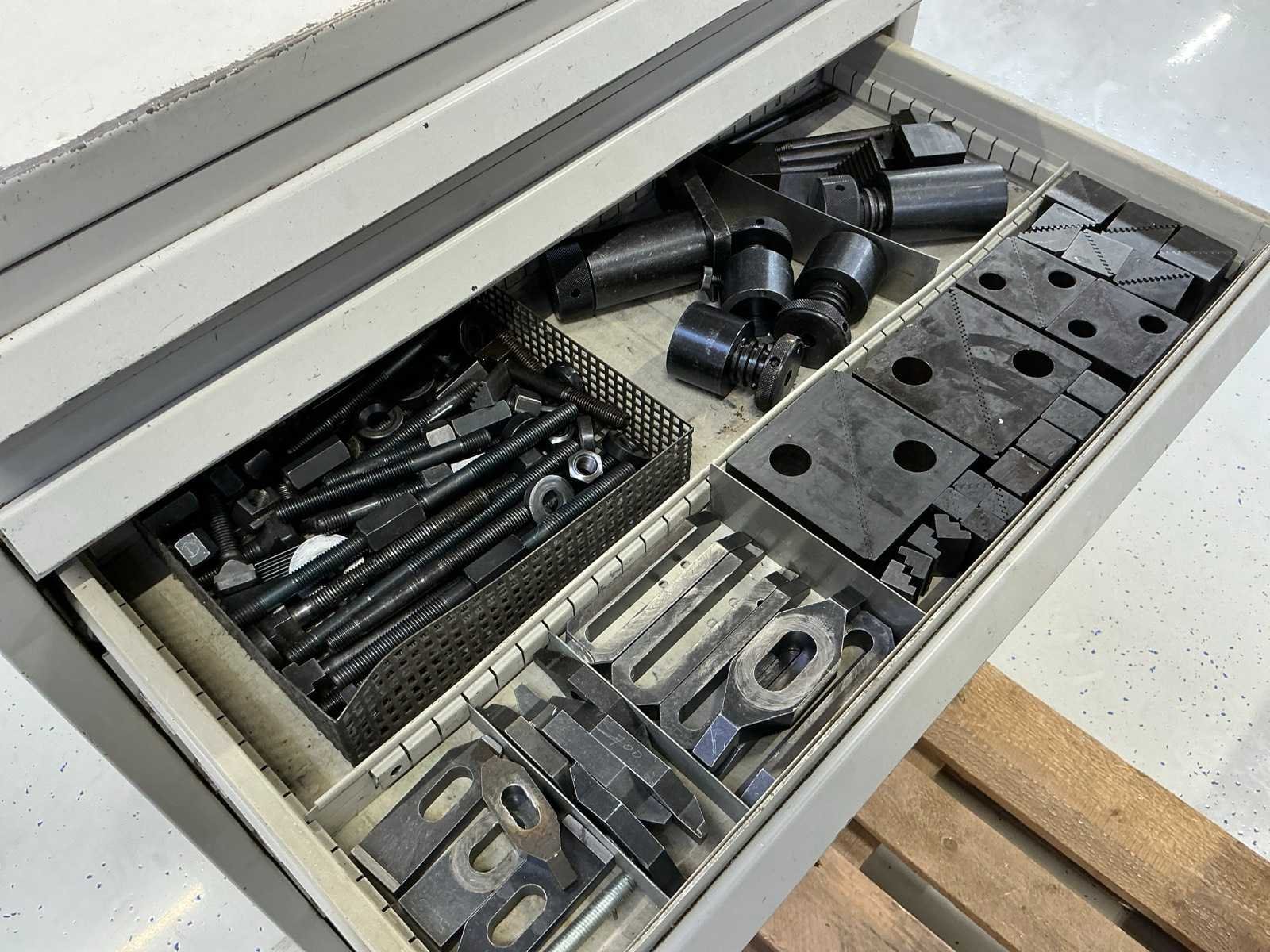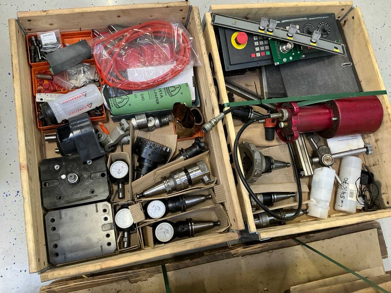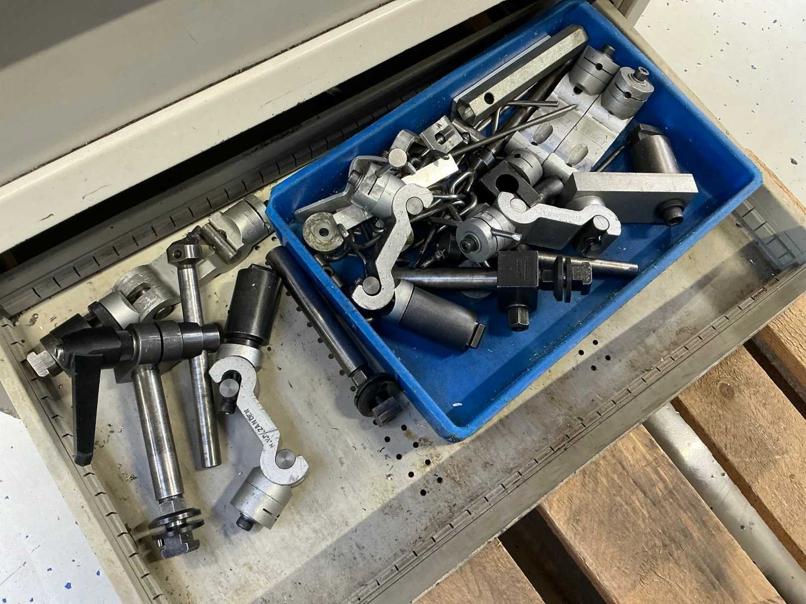Inclusief SK40 gereedschappen 17 opspantafels (pallets) 3 kasten met spanmiddelen Nee Merk: Decker Maho Type: DMC 60H Bouwjaar: 1999 Serienummer: 376 Opname iso: SK40 Verplaatsing x-as: 600mm Verplaatsing y-as: 560mm Verplaatsing z-as: 560mm Snelheid van n =: 15000rpm Afgelezen urenstand: 45121 Spanentransporteur: true Koelmiddelpomp: true T-gleuf opspantafelafmeting B: 400mm T-gleuf opspantafelafmeting L: 400mm -assig: 4 Machinegewicht: 8500kg Afmeting l: 4800mm Afmeting b: 2800mm Afmeting h: 2850mm