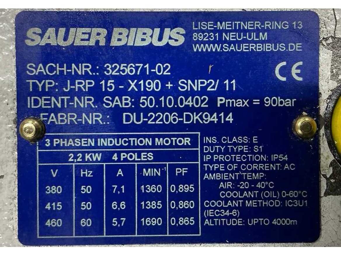 Spindel Fagor SPM112X1.E1.00000.1; Hydrauliek pomp Sauer Bibus type: J-Rp 15-X190 + SNP20/11 Nee Lengte: 1200cm Breedte: 800cm Hoogte: 500cm