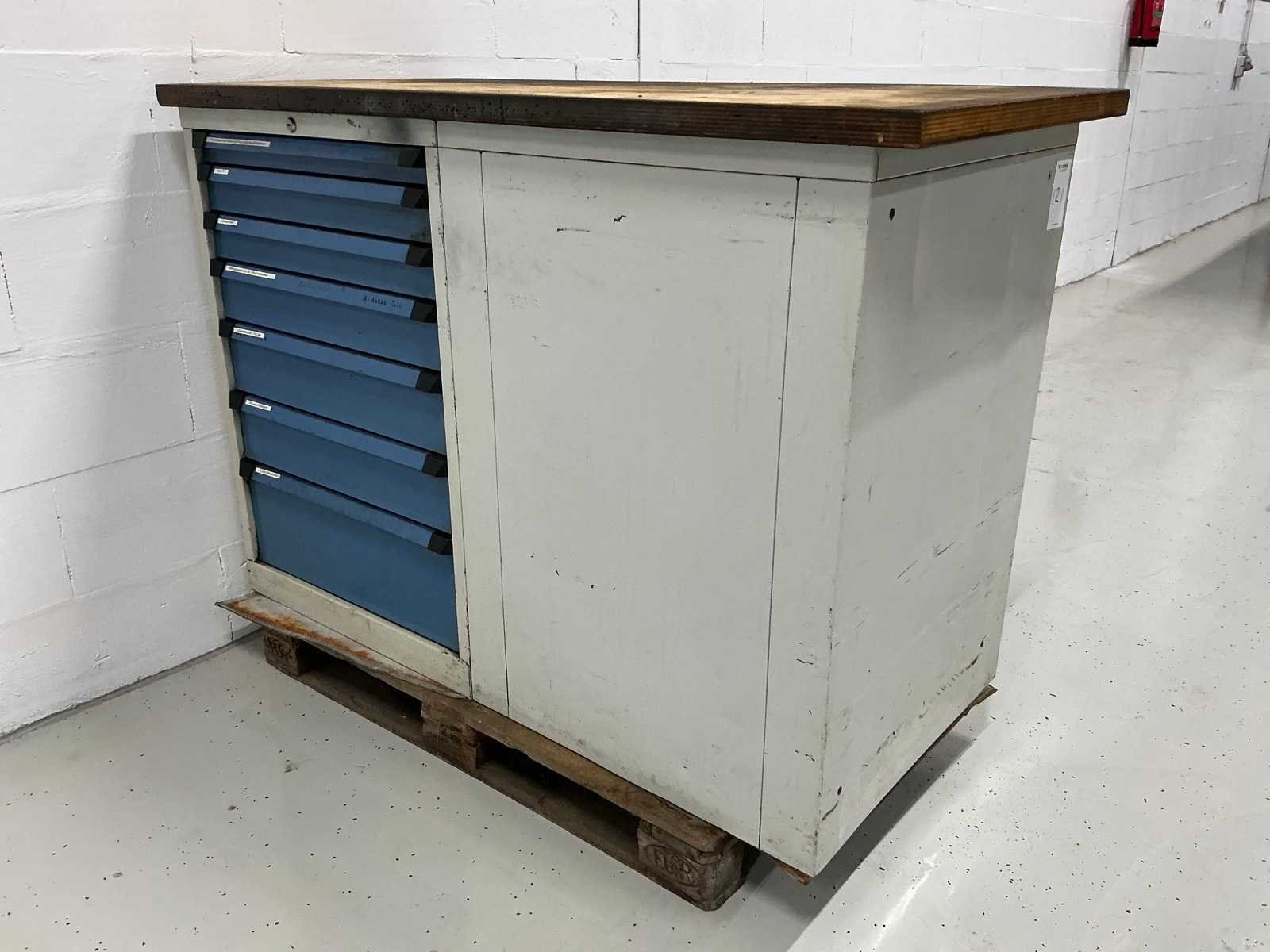 Dubbele kast met werkblad en inhoud Nee Merk: Garant Lengte: 150cm Breedte: 76cm Hoogte: 106cm