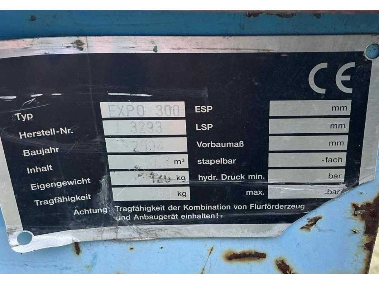 Inclusief inhoud Nee Gewicht: 120kg Type: Expo 300 Bouwjaar: 2004 Staal, inhoud: 0,3m³ Totale afmeting L: 1250mm Totale afmeting Breedte: 770mm Totale afmeting Hoogte: 940mm