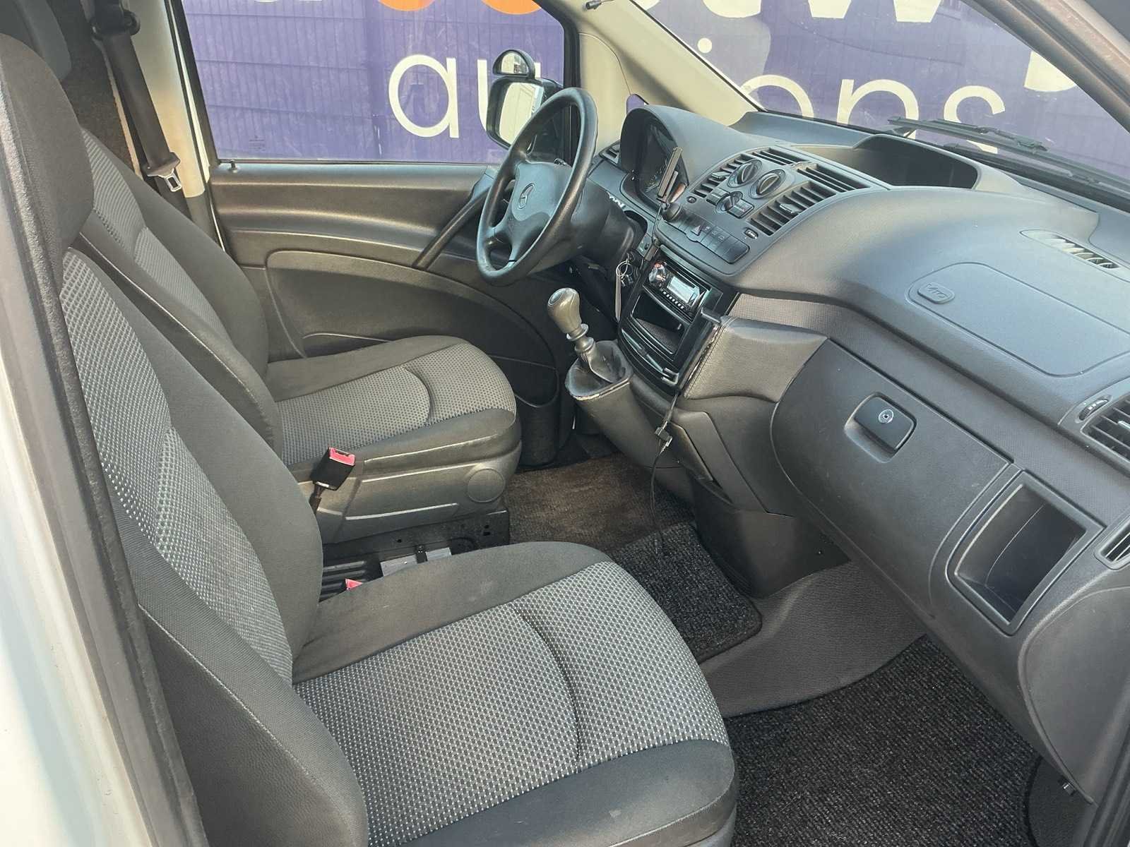 Elektrische ramen; elektrisch verstelbare spiegels; Airco; Radio/CD; Nee Kenteken: VH-767-H Merk: Mercedes-Benz Type: 110 CDI 320 Lang Model: Vito Afgelezen kilometerstand: 259088km Cilinderinhoud: 2143cc Vermogen (kW): 70kW Brandstof: diesel Datum eerste toelating: 2014-03-05 Datum eerste toelating (NL): 2014-03-05 APK vervaldatum: 2026-01-21 Transmissie: Handgeschakeld Aantal zitplaatsen: 3 Kleur: niet van toepassing Bruto BPM (NL): 9132 Rest BPM: 0 Ledig gewicht: 1810kg Laadvermogen: 990kg Vermogen (pk): 95 Aantal cilinders: 4 Carrosserie: gesloten opbouw Emissieklasse: 5 Maximaal trekgewicht ongeremd: 750