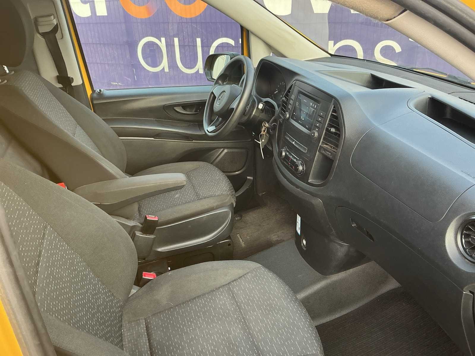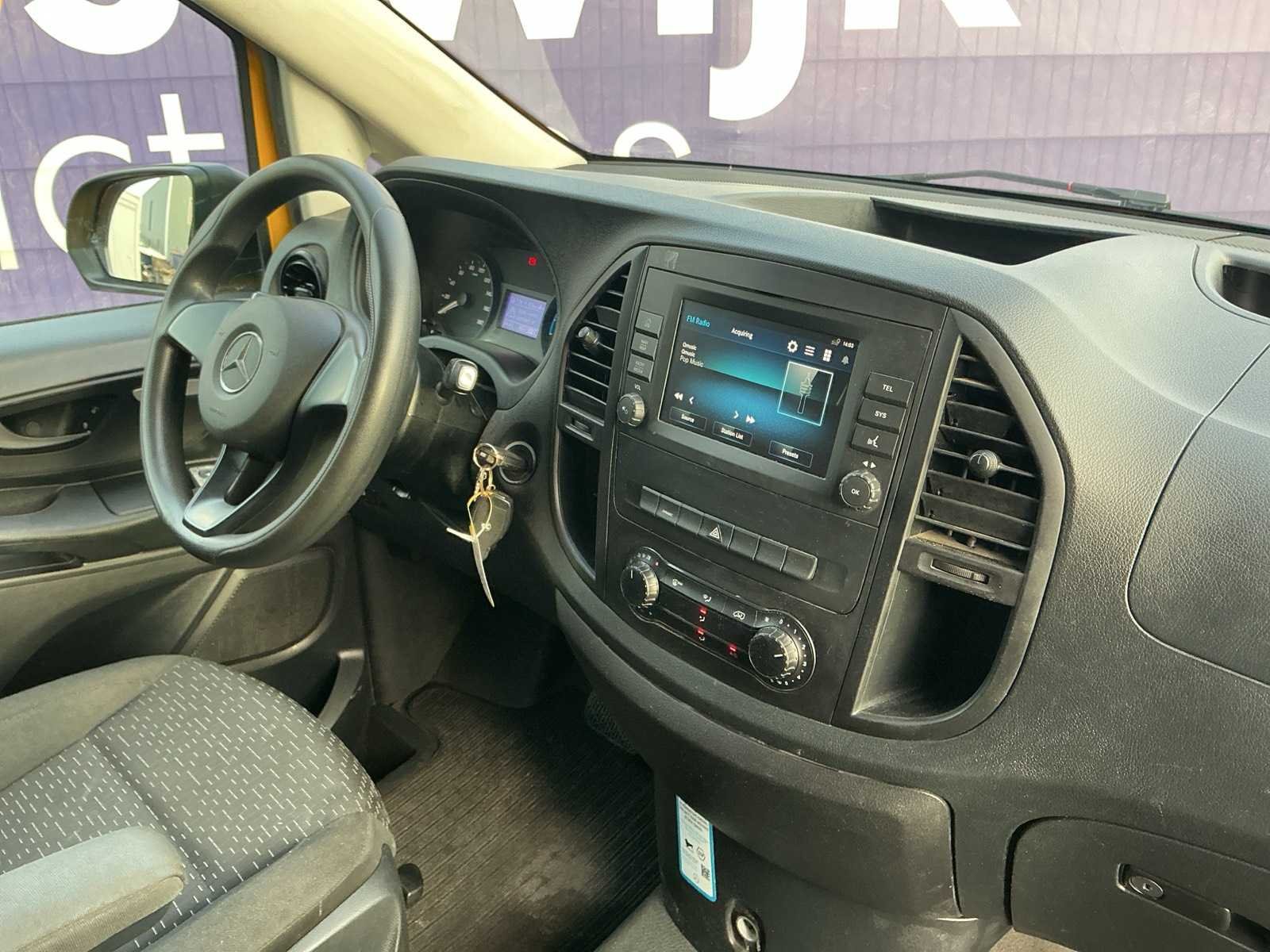 Elektrische ramen; elektrisch verstelbare spiegels; stoelverwarming; Airco; Radio/CD; Nee Kenteken: VHJ-33-L Merk: Mercedes-Benz Type: eVito Lang 41kWh Model: eVito Afgelezen kilometerstand: 67485km Brandstof: elektriciteit Datum eerste toelating: 2020-11-09 Datum eerste toelating (NL): 2020-11-09 APK vervaldatum: 2026-11-09 Transmissie: Automaat Aantal zitplaatsen: 3 Kleur: geel Aantal deuren: 6 Ledig gewicht: 2136kg Laadvermogen: 1064kg Vermogen (pk): 0 Carrosserie: gesloten opbouw Emissieklasse: Z