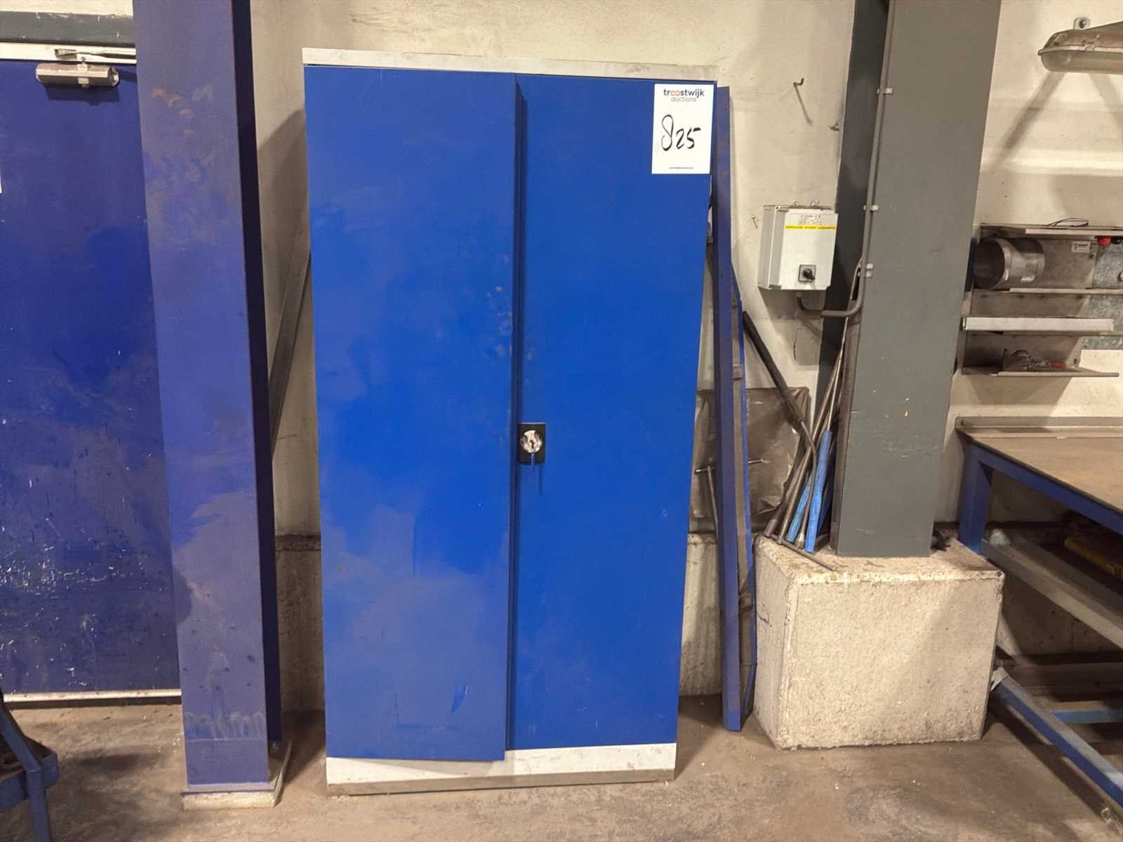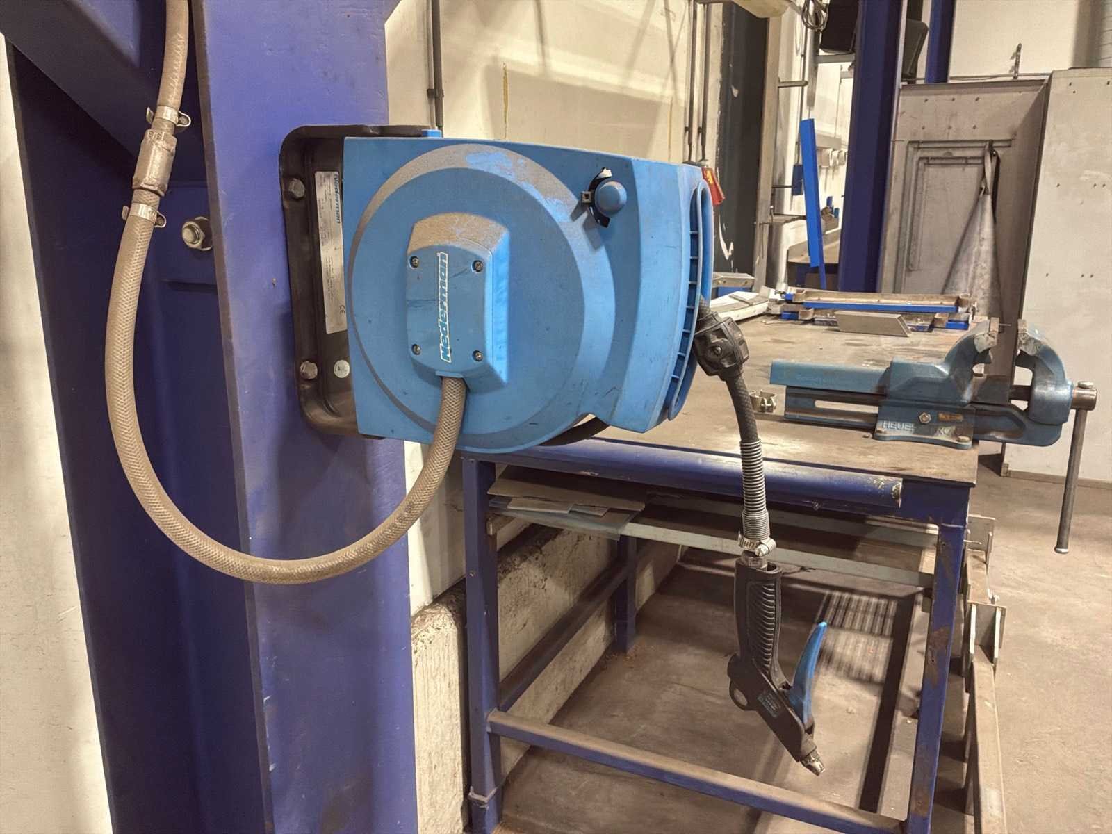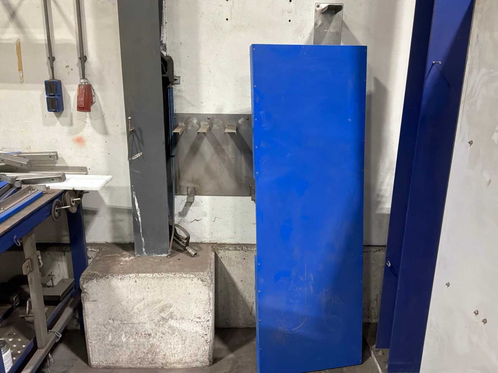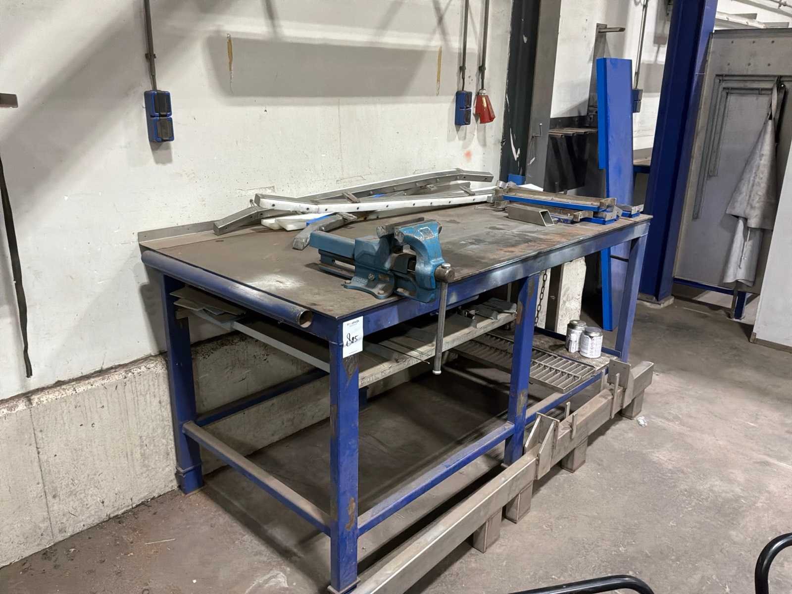Kast, losse materialen, wandrekken, luchthaspel inbegrepen. Werkbank klein afmeting: 1090x1600x920mm. Werkbank groot: 1090x2000x1035mm. Nee Materiaal: Metaal