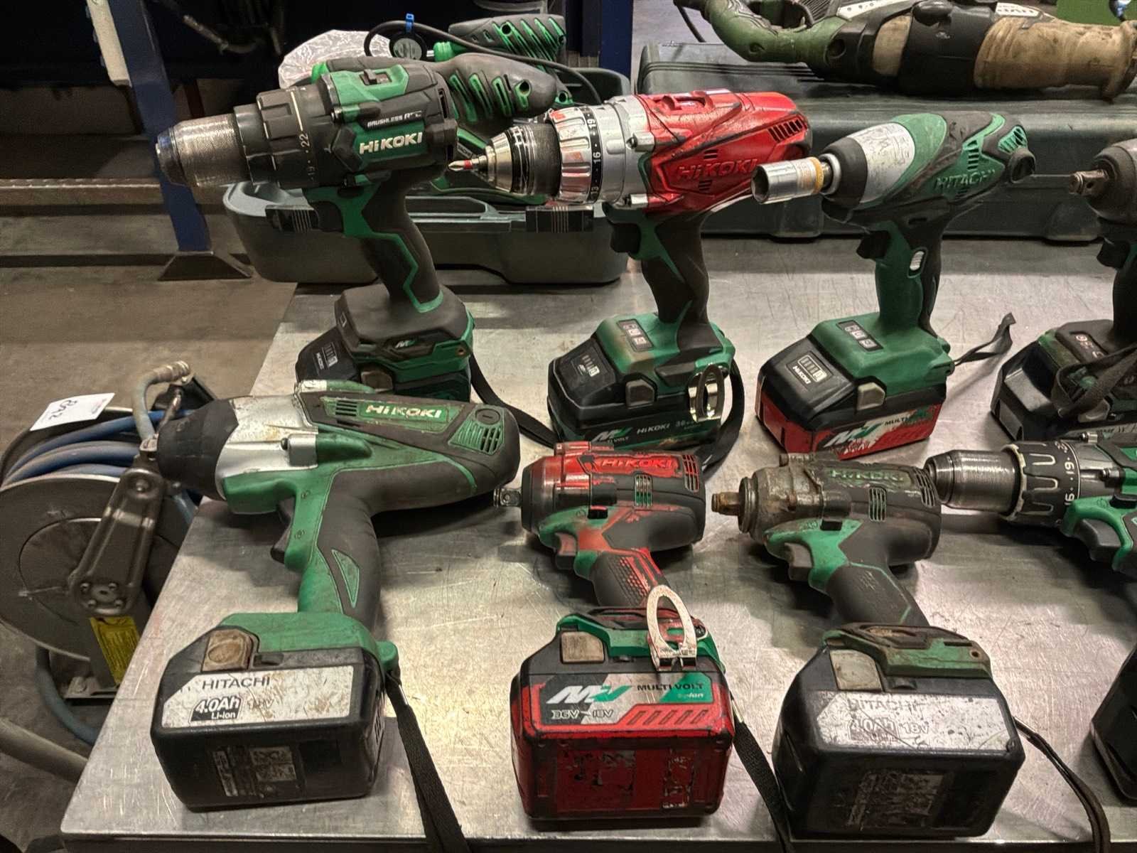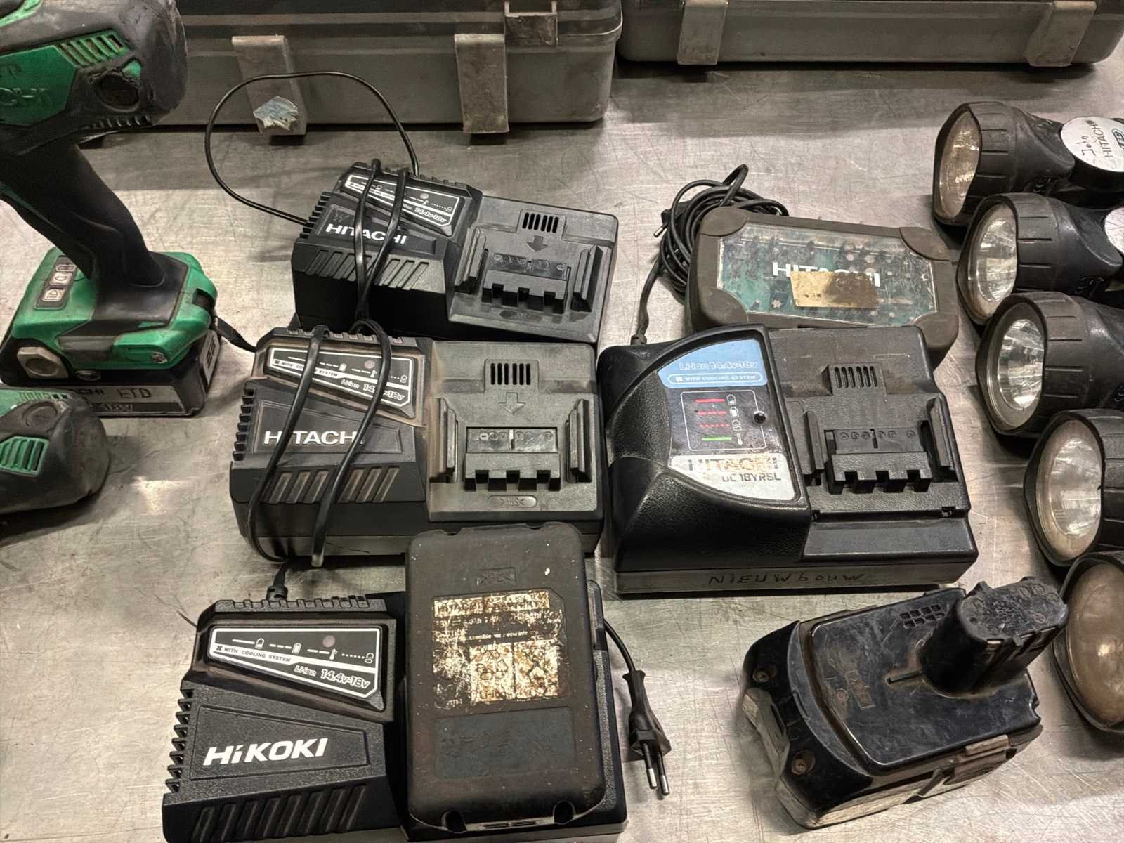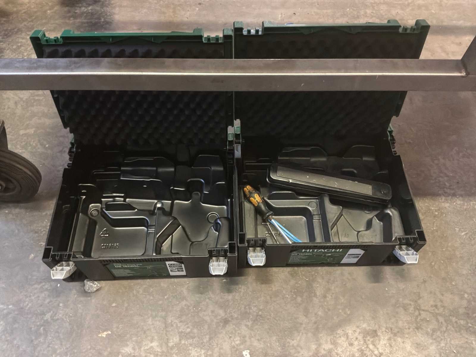W.o. slagmoersleutels; schroef-/boormachine; haakse slijper; zaklampen en acculaders, 2x koffer Nee Merk: Hitachi