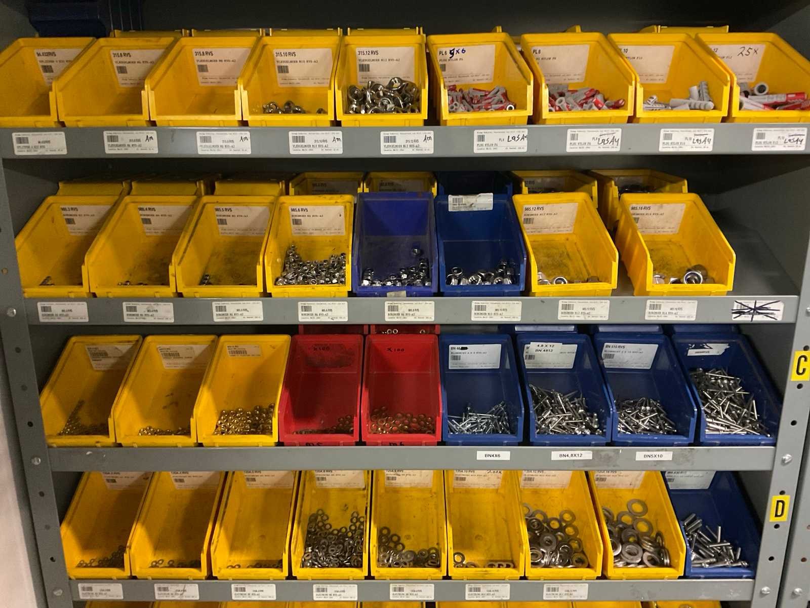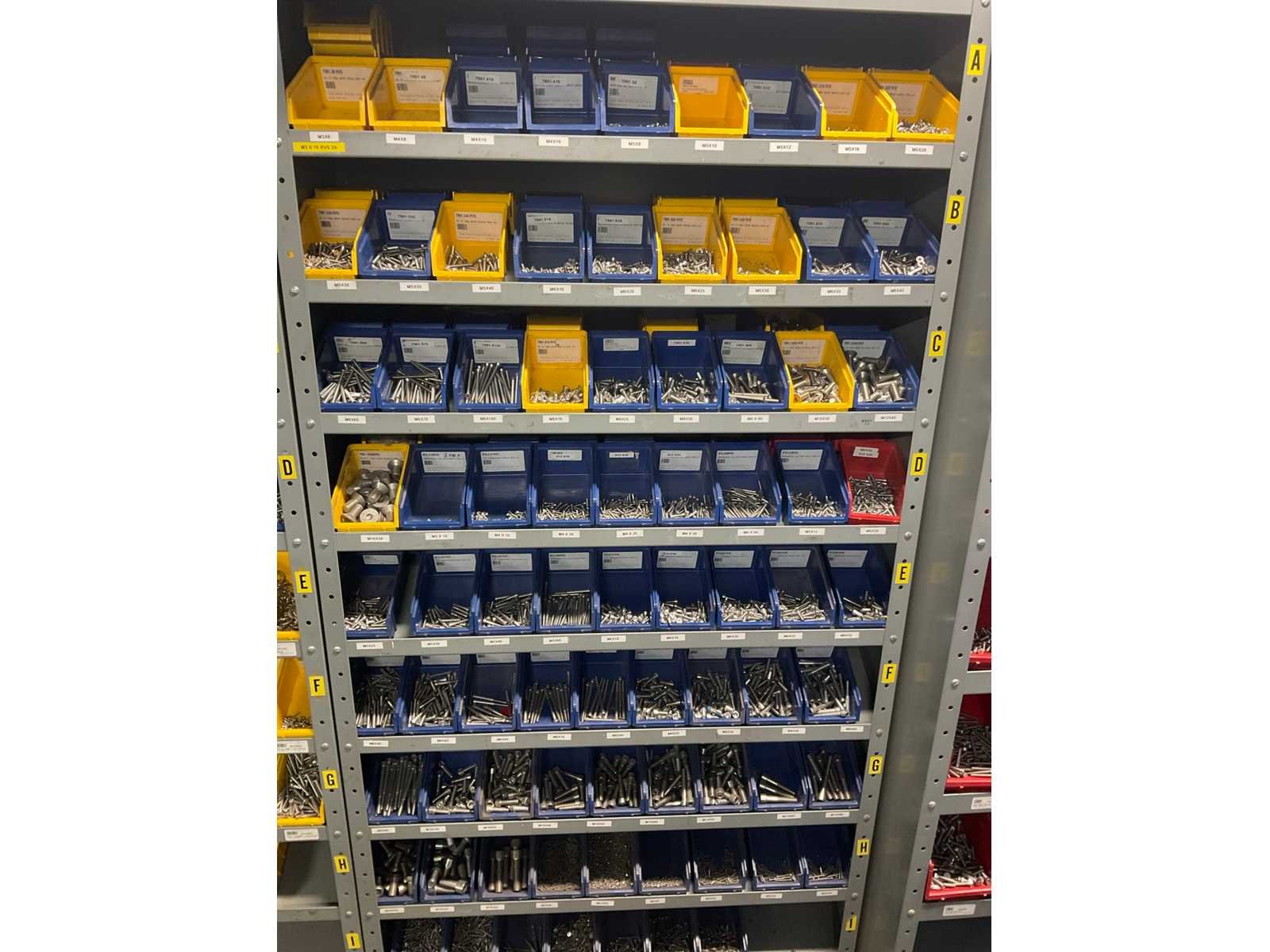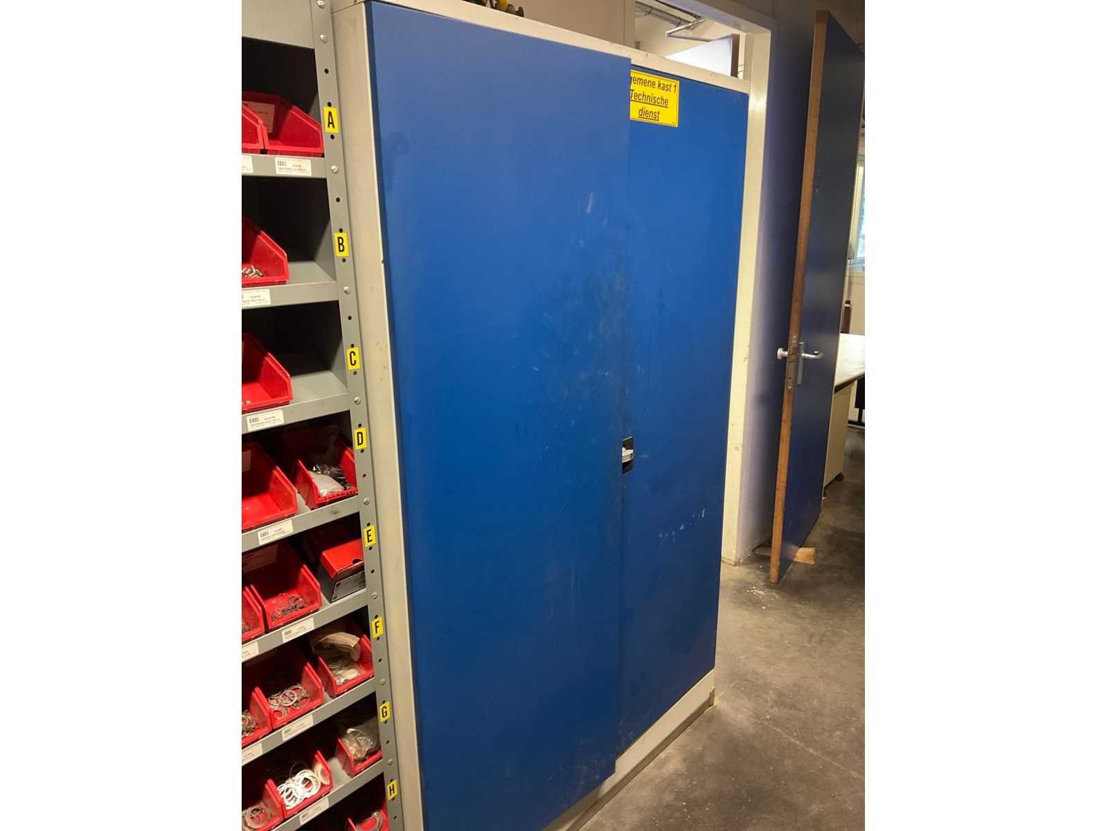 Waaronder : schroeven,bouten,moeren,ringen en seegerringen met partij schuur en slijpmiddelen en wolfraamelektroden in en met 8 grijpvoorraadkasten en 1x 2-deurs kast Nee