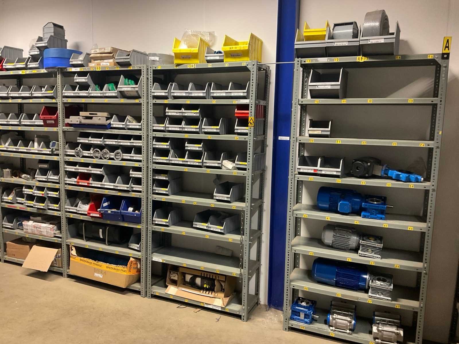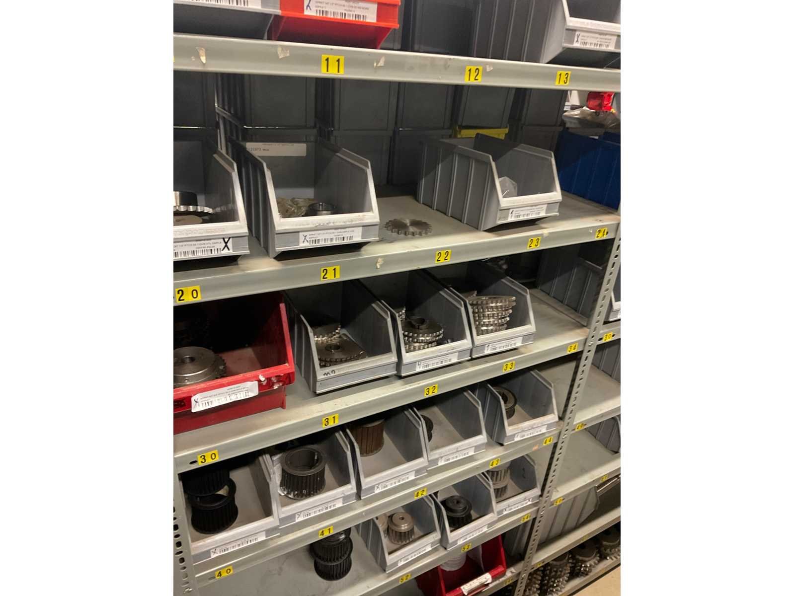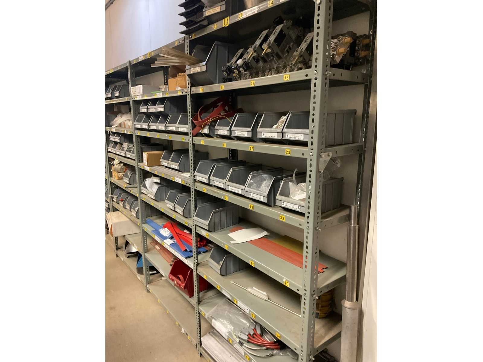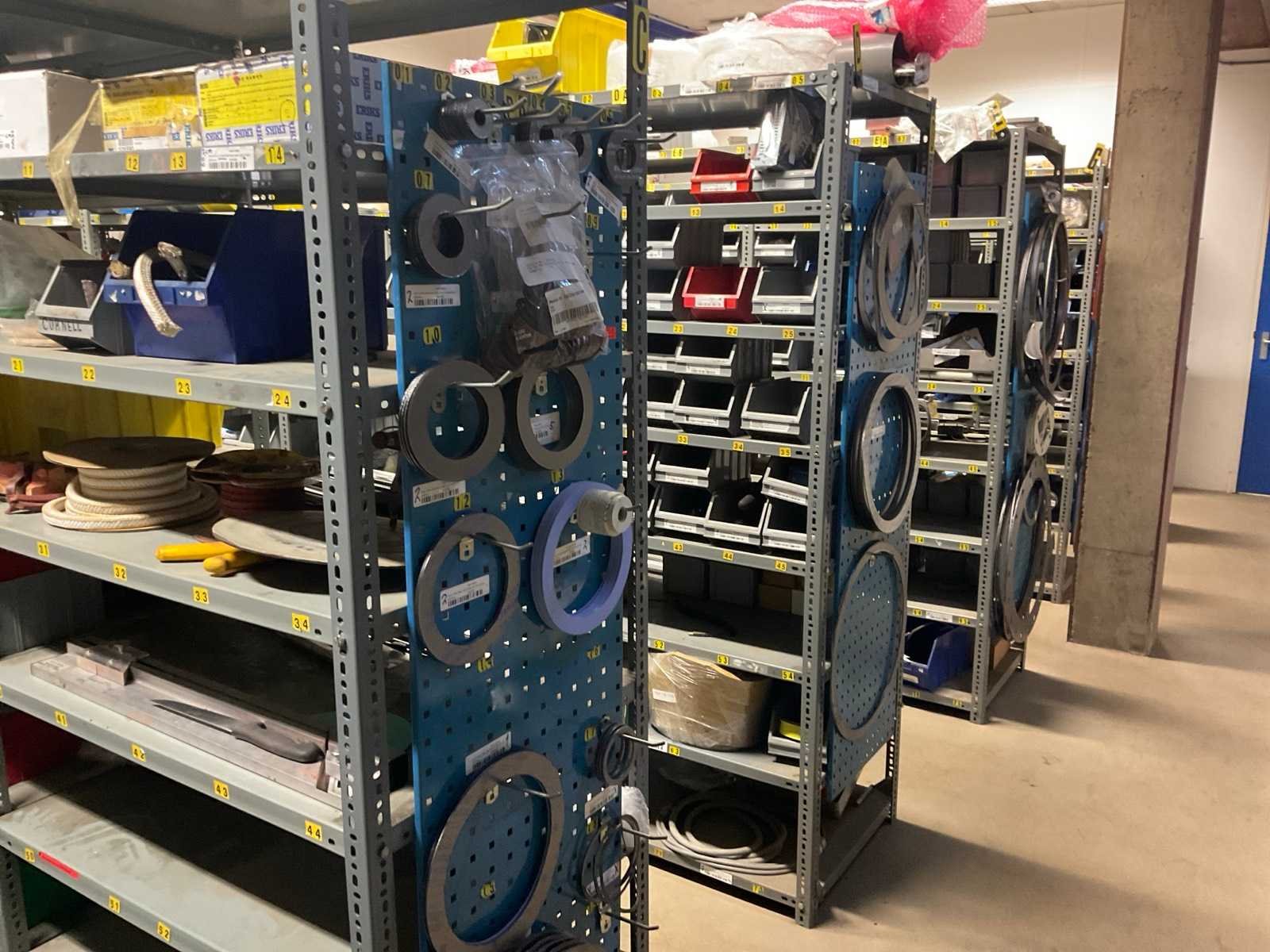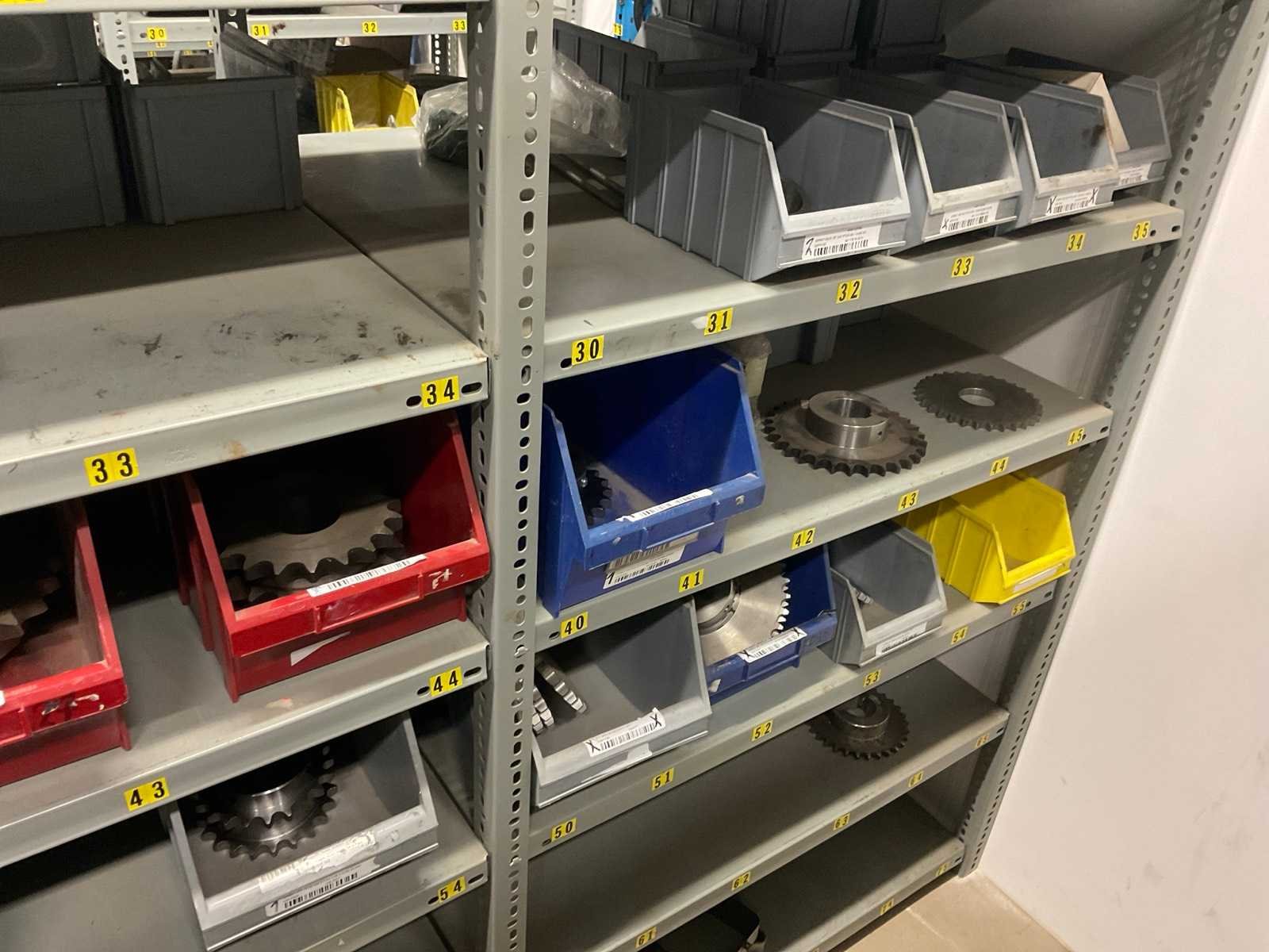 Waaronder: motorreduktoren, vormmessen,PLC modules, interfaces, frequentieregelaars, pakkingen, hydrauliek toebehoren, sealmessen, tandwielen, RVS aandrijfketting en divers in en met 38 secties stalen magazijnstelling Nee