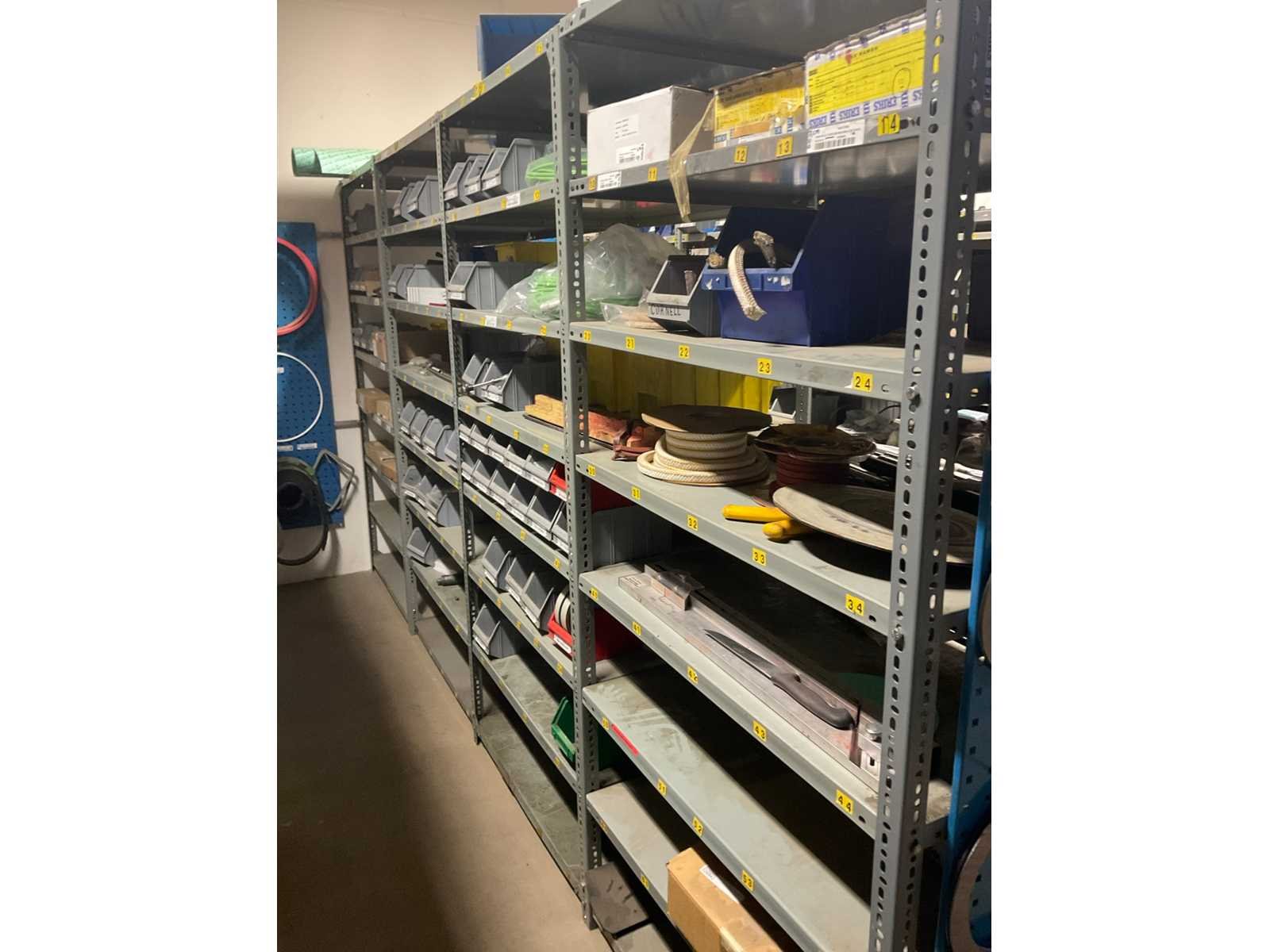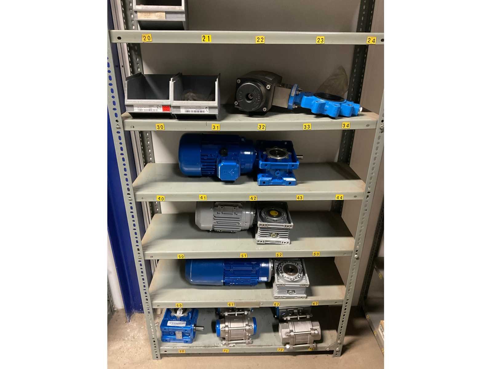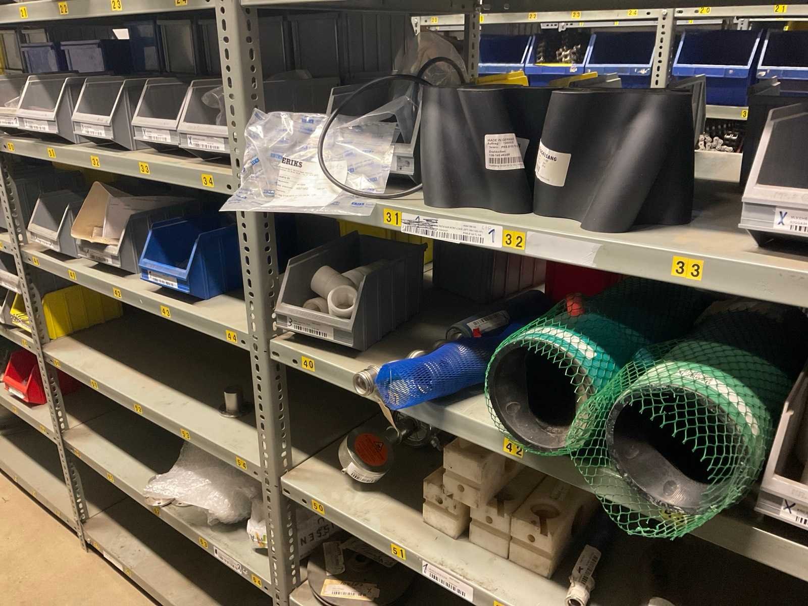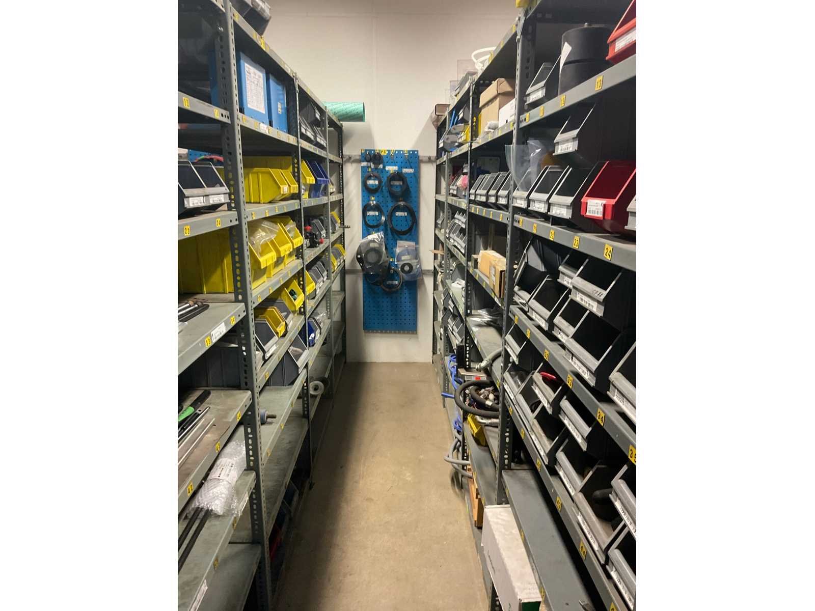 Waaronder: motorreduktoren, vormmessen,PLC modules, interfaces, frequentieregelaars, pakkingen, hydrauliek toebehoren, sealmessen, tandwielen, RVS aandrijfketting en divers in en met 38 secties stalen magazijnstelling Nee