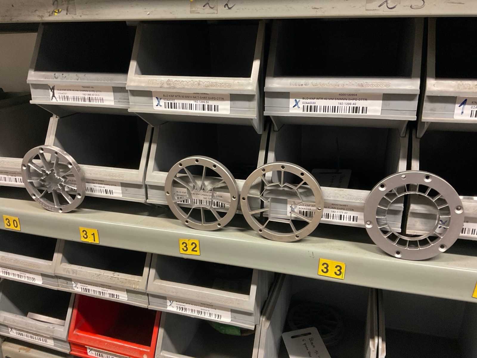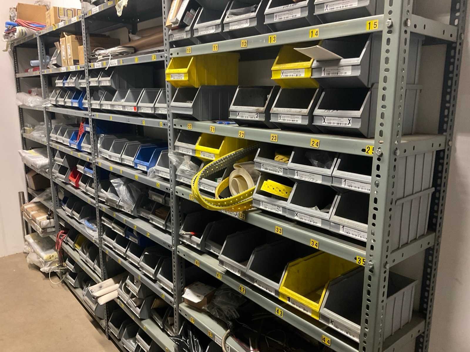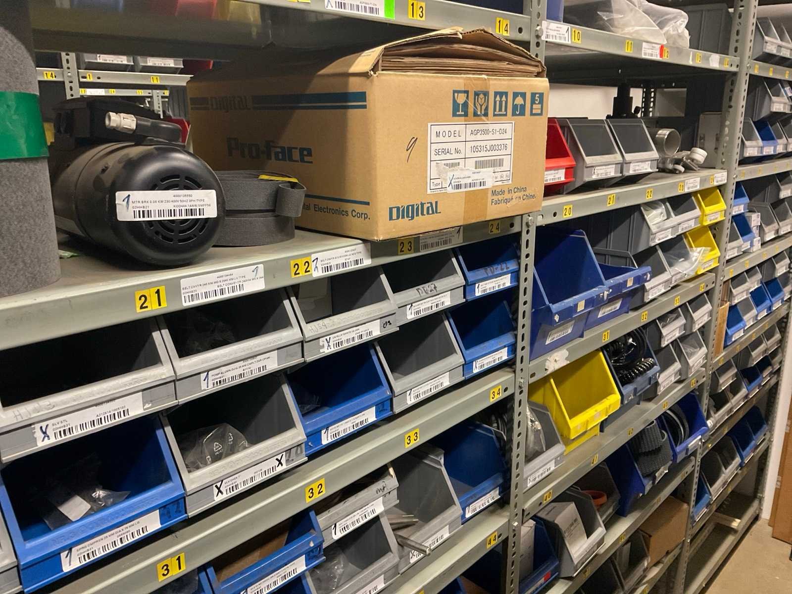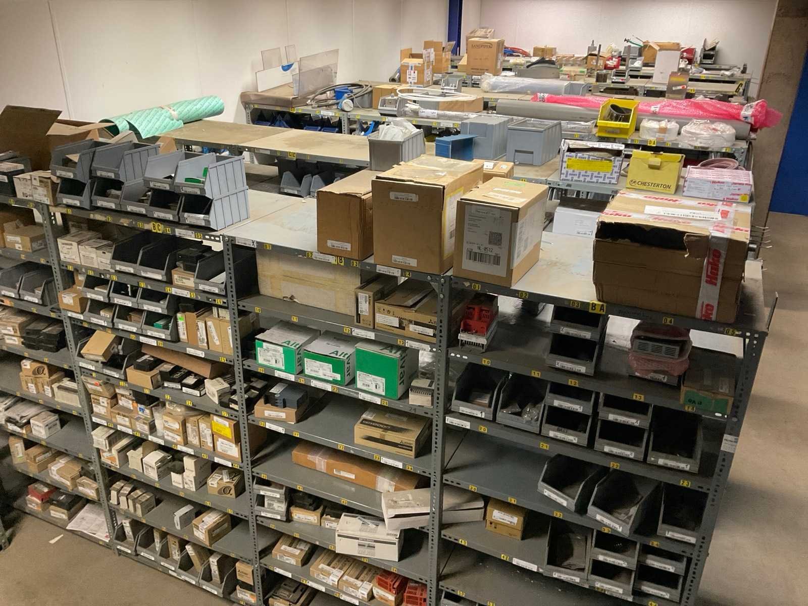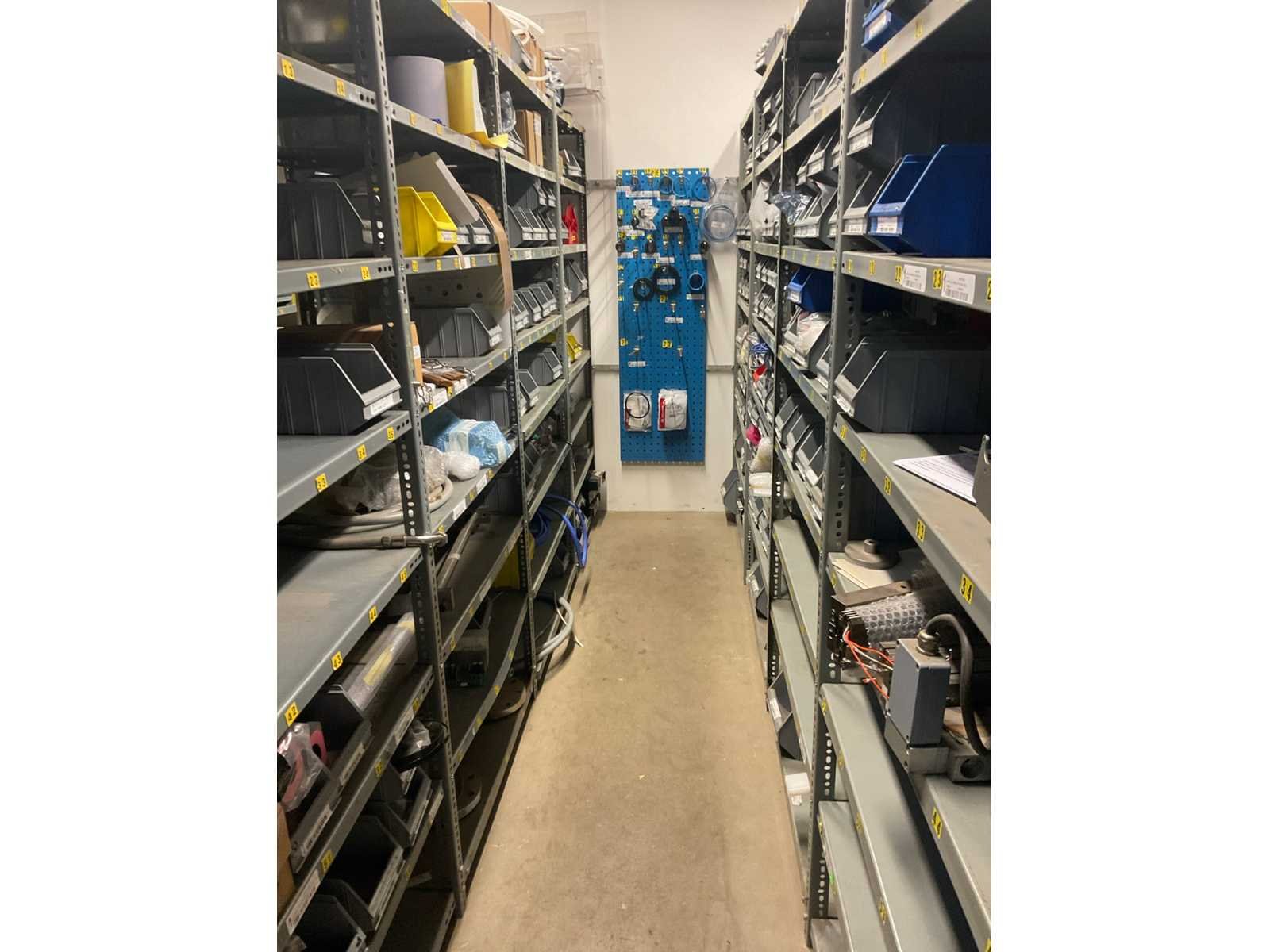Waaronder: motorreduktoren, vormmessen,PLC modules, interfaces, frequentieregelaars, pakkingen, hydrauliek toebehoren, sealmessen, tandwielen, RVS aandrijfketting en divers in en met 38 secties stalen magazijnstelling Nee