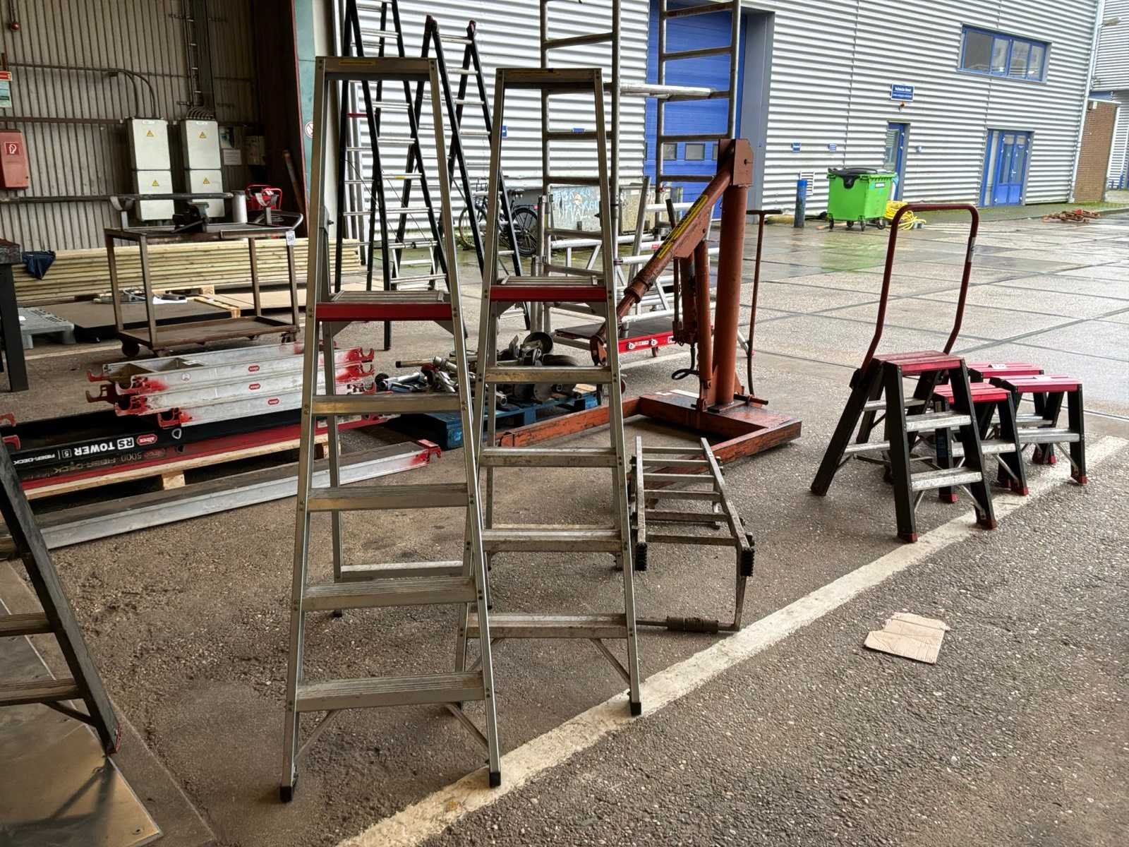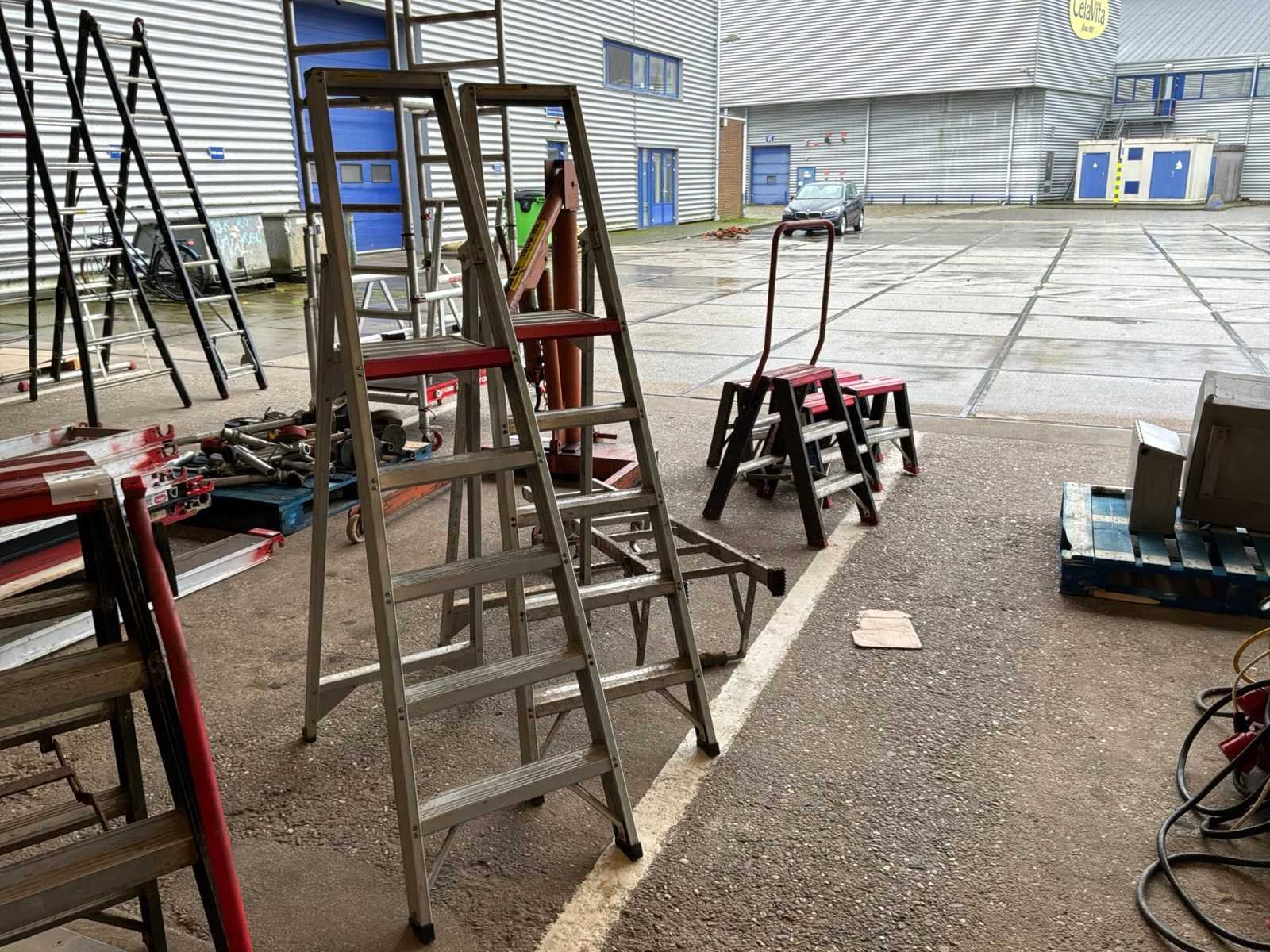 2X trap met 5 tredes (Altrex), 1 x ladder met beugel en 6 sporten Nee Merk: Altrex / Tubesca Aluminium: true Vouwladder: true Enkel: true