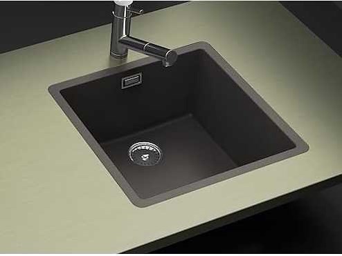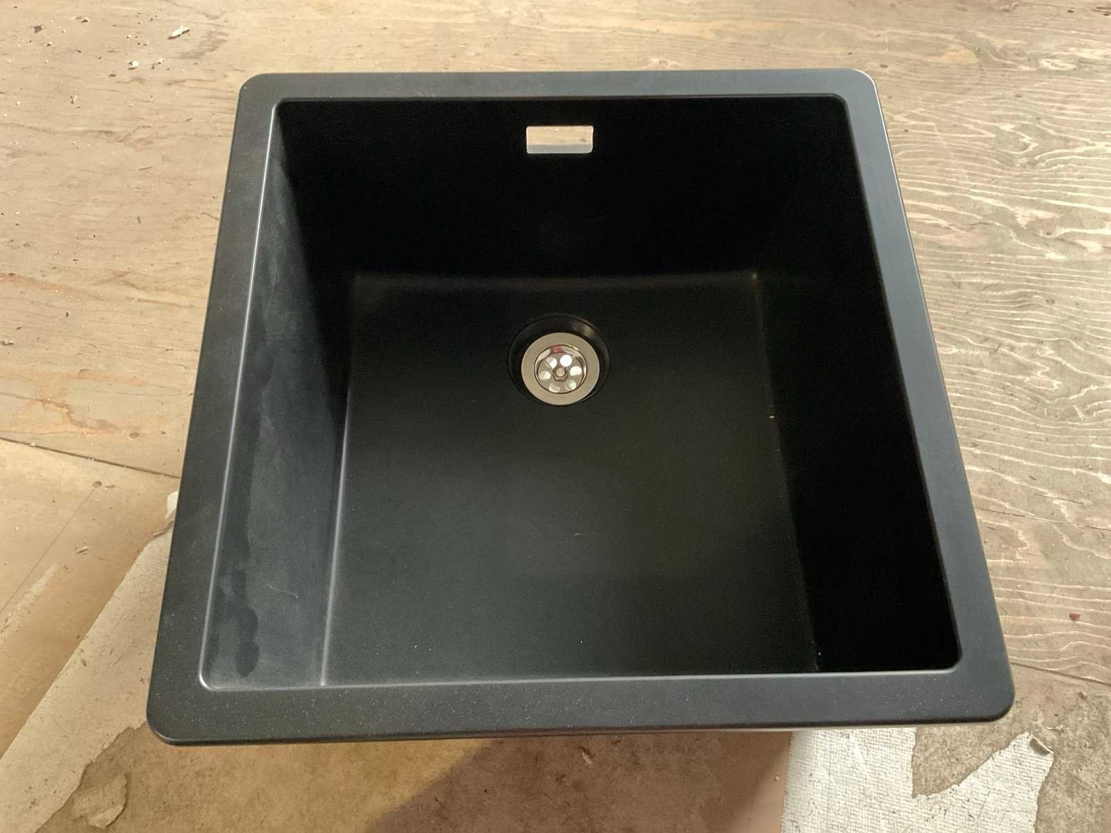 Granieten spoelbak van natuurlijk kwartszand; zonder overloop/sifon Nee Merk: Greenwich Model: N100 puro Lengte: 45cm Breedte: 45cm