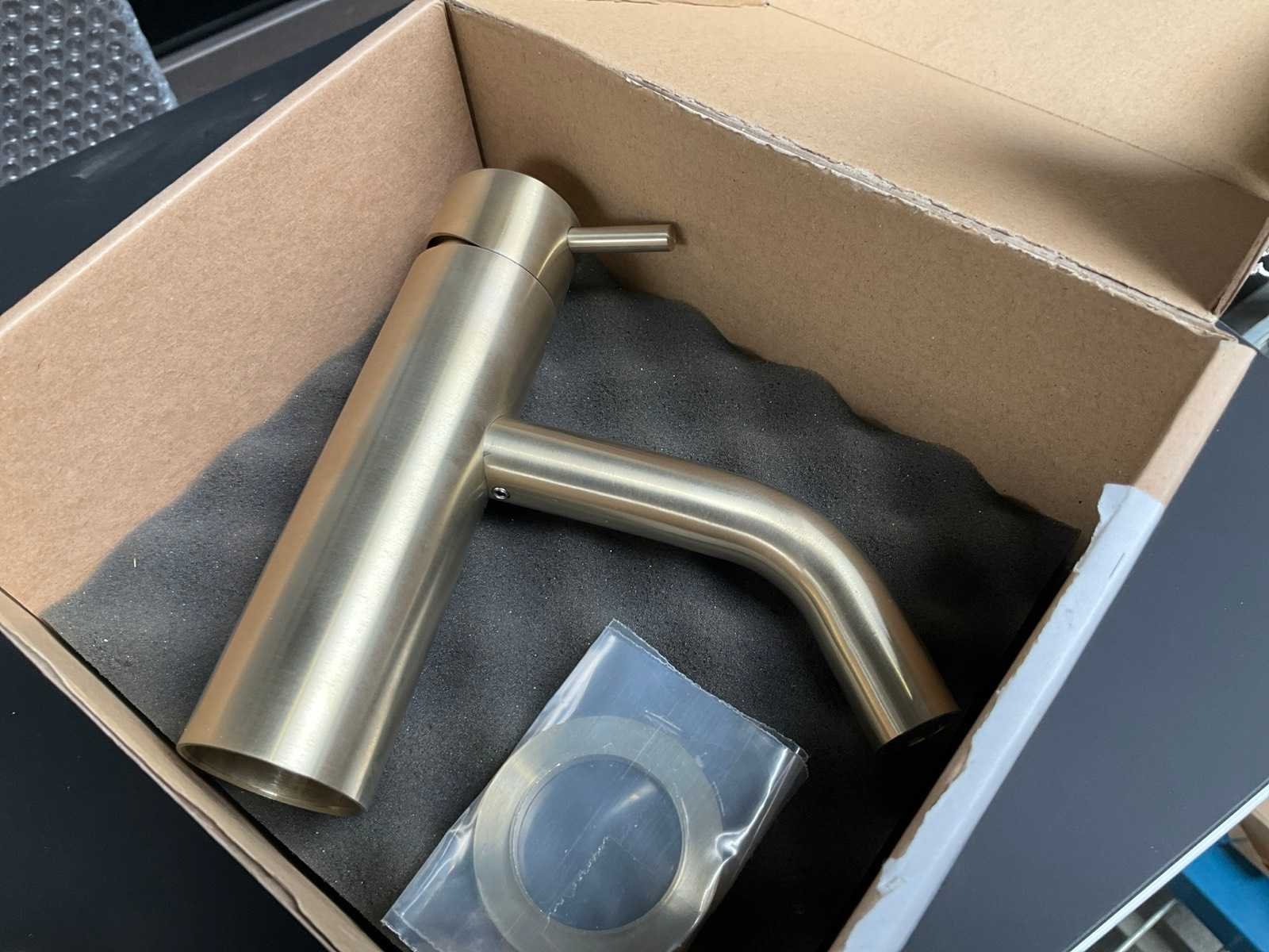 Waterevolution flow brushed light gold wastafelkranen pvd