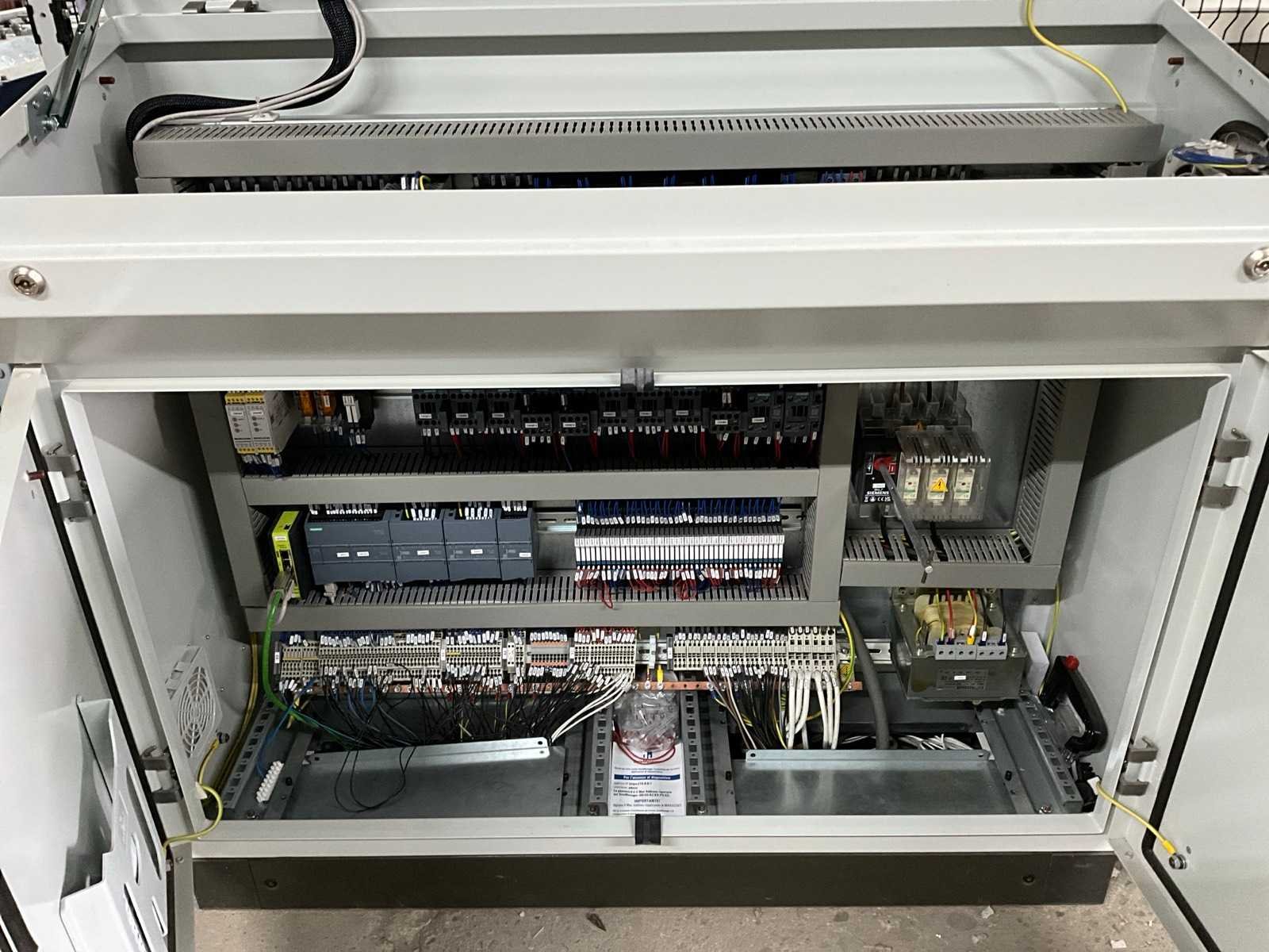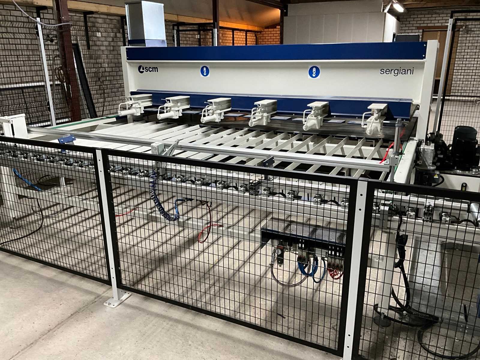Persplaatafmeting: 3000 x 1300 mm; Urenstand: 174 uur; werkdikte 40mm, verticale drukkracht: 57,6t, zijdelingse drukkracht: 9t, Pressure bar: 30t; werkdikte 60mm, verticale drukkracht: 80t, zijdelingse drukkracht: 24t, Pressure bar: 30t; werkdikte 60mm ; Voorzien van 2024 Industrial Frigo GR2A 2 chiller met R407C koelmiddel, besturingskast met bedieningspaneel met Siemens Simatic HMI touch bediening, 2025 SCM lijmdoseersysteem met GVR pomp, SCM verticale lijmunit met Seipee JM80B4 pomp, gewicht 360kg, 400V, 0.86kW, 3x afzonderlijke hydraulische units met 3x 400V pomp 2.2kW, Orma verwarmingssysteem met diathermische olie; inclusief handboek veiligheidshek rondom Nee Merk: SCM Sergiani Type: GSL-A/CA 30/13 Bouwjaar: 2025 Serienummer: U204 OB 23 Gewicht: 4250kg Aansluiting: 400V Afmeting l: 4560mm Afmeting b: 3700mm