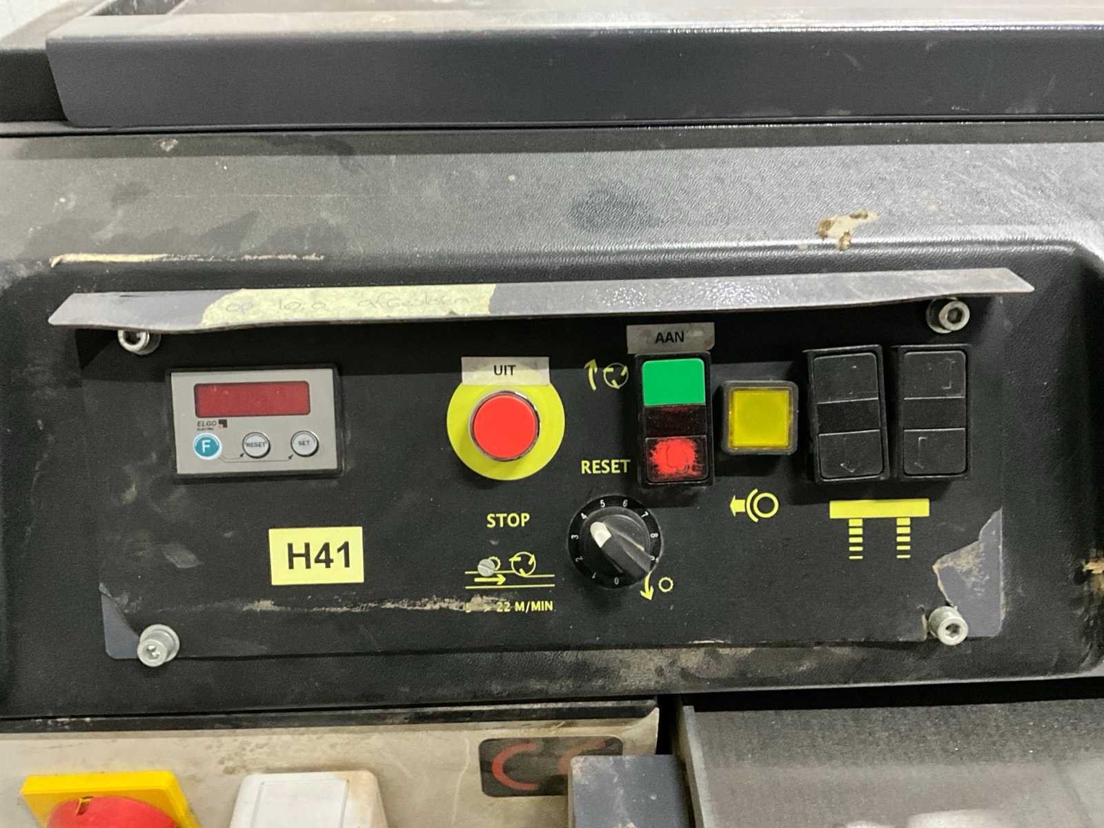 Hoogte verstelbaar, doorvoersnelheid 5-22m/min, zonder afzuiging Nee Merk: Robland Type: D630 Bouwjaar: 2008 Serienummer: 0130112007 Werkbreedte: 650mm Werkhoogte: 300mm Doorvoersnelheid: 22m/min Machinegewicht: 1050kg Afmeting l: 1500mm Afmeting b: 1100mm Afmeting h: 1100mm