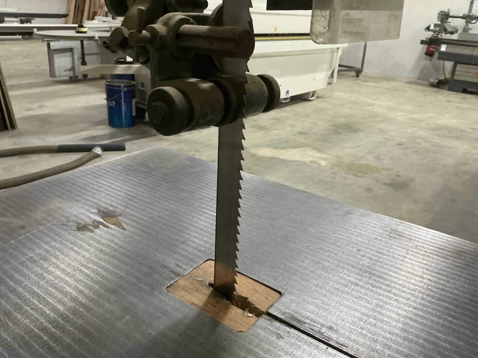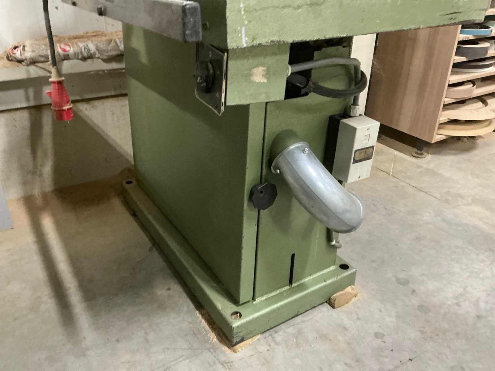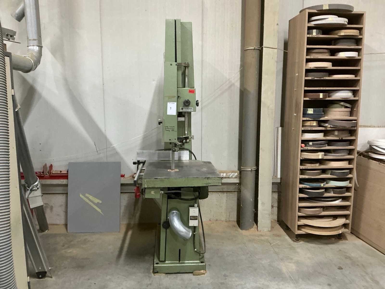 Maximale zaaghoogte 385 mm; vermogen 1,5 kW Nee Merk: Framar Bouwjaar: 1979 Serienummer: 404 Uitlading: 510mm Tafel afmeting l: 690mm Tafel afmeting b: 650mm Aansluiting: 400V Afmeting l: 105mm Afmeting b: 850mm Afmeting h: 2200mm